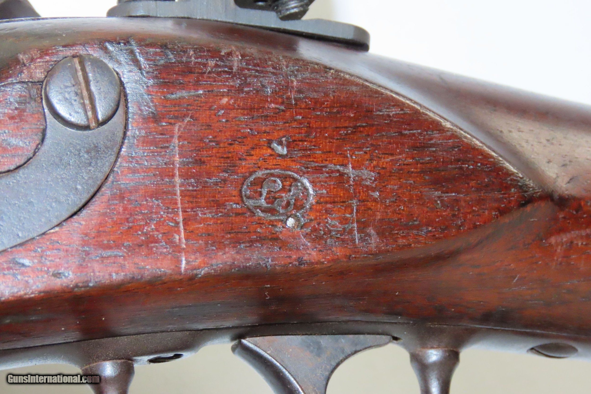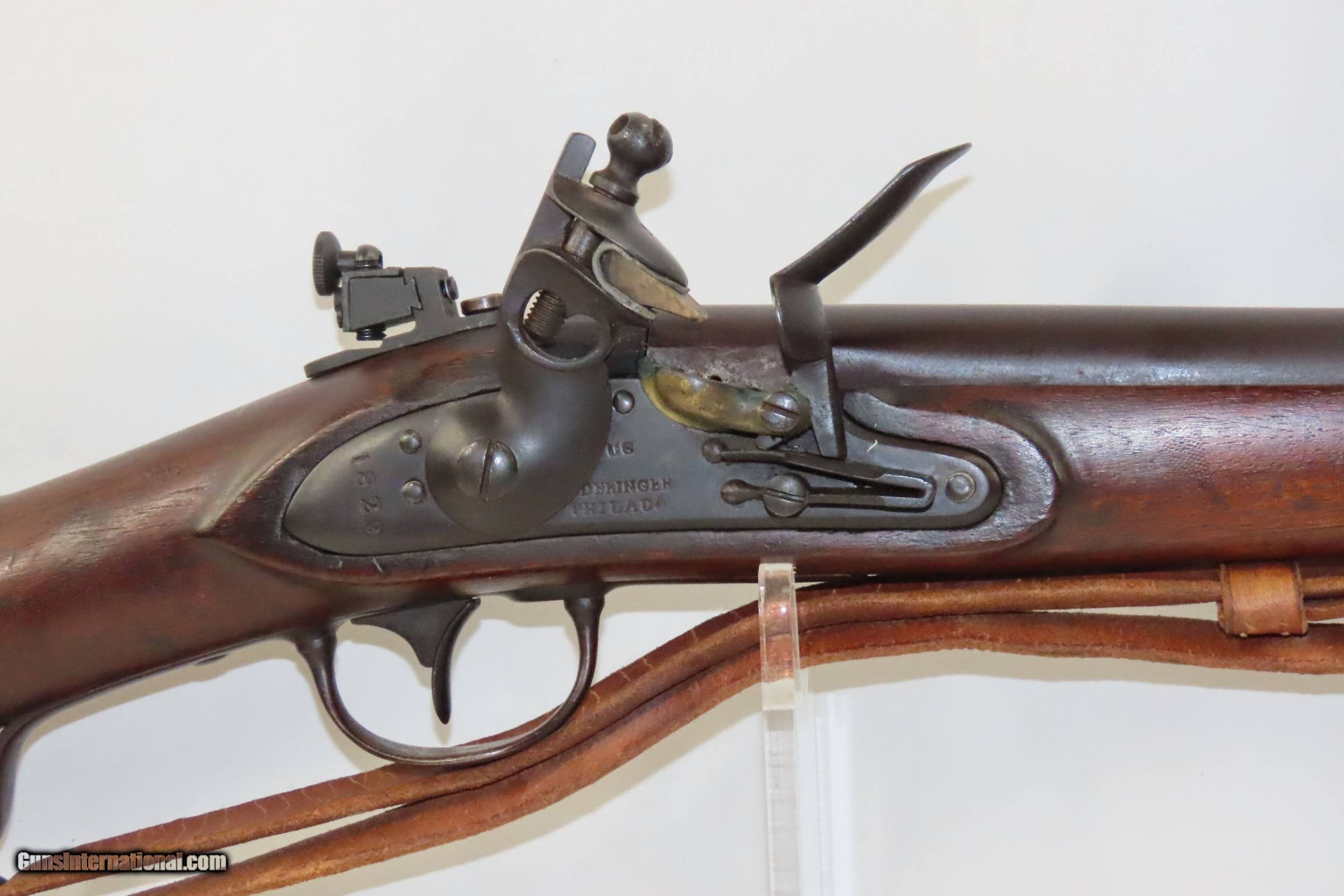 Description: <strong>Antique HENRY DERINGER U.S. Model 1817 Flintlock .54 Caliber “COMMON RIFLE”</strong><br /> <br /> <strong>“US” Marked 1 of 13,000 Contracted by Henry Deringer</strong><br /> <br /> Here we present an antique U.S. Model 1817 “Common Rifle” from the Henry Deringer Contract, made circa 1829 in Philadelphia, Pennsylvania. The Model 1817 common rifle (also known as the Deringer M1817 rifle) was issued due to the Dept. of Ordnance's order of 1814, produced and used from the 1820s to 1840s on the American frontier. Like the Model 1814, it had a large oval patch box in the buttstock. Many of these were used during the American Civil War, especially in the early days of the conflict when military weapons were hard to come by.<br /> <br /> After producing the Model 1814 common rifle through contractors, the military decided to do the same with the Model 1817. The Harper's Ferry Arsenal produced a pattern weapon, which was then taken to gunsmiths to be copied. The rifle was built by Henry Deringer of Philadelphia (13,000 made), Nathan Starr & Co. of Middleton, Conn. (10,200 made), Simeon North of Middleton, Conn. (7,200 made), R. Johnson of Middleton, Conn. (5,000 made), R. & J. D. Johnson of Middleton, Conn. (3,000 made).<br /> <br /> While these were great rifles they were never made in massive quantities such as the Model 1816 smoothbores. While all were originally flintlocks, most were converted to percussion cap for their firing mechanism. Many were used during the American Civil War.<br /> <br /> The overall condition is near fine. Excellent action. The bore is in great shape for its age with sharp rifling. Solid walnut stock with a cartouche on the left wrist. Spare flints and cleaning tools are included in the patch box. “US” marked barrel, butt plate tang, and lock. Clear markings. “1829” dated lock and barrel tang. This example sports a nice leather sling and there is a peep sight (that is removable) at the top tang.<br /> <br /> <strong>Own the original! This is a legitimate antique and not a reproduction.</strong><br /> <br /> Barrel is 35-3/8 inches.<br /> <br /> Caliber: .54 Flintlock<br /> <br /> Overall condition as seen in photos.<br /> <br /> <strong>Very Fast. Very Safe. FREE SHIPPING WORLDWIDE. Delivered directly to your door by express mail! </strong><br /> <strong>Guaranteed AUTHENTIC & Includes CERTIFICATE OF AUTHENTICITY.</strong><br /> <br /> <strong>ancestryguns</strong><br /> <br /> $4315<br /> <br /> #217048<br /> SOLD Antique: Yes |