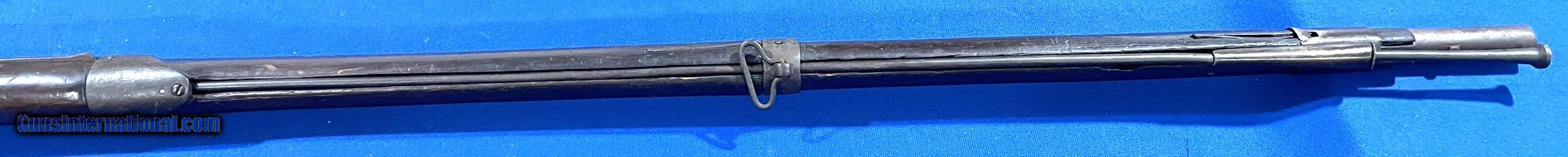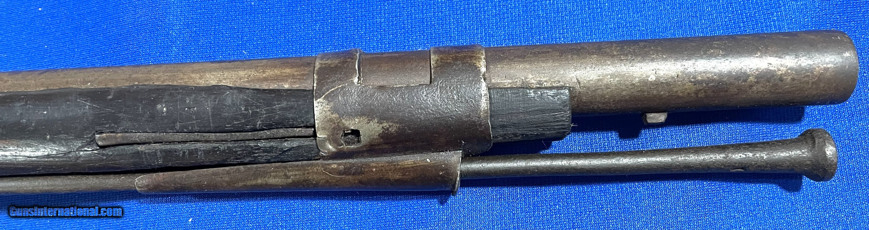 Description: 1774 FRENCH REVOLUTIONARY WAR ERA FLINTLOCK MUSKET IN ORIGINAL FLINT (NOT RECONVERTED) OVERALL IN ABOUT GOOD TO VERY GOOD CONDITION. METAL SURFACES AN EVEN DARK BROWN PATINA. WALNUT STOCK HAS EXPECTED MARS & DINGS WITH LONG AGO REPAIRED CRACKS AND SLIVERS, AS CAN BE SEEN IN PICS. LOCKS FUNCTIONS WITH WEAK MAIN SPRING. THIS IS POSSIBLY A LaFAYETTE GUARDS MUSKET # 348. QUESTIONS JUST ASK ! SEE ALL ESTATE ANTIQUES LISTINGS FOR MORE GREAT ITEMS. $65.00 DIRECT TO YOU ANYWHERE IN THE U.S. NO LICENSE NEEDED. EXCEPT NO SALES TO NEW YORK STATE ! Antique: Yes Rifle Caliber: .69 Manufacturer: St ETIENNE Model: 1774 Barrel Length: 42. Bore Info: MEASURES .70 Condition: ABOUT GOOD to VERY GOOD Metal Condition: ORIGINAL Wood Condition: AS PICTURED Bore Condition: DARK Barrel Type: ROUND Action: FUNCTIONAL Stock: WALNUT Finish: ORIGINAL Price: $3,900.00 Buy Now Contact Seller |