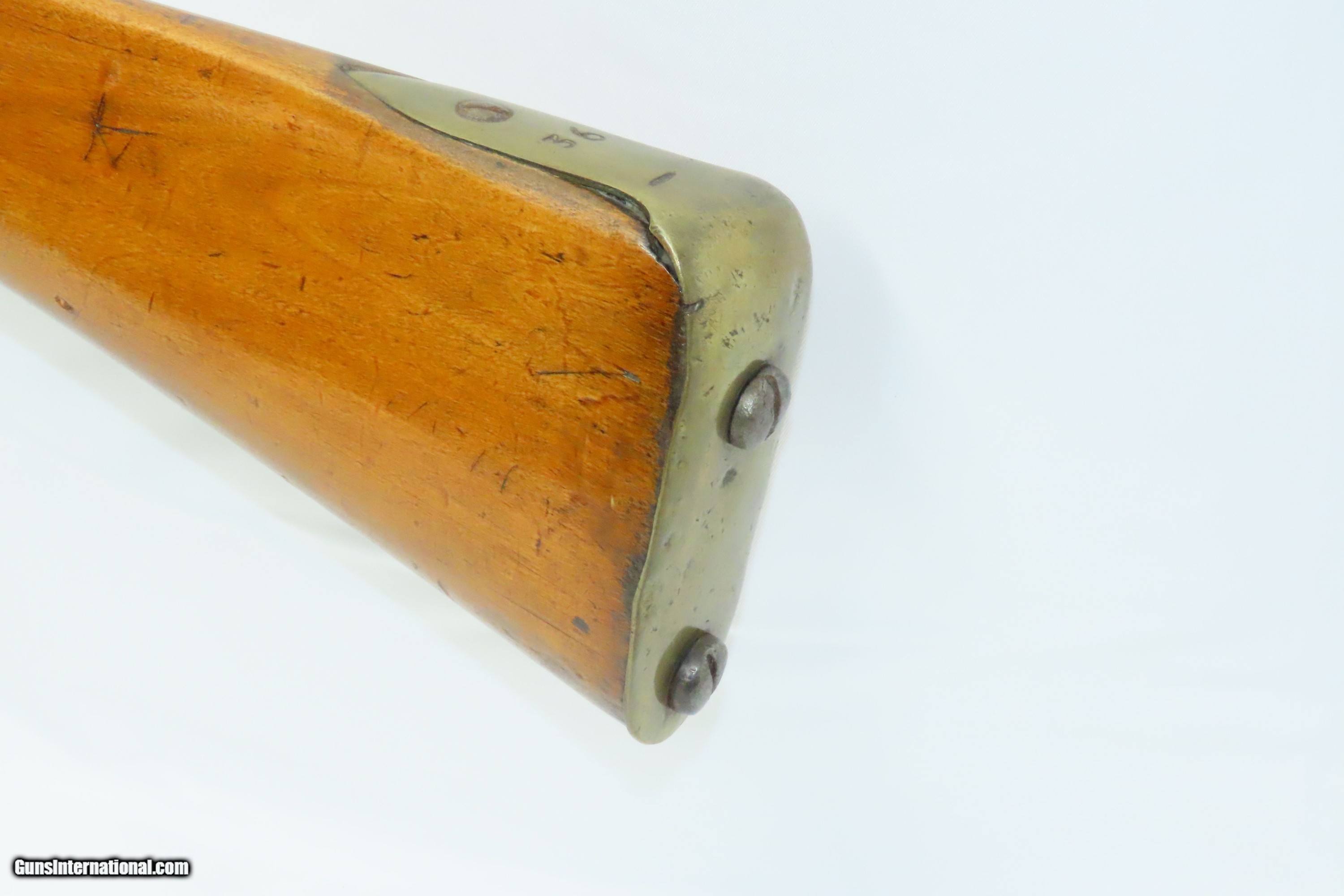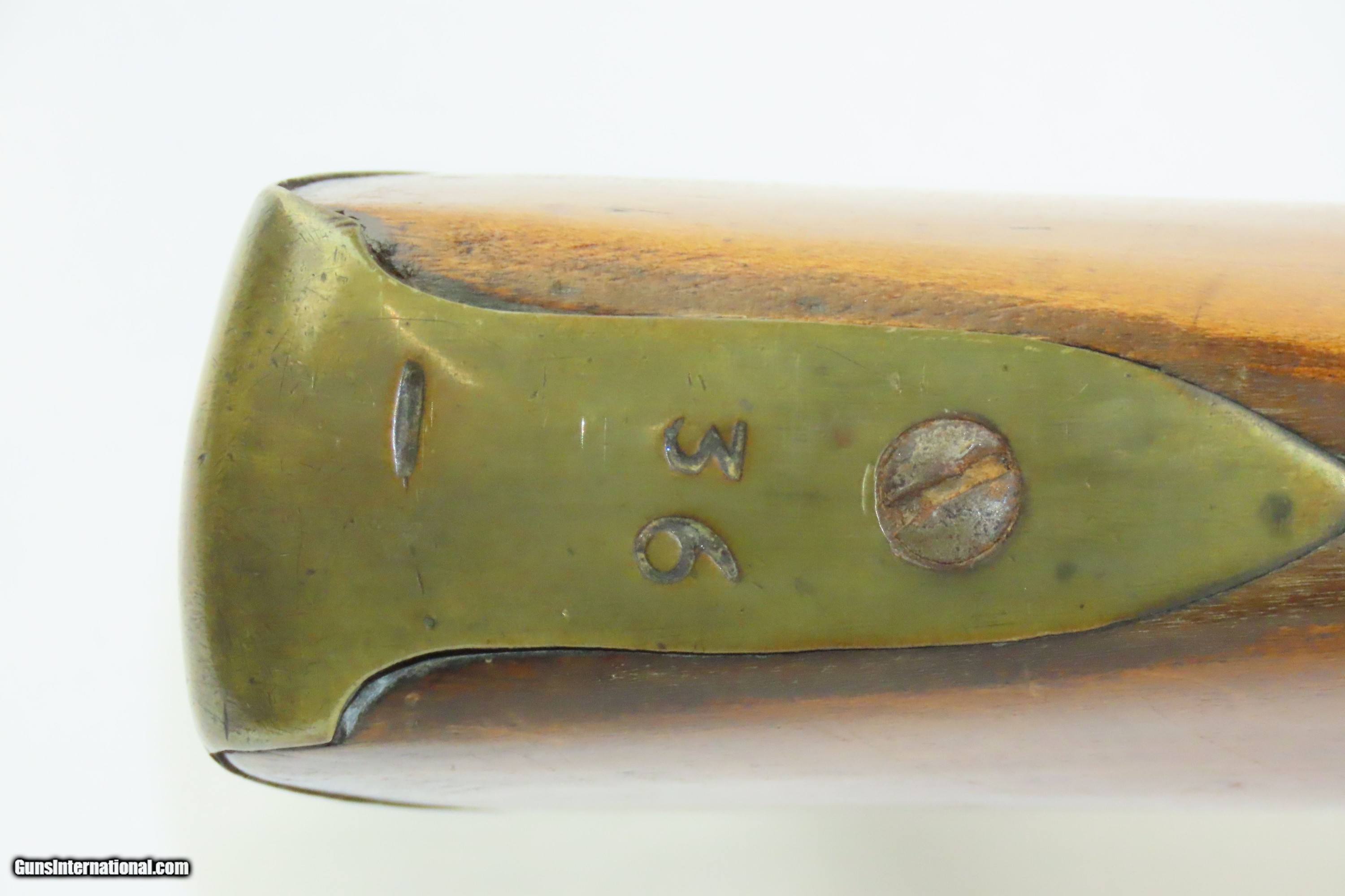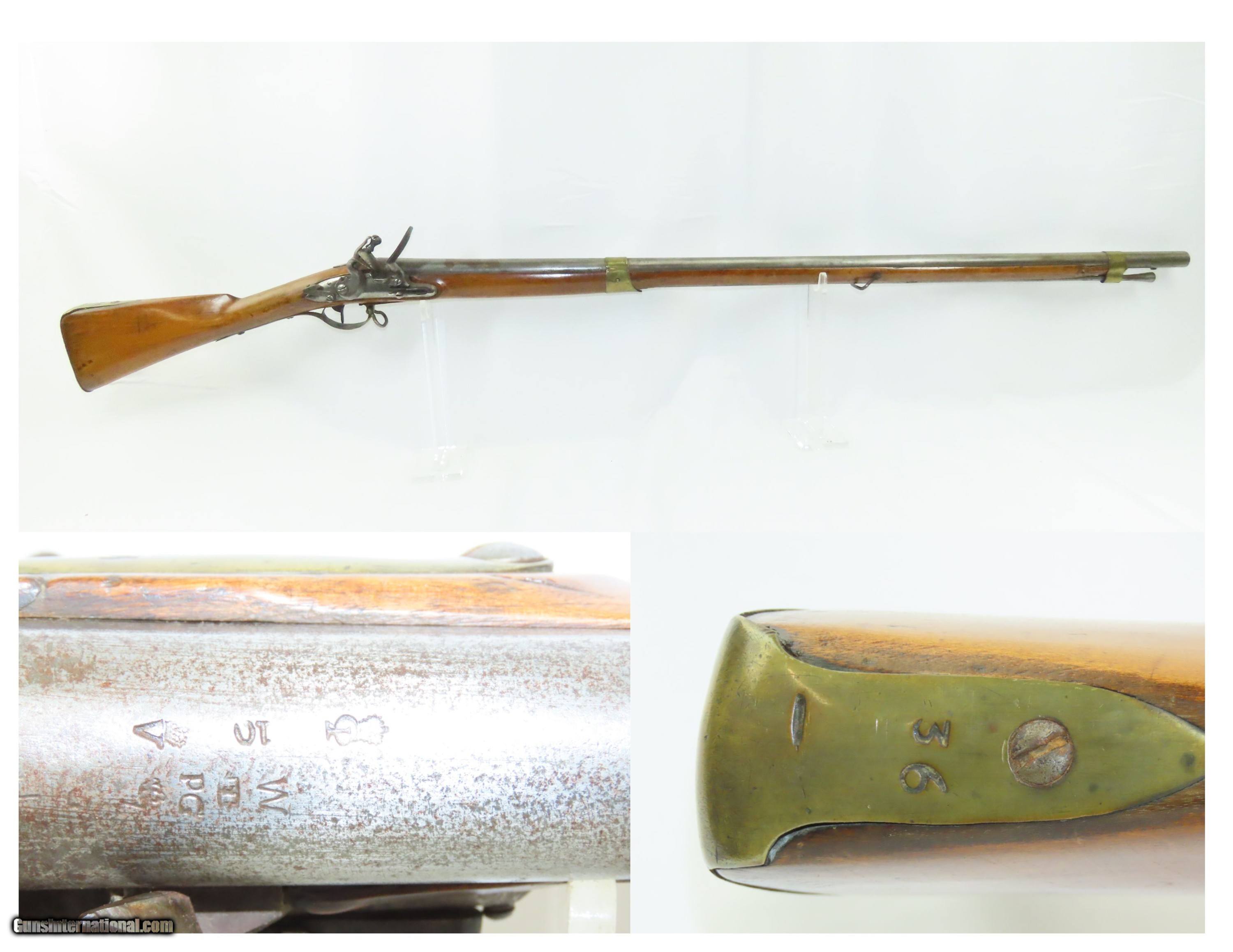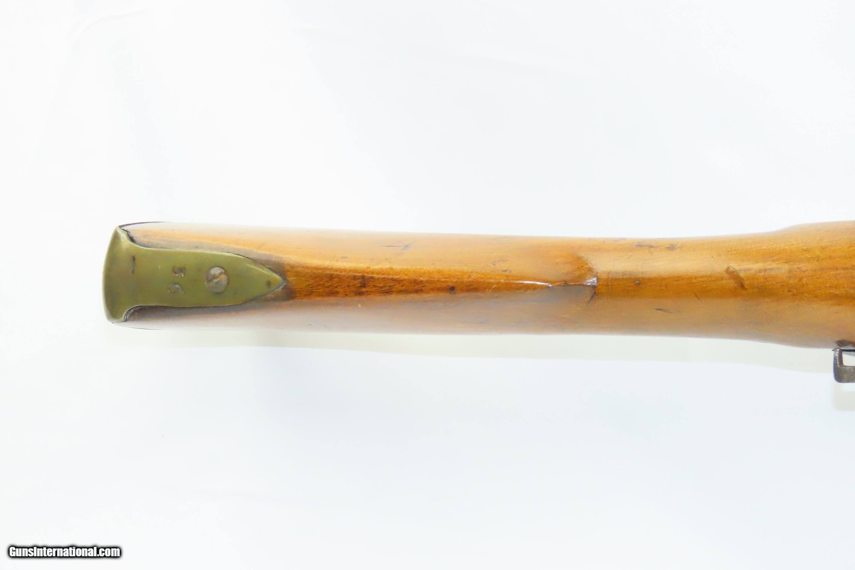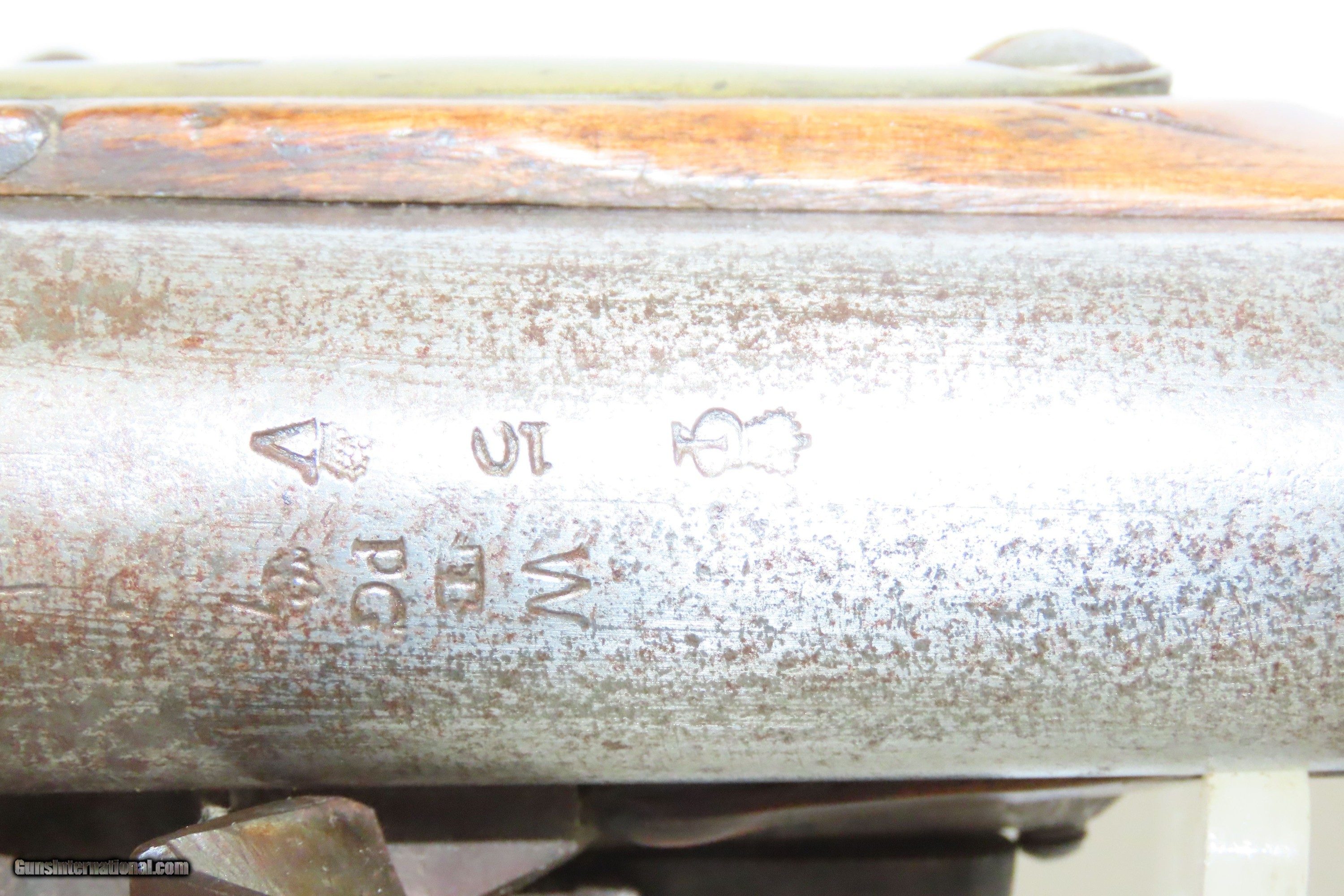 Description: Antique Scandinavian DOGLOCK FLINTLOCK 10 Bore Musket LONDON PROOFED Barrel Smoothbore Military Arm Here we present an antique European Flintlock Smoothbore Musket, made circa the late-18th/early-19th Century. This musket features a massive 10 Bore barrel secured by two bands. The hammer is gracefully curved yet robust and notched for half cock safety catch. This example appears to be largely Scandinavian in origin, but the barrel has both London "crown/GP" and "crown/V" proof marks. The overall condition is good. Gray patina throughout. The action is strong. The bore is smooth and dim. The stock shows use. Own the original! This is a legitimate antique and not a reproduction. Barrel is 43 inches. Caliber: 10 Bore Overall condition as seen in photos. Very Fast. Very Safe. FREE SHIPPING WORLDWIDE. Delivered directly to your door by express mail! Guaranteed AUTHENTIC & Includes CERTIFICATE OF AUTHENTICITY. ancestryguns $2100 #244410 SOLD Antique: Yes |