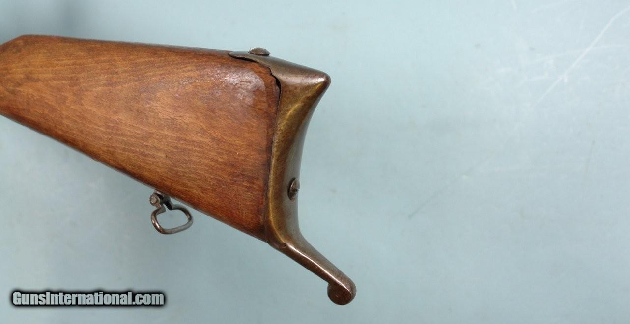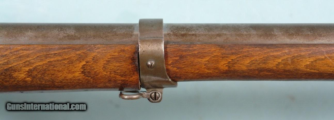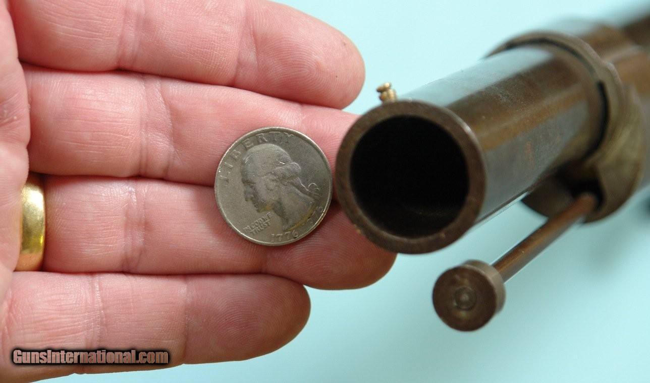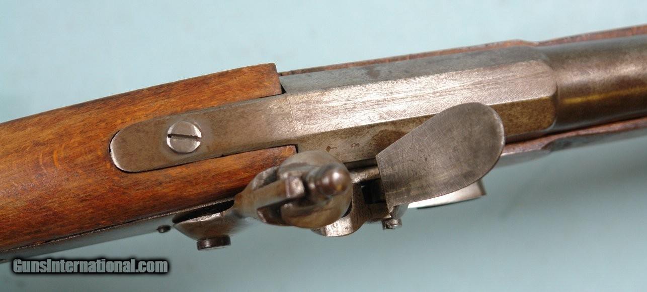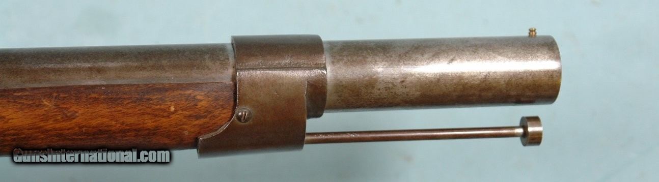 Description: 31740-33 ½” octagon breech round smoothbore barrel. Bore diameter at muzzle .94 inch. Weight 10 pounds. 100% original. Iron mounts and Swiss style butt plate. Trade guns for use on dangerous game primarily sold or traded to native hunters in French African colonies. Excellent condition with light handling patina and mint bore. Possibly unfired. Perfect working order. $650. SOLD Antique: Yes |