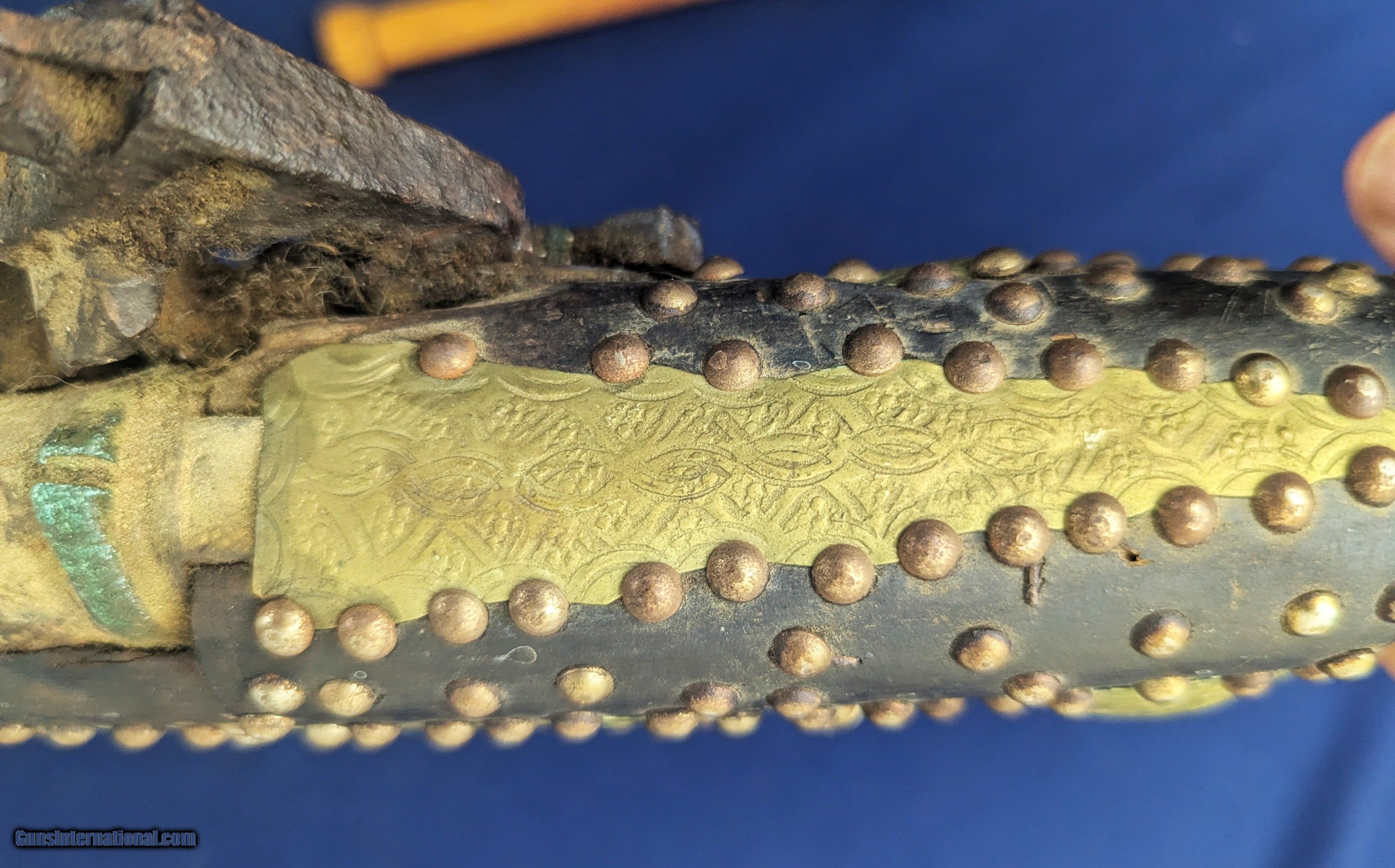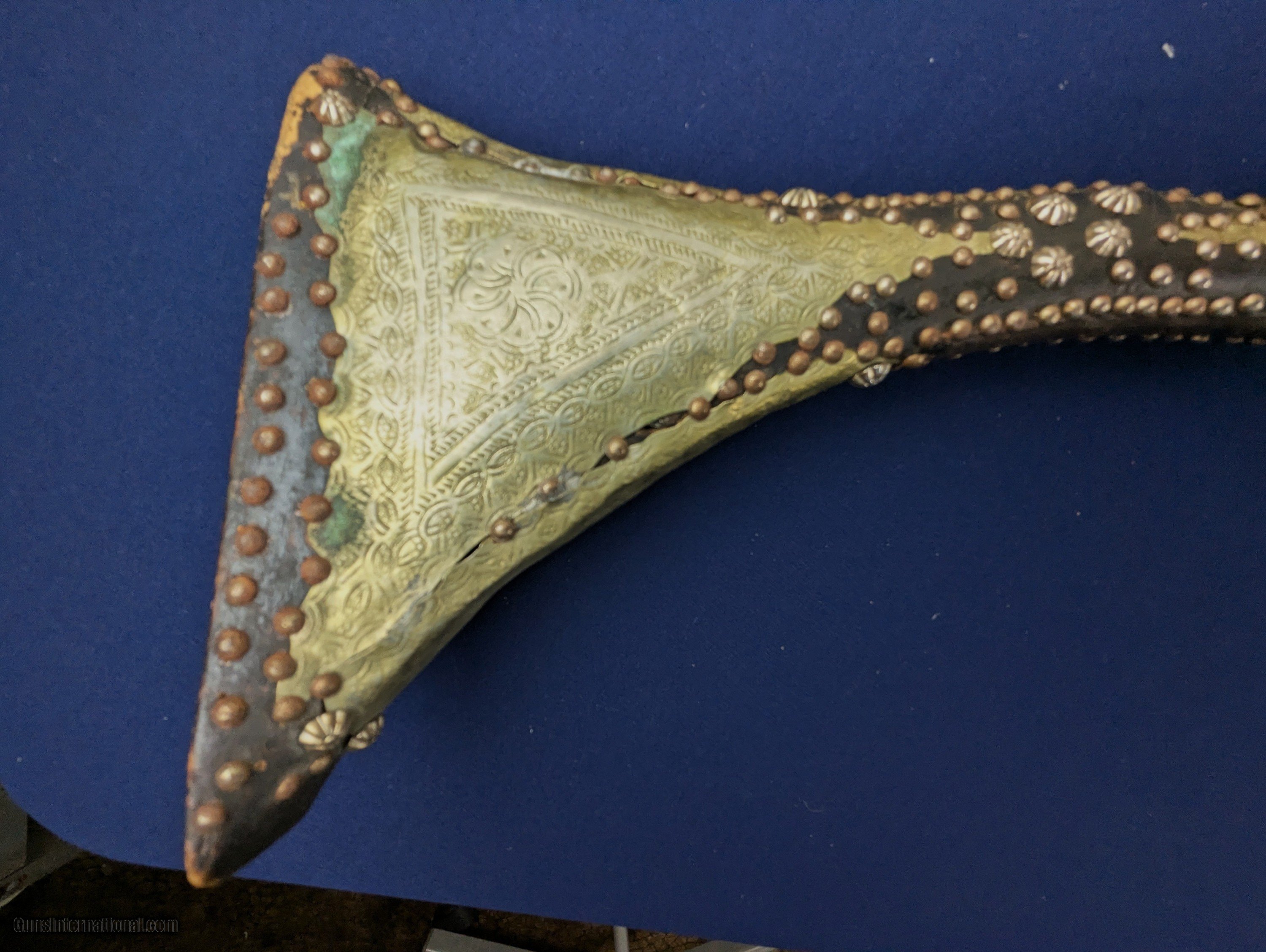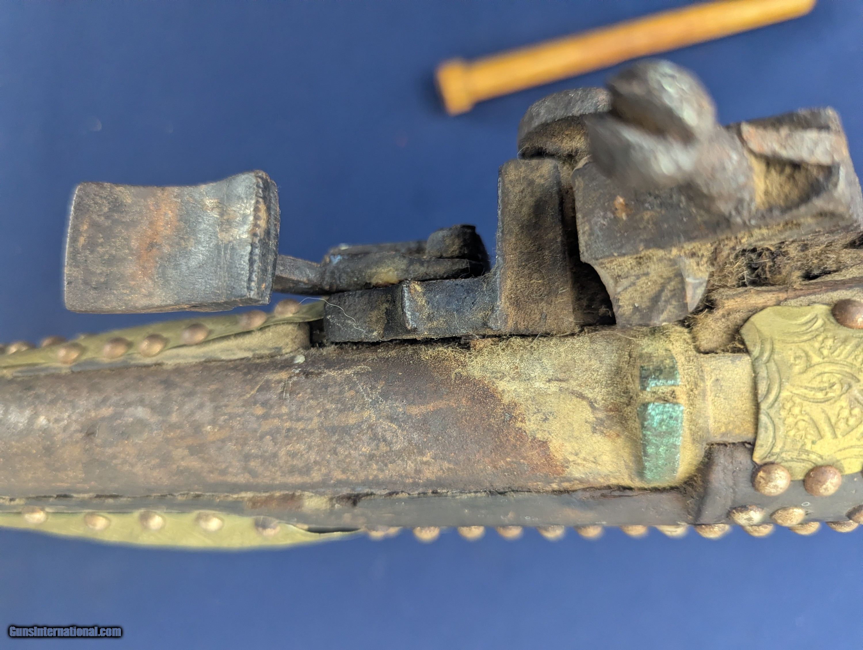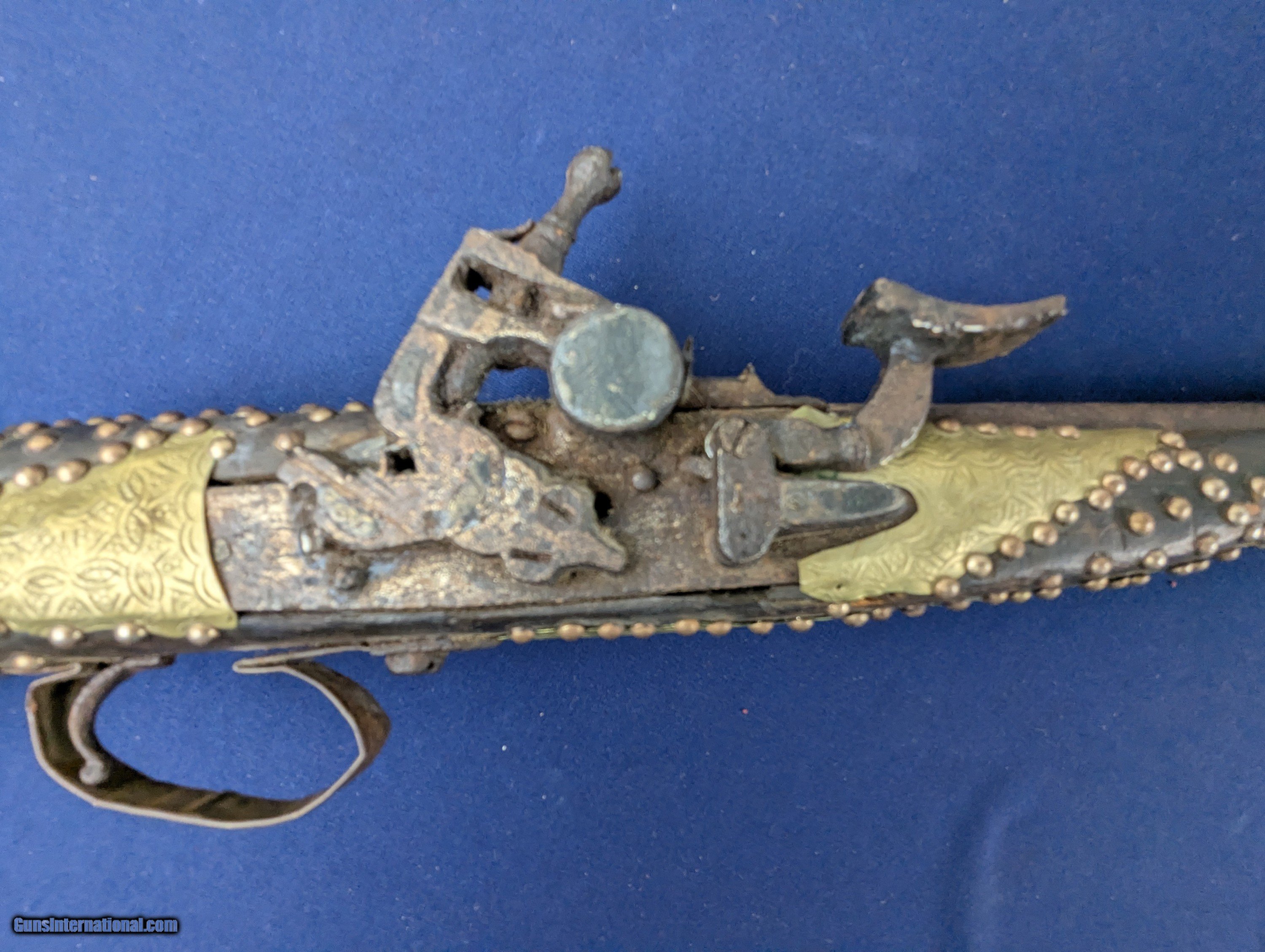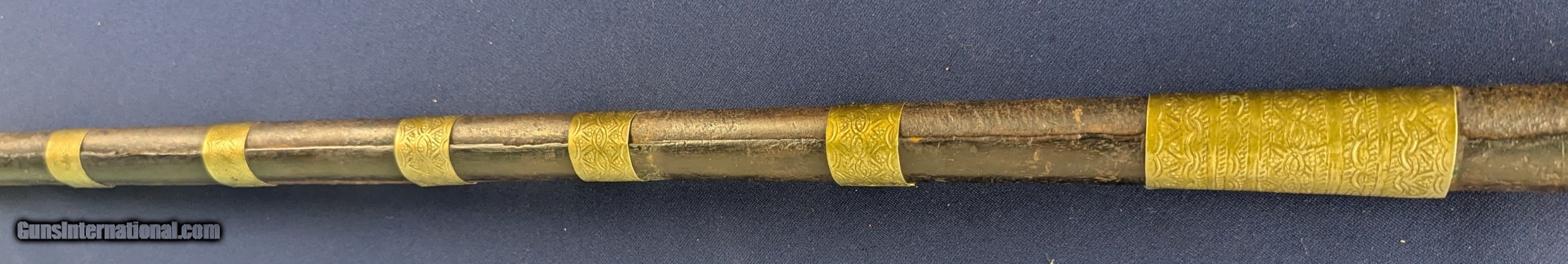 Description: Classic Early Antique Algerian Berber Long Musket Offered her for sale and just acquired along with a collection of antique Indo Persian firearms and edged weapons is this original and untouched mid 1800s Algerian Berber musket. From our research it appears to be an Algerian Berber musket similar to those depicted on page 36 of Tirri's book Magrib to Mogul: Islamic Weapons. The musket is complete and in working condition. It is however covered in a “crusty” surface patina overall which we have not touched. Ornately decorated with hammered brass this very long musket will certainly be a welcome addition for the right collector. Standard shipping is $68. however final shipping amount is based upon geographical area. Handling is $18.00 for longarms only. We gladly accept money orders, bank checks and personal checks. Credit card orders (VISA AND MASTER CARD ONLY) charged 3.95% additional for use. PLEASE CALL DALIA AT 203-257-5256 TO GIVE CREDIT CARD I NFORMATION. Also, please view our at hansenguns. Clicencounhterk on "Online Catalog" and see All OF OUR ITEMS LISTED CONSECUTIVELY on or search online on that site with the ID “lope”...... OFFERED ONLINE AND AVAILABLE IN OUR RETAIL GALLERY IN SOUTHPORT, CT. Visit us also on Facebook at ://facebook/hansenguns/?fref=ts. We also own and/or operate Hansen Cartridge Co. and the Ruger Collectors Assc.(RCA). Hansen & Hansen wishes to expedite each order received, however we ship 80-100 items weekly, therefore orders paid by money orders or bank checks are cleared for shipping 5-7 days after deposited funds show in our account. Shipping date is scheduled ONLY AFTER VERIFICATION TAKES PLACE AND FFL/C&R IS RECEIVED (IF APPLIES). This is 5-7 days after WE receive order by mail - NOT customer date mailed and postmarked and after credit card funds are posted. Credit card orders exceeding $500 must be cleared through customer’s bank before shipping. Personal checks are accepted but orders are held UP TO 3 WEEKS after deposit of funds before items released for shipping. IF you have special instructions or require overnight or expedited shipping please advise at time of ordering and we will gladly prioritize shipping FOR AN ADDITIONAL CHARGE. THIS IS OUR POLICY and we encourage buyers to PLEASE READ AND UNDERSTAND OUR POLICY BEFORE . We would be pleased to answer ANY questions by phone (our toll free number is 1-800-571-7337 or e-mail cwlopiaol. Antique: Yes Rifle Caliber: .50 Price: $1,750.00 Buy Now Contact Seller |
