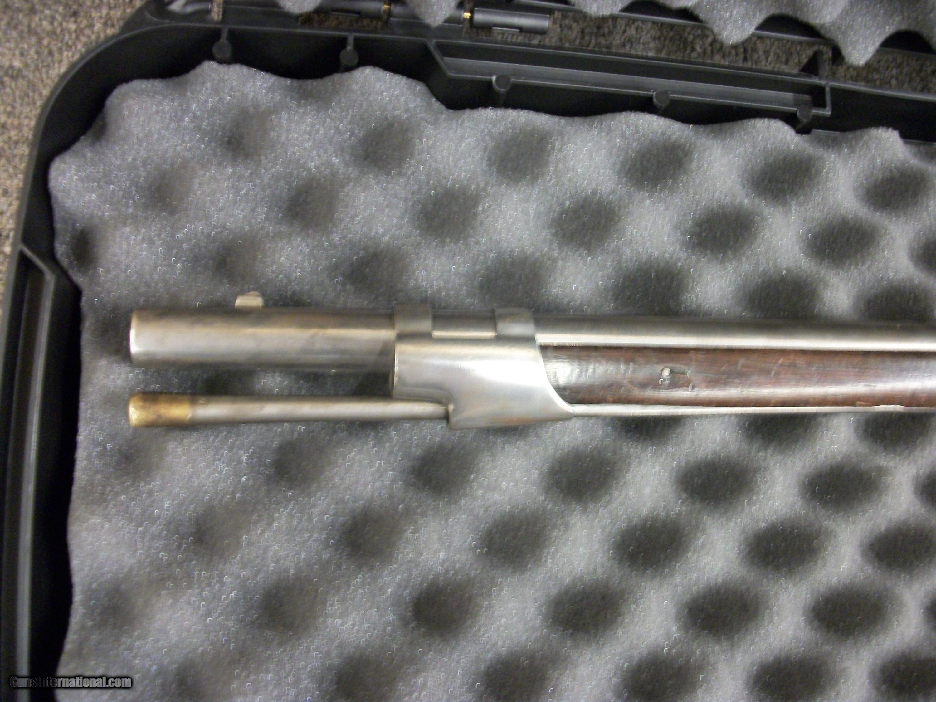Description: ?Deringer Original Percussion Martial Rifle. Overal length 51-1/4 caliber .54 . Barrel length 36'' Marked US as well NJ. STAMPED 14 ON STOCK. And 61 on rear sight. non browned finish. 100% Original For any questions at all call the store at (317)422-0102. SOLD Antique: Yes Model: 54cal |