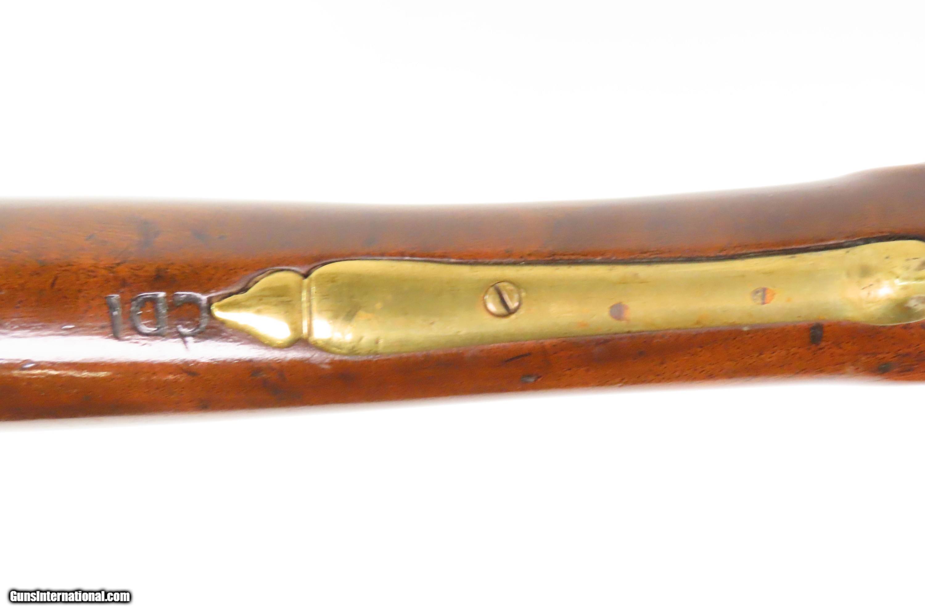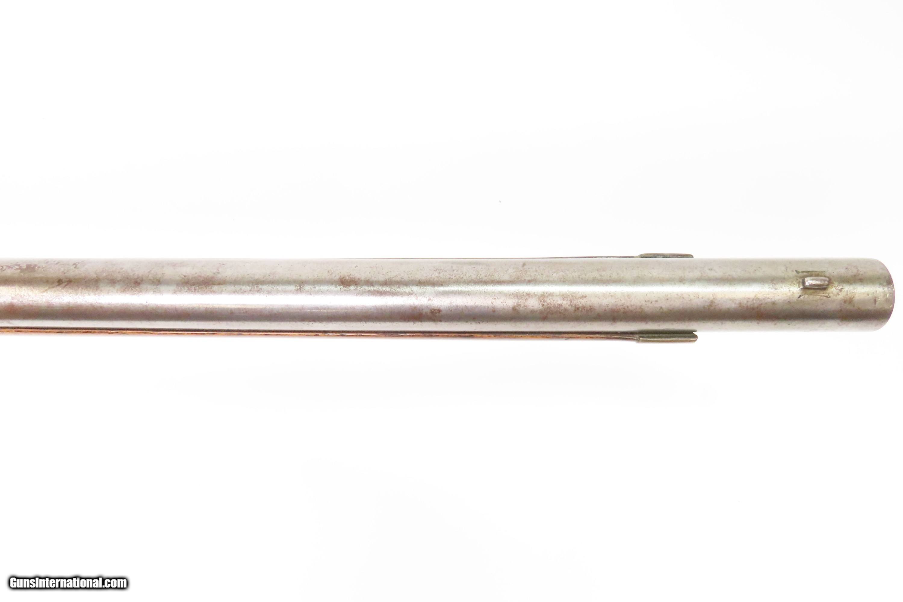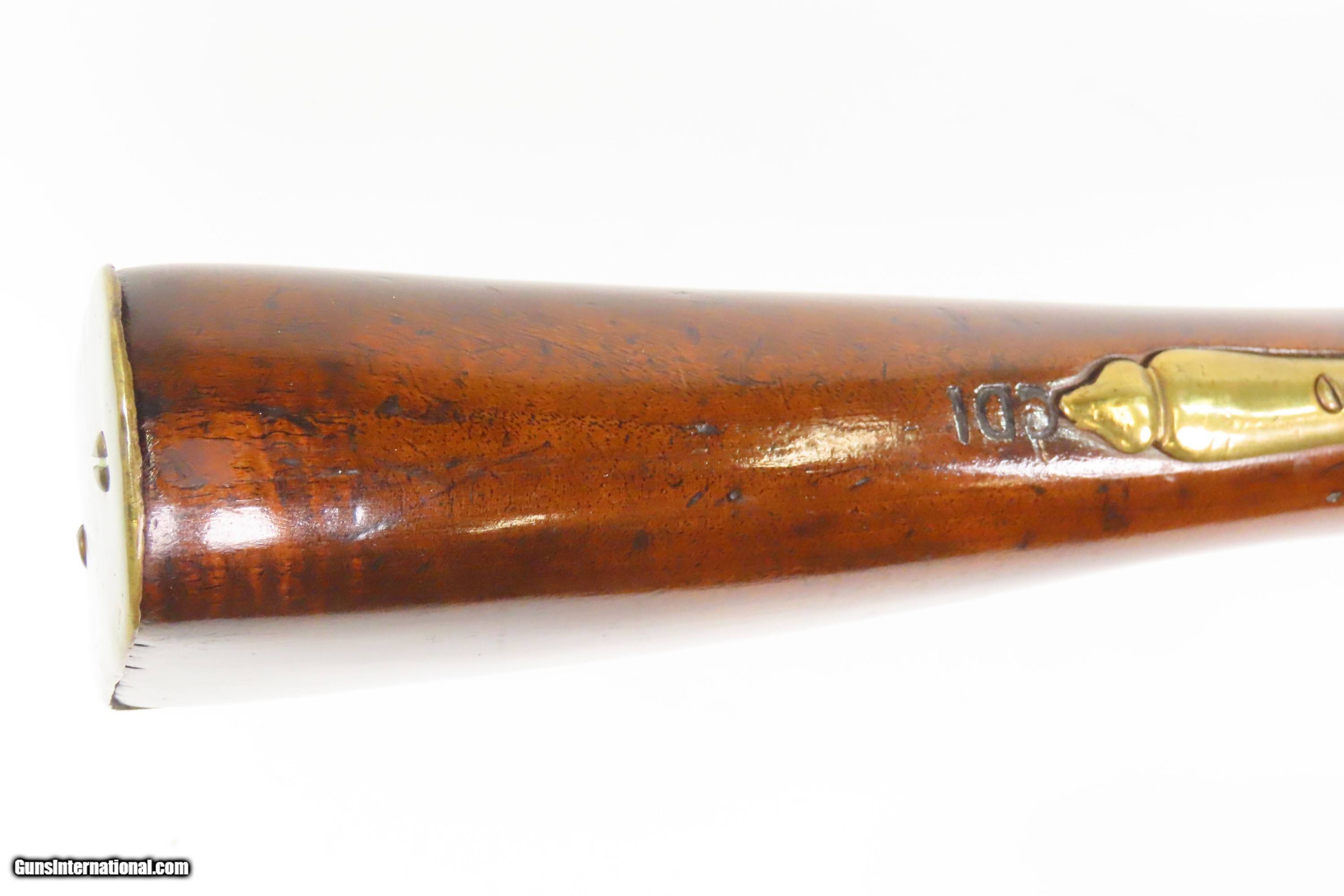 Description: EARLY 1700s Antique “V: Gustet” DUTCH Pattern FLINTLOCK MILITARY Musket PRE-REVOLUTIONARY WAR Era Dutch Musket Here we present an antique Early 18th Century Dutch Pattern Military Musket. Dutch flintlock muskets were imported into the American colonies starting in the early 18th century and are documented as used by the Patriots during the American Revolution. Benjamin Franklin aided Massachusetts with the purchase of thousands of Dutch muskets. The Dutch muskets are described on pages 389-395 of George D. Moller's book "American Military Shoulder Arms Volume I". During the early years of the British Colonies in America, there was little manufacturing capability available domestically, so items such as firearms, swords, and so forth were imported. Much came from England, but other European countries, such as the Netherlands, were also happy to supply the new and expanding market. During the French and Indian War, and even in the later American Revolutionary War, many of weapons used were of European manufacture. This example is of Dutch origin, with an early pattern "rounded" lock plate as produced circa 1710-1720, after which a flat lock plate with beveled sides was used. An example much like this one is described in the book “Battle Weapons of the American Revolution” by George C. Neumann on page 108, item 58.MM "DUTCH INFANTRY MUSKET". Such weapons were definitely in the inventory of American Colonists during the French and Indian war as well as the American Revolutionary War. The overall condition is good. Strong action, but reconverted. The bore is in good shape for its age. Solid stock throughout with average wear and a nice smooth revarnishing. Markings are legible. The lock is completely unmarked, as is correct for the pattern. There is the designation “No 95” marked on top of barrel. It is also marked with “V: Gustet” on the side plate. Own the original! This is a legitimate antique and not a reproduction. Barrel is 44-1/2 inches. Caliber: .80 Flintlock Overall condition as seen in photos. Very Fast. Very Safe. FREE SHIPPING WORLDWIDE. Delivered directly to your door by express mail! Guaranteed AUTHENTIC & Includes CERTIFICATE OF AUTHENTICITY. ancestryguns $2600 #247436 SOLD Antique: Yes |
