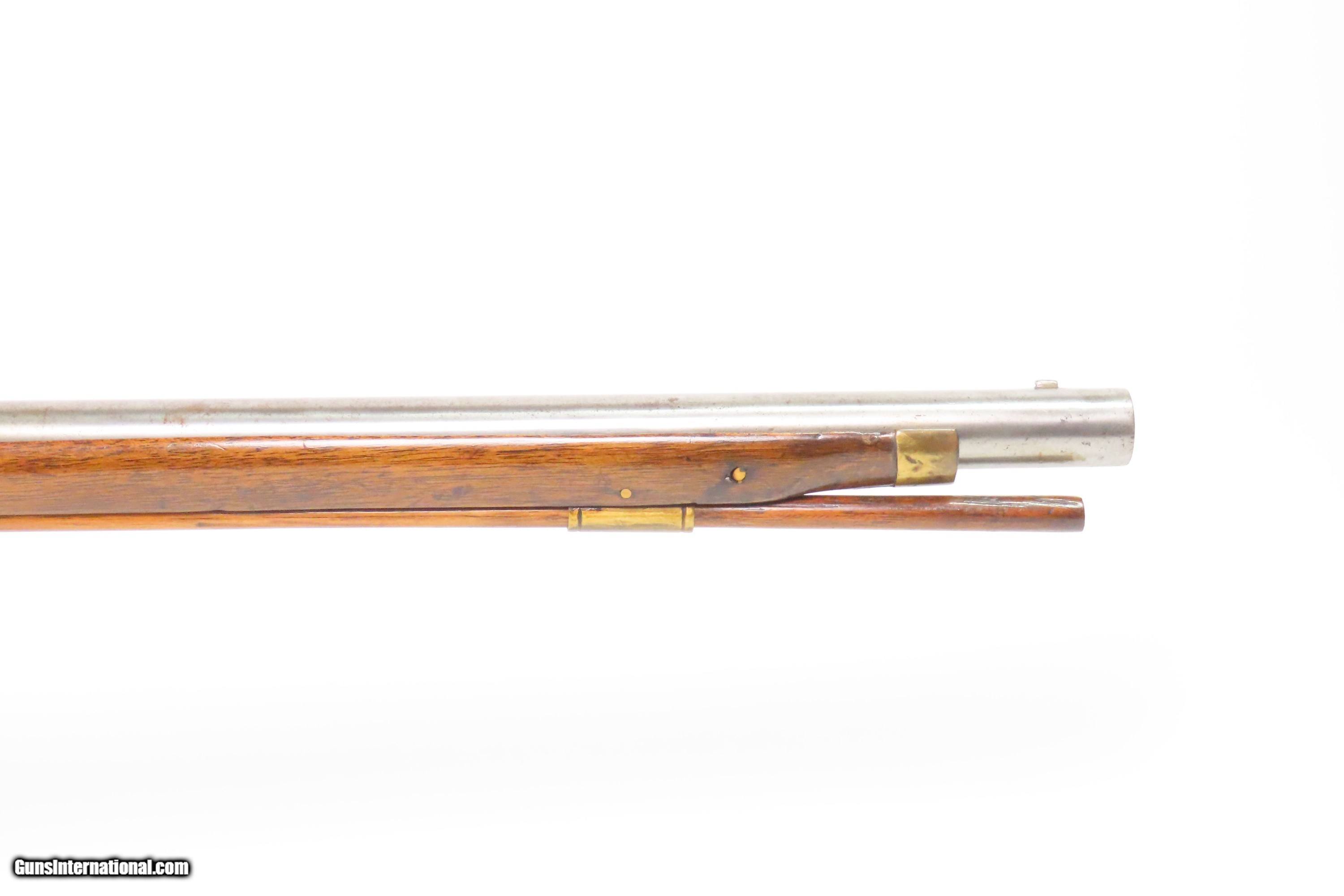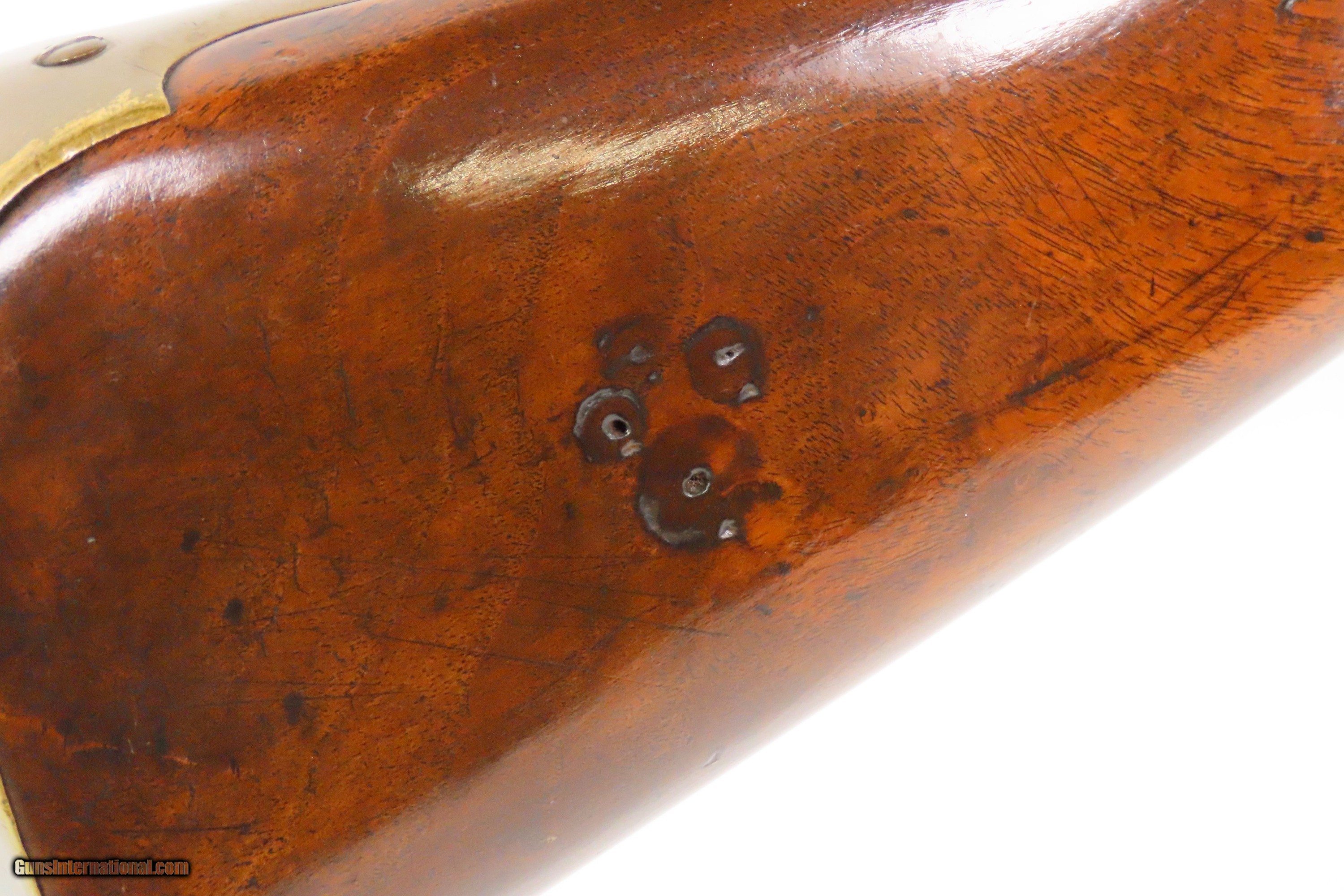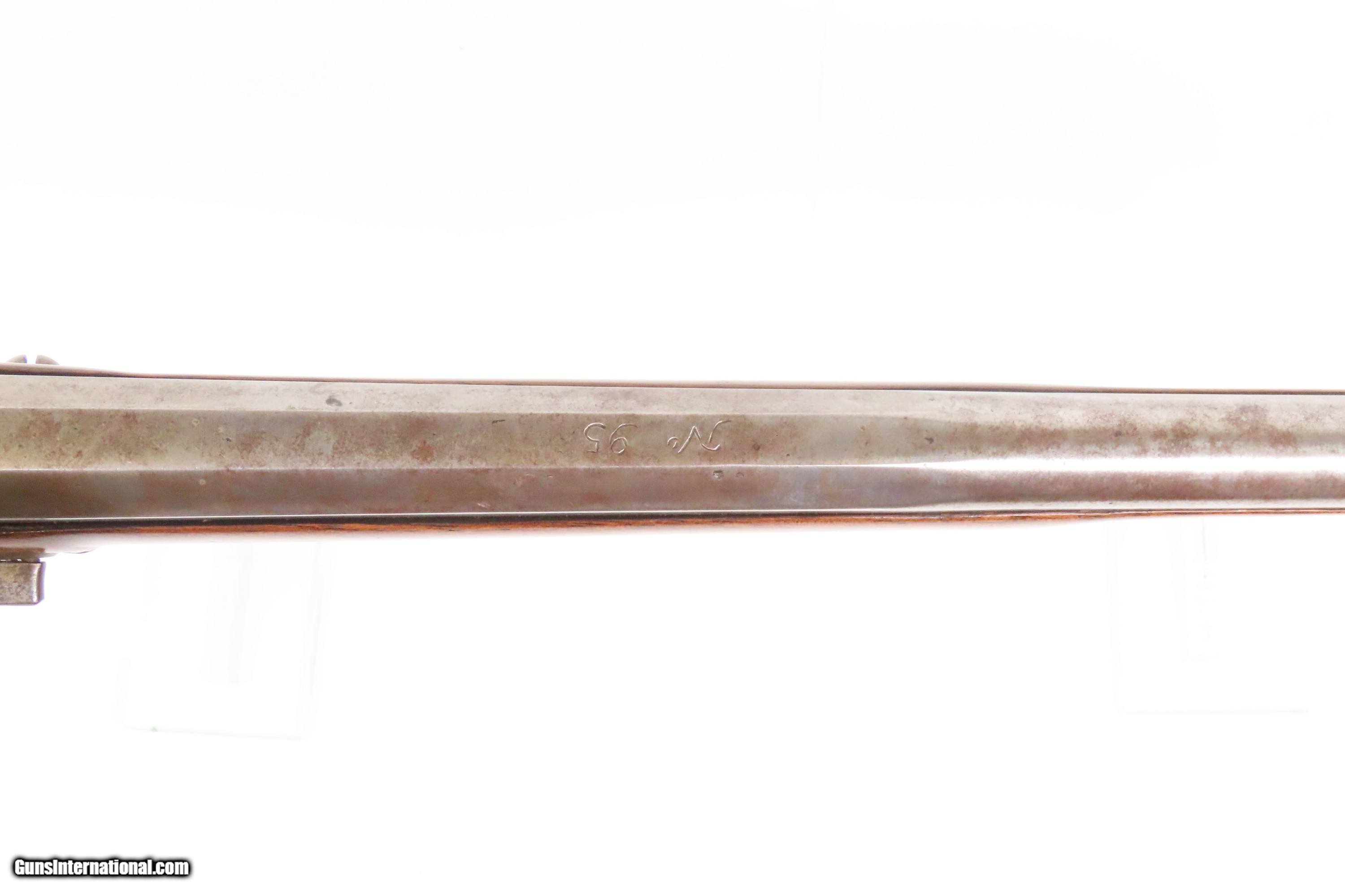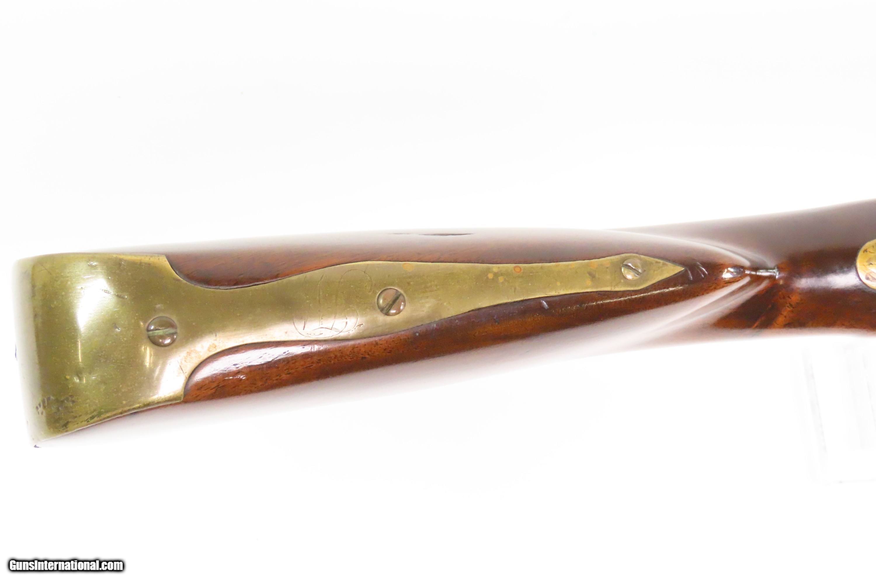 Description: EARLY 1700s Antique “V: Gustet” DUTCH Pattern FLINTLOCK MILITARY Musket PRE-REVOLUTIONARY WAR Era Dutch Musket Here we present an antique Early 18th Century Dutch Pattern Military Musket. Dutch flintlock muskets were imported into the American colonies starting in the early 18th century and are documented as used by the Patriots during the American Revolution. Benjamin Franklin aided Massachusetts with the purchase of thousands of Dutch muskets. The Dutch muskets are described on pages 389-395 of George D. Moller's book "American Military Shoulder Arms Volume I". During the early years of the British Colonies in America, there was little manufacturing capability available domestically, so items such as firearms, swords, and so forth were imported. Much came from England, but other European countries, such as the Netherlands, were also happy to supply the new and expanding market. During the French and Indian War, and even in the later American Revolutionary War, many of weapons used were of European manufacture. This example is of Dutch origin, with an early pattern "rounded" lock plate as produced circa 1710-1720, after which a flat lock plate with beveled sides was used. An example much like this one is described in the book “Battle Weapons of the American Revolution” by George C. Neumann on page 108, item 58.MM "DUTCH INFANTRY MUSKET". Such weapons were definitely in the inventory of American Colonists during the French and Indian war as well as the American Revolutionary War. The overall condition is good. Strong action, but reconverted. The bore is in good shape for its age. Solid stock throughout with average wear and a nice smooth revarnishing. Markings are legible. The lock is completely unmarked, as is correct for the pattern. There is the designation “No 95” marked on top of barrel. It is also marked with “V: Gustet” on the side plate. Own the original! This is a legitimate antique and not a reproduction. Barrel is 44-1/2 inches. Caliber: .80 Flintlock Overall condition as seen in photos. Very Fast. Very Safe. FREE SHIPPING WORLDWIDE. Delivered directly to your door by express mail! Guaranteed AUTHENTIC & Includes CERTIFICATE OF AUTHENTICITY. ancestryguns $2600 #247436 SOLD Antique: Yes |