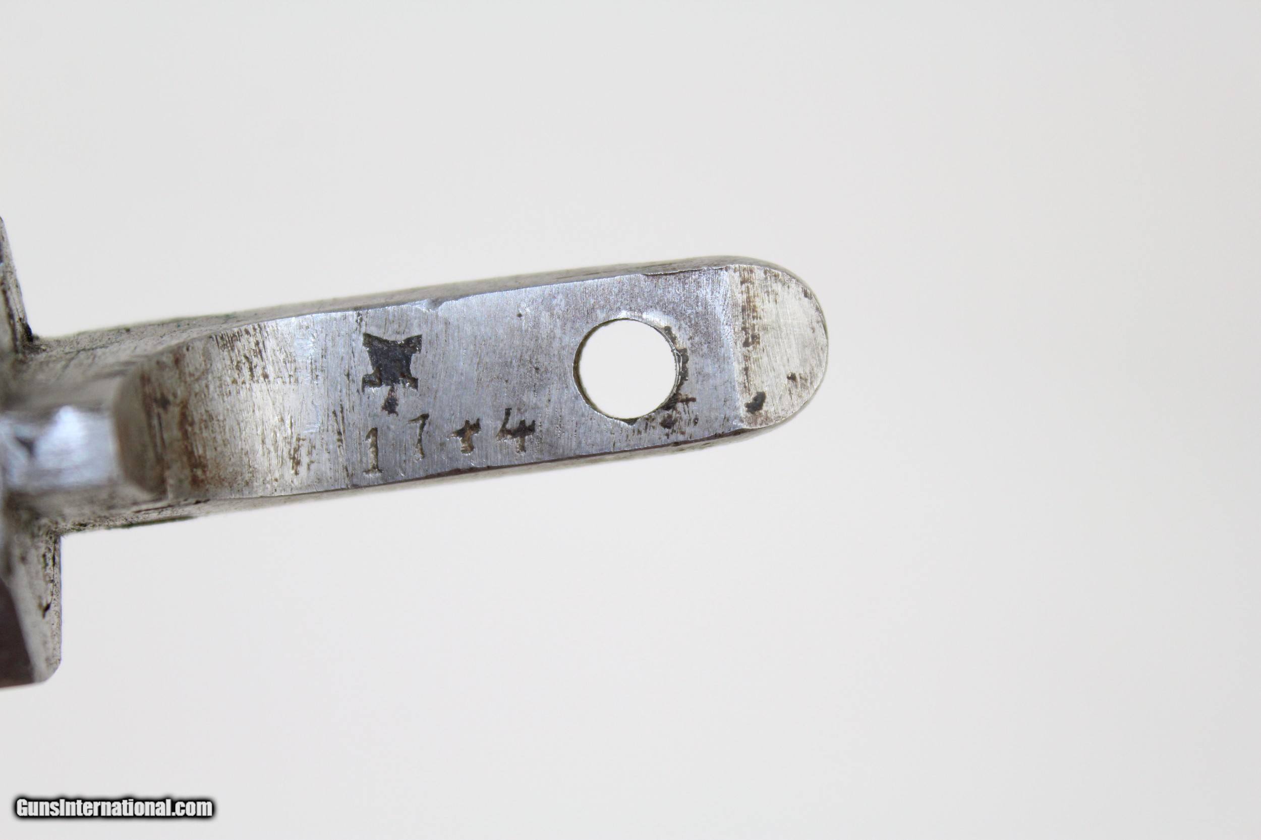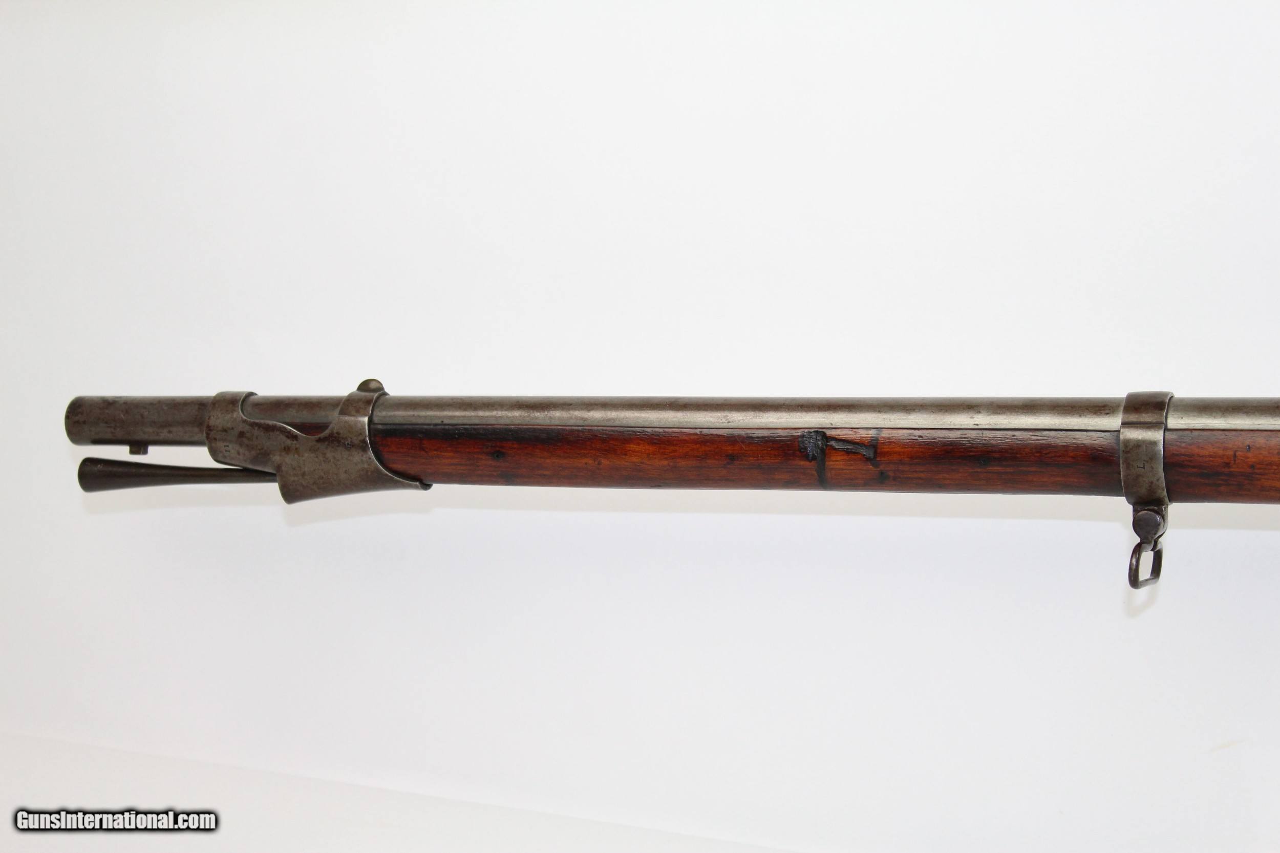 Description: FRENCH Antique AN IX Flintlock Musket With British Proofs & Markings Here we present an antique French Model AN IX Flintlock Military Musket, made in the late 18th or early 19th Century. This musket follows the pattern of the AN IX though it appears to have been made abroad, possibly Brescia, now in Italy. This musket would have been used by an infantryman and is equipped with a bayonet lug and good sights for a smooth bore musket, especially with the presence of the blocky rear sight. Front sight is integral to the foremost barrel band. Inspection marks of “Crown/P/16” are visible on the lock face behind the hammer. There is a tiny “Crown/H” inside an oval on the rear tang of the trigger guard. British London proof marks of “Crown/CP” and “Crown/V” are located on the left side of the barrel. A faint date of “1816” and the number “14” are also present between them, 14 for bore size. Various inspection, proof, and acceptance marks are located on the underside of the barrel, including a “Crown/R”. Number “1744” is located on the barrel and breech block. Assembly number Roman numeral “VII” is located on the barrel, and on the lock. Number “4” is located at the inside front of the lock as well as the lock inletting of the stock. Maker’s marks are located on both the inside of the lock and under the barrel. The lock is marked King George’s royal cipher and dated “1776”. The overall condition is near fine. The iron parts were finished bright and bear a light brown patina. The markings are clear. The walnut stock is in great condition with the handling marks you would expect from a 200+ year old musket. The bore is smooth, clean and reflective. The action is excellent, strong and crisp. Here is a fantastic and very interesting musket that appears to have been all around Europe and remains in great firing condition! Own the original! This is a legitimate antique and not a reproduction. Barrel is 42-3/4 inches. Caliber: .69 Overall condition as seen in photos. Very Fast. Very Safe. FREE SHIPPING WORLDWIDE. Delivered directly to your door by express mail! Guaranteed AUTHENTIC & Includes CERTIFICATE OF AUTHENTICITY. ancestryguns $3950 #7152 SOLD Antique: Yes |