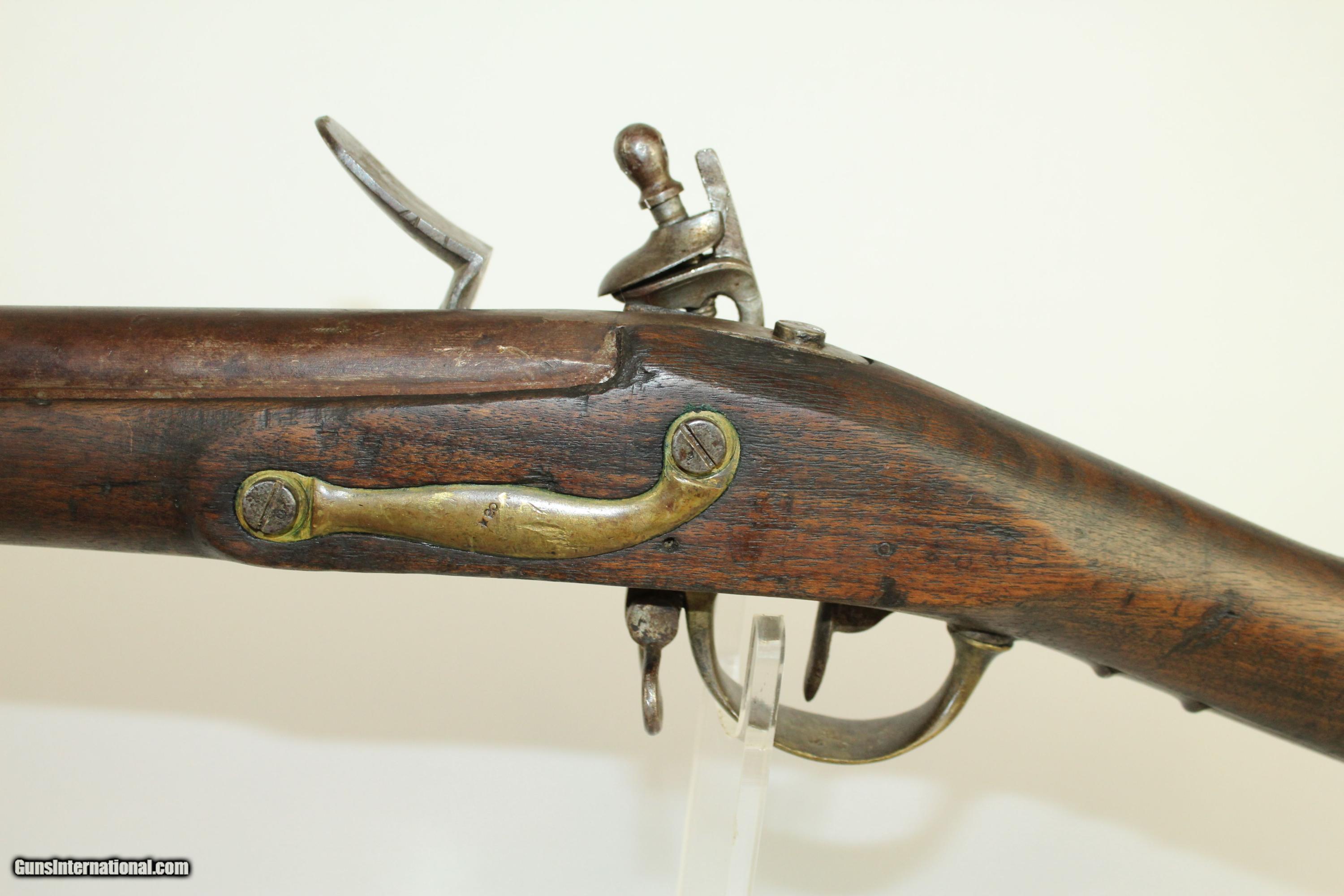 Description: FRENCH Antique MAUBEUGE Model 1777 Flint Musket American REVOLUTIONARY WAR Flintlock Weapon Here we present an antique French Model 1777 Flintlock Musket, made circa 1777 at the arsenal at Maubeuge in France. The 1777, which was and is also known as the “Charleville”, was an updated version of a line of French military muskets going back to 1717. It came by that nickname during the American Revolutionary War, when this line of French flintlocks were imported for use by the rebel colonists. The French that came across and fought on American soil also used these muskets. In addition, the “Charleville” would also go on to fight in other world-changing conflicts, like the Napoleonic Wars and the French Revolution. The musket was very successful, prompting copies from other nations, both licensed and unlicensed. In fact, like the extremely rare North & Cheney US Model 1799 Flintlock Pistol was based on the French Model 1777 Flintlock Pistol, so too was the US Model 1795 Flintlock Musket based on the French design. There is a ton of history in this gun. Lock is marked as made at “Maubeuge”. The stock is imprinted with a small military acceptance mark on the right side of the stock. The left side of the butt stock is marked with a large circle with “PLD” inside. Under that is the number “211”. Small inspector marks can be found throughout. The underside of the barrel is marked “E/272”, as is the breech plug. There are other assembly marks throughout. Overall condition is good. The metal is dark and markings in the metal are clear. The stock is solid, with a graft under the rear barrel band. Markings are mostly clear, though it has been lightly sanded. The bore is smooth and untouched, just dusty. The action is still strong, even after a couple hundred years. Here is a great opportunity to own a true piece of French, American and world history. Own the original! This is a legitimate antique and not a reproduction. Barrel is 38-1/8 inches in length. Caliber: .69 Overall condition as seen in photos. Very Fast. Very Safe. FREE SHIPPING WORLDWIDE. Delivered directly to your door by express mail! Guaranteed AUTHENTIC & Includes CERTIFICATE OF AUTHENTICITY. ancestryguns $2000 #10515 SOLD Antique: Yes |
