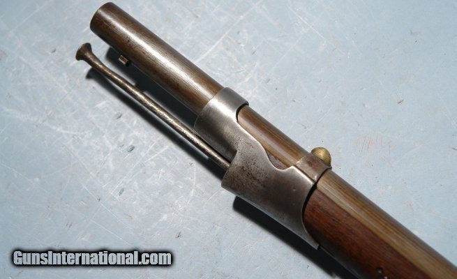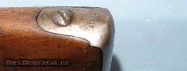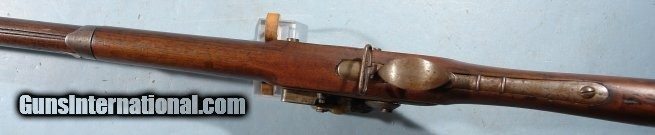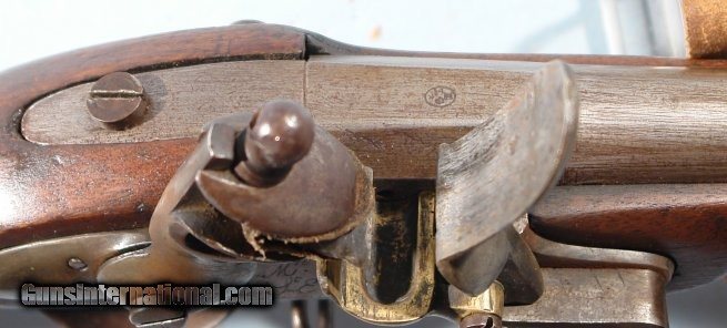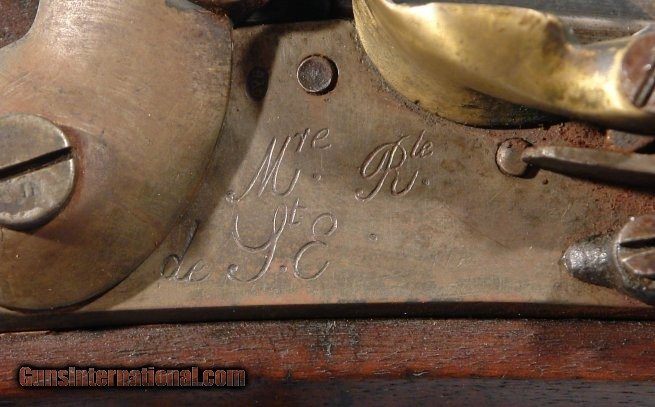 Description: FRENCH ST. ETIENNE MODEL 1822 FLINTLOCK LIGHT INFANTRY MUSKET CIRCA 1830’S. 39” smoothbore .69 caliber barrel with Liege proof at the top breech. Lock plate stamped “MRE. RLE./ DE ST. E.”. Stock with Ordnance Inspector’s marks on right side of butt including a storekeeper’s cartouche dated 1837. All original with exception of the ramrod which is and old period replacement. Fine plus with very fine metal with original patina. Excellent markings. Original flint and not a reconversion and with all the original lockparts. Excellent stock with nice handling patina. SOLD Antique: Yes |