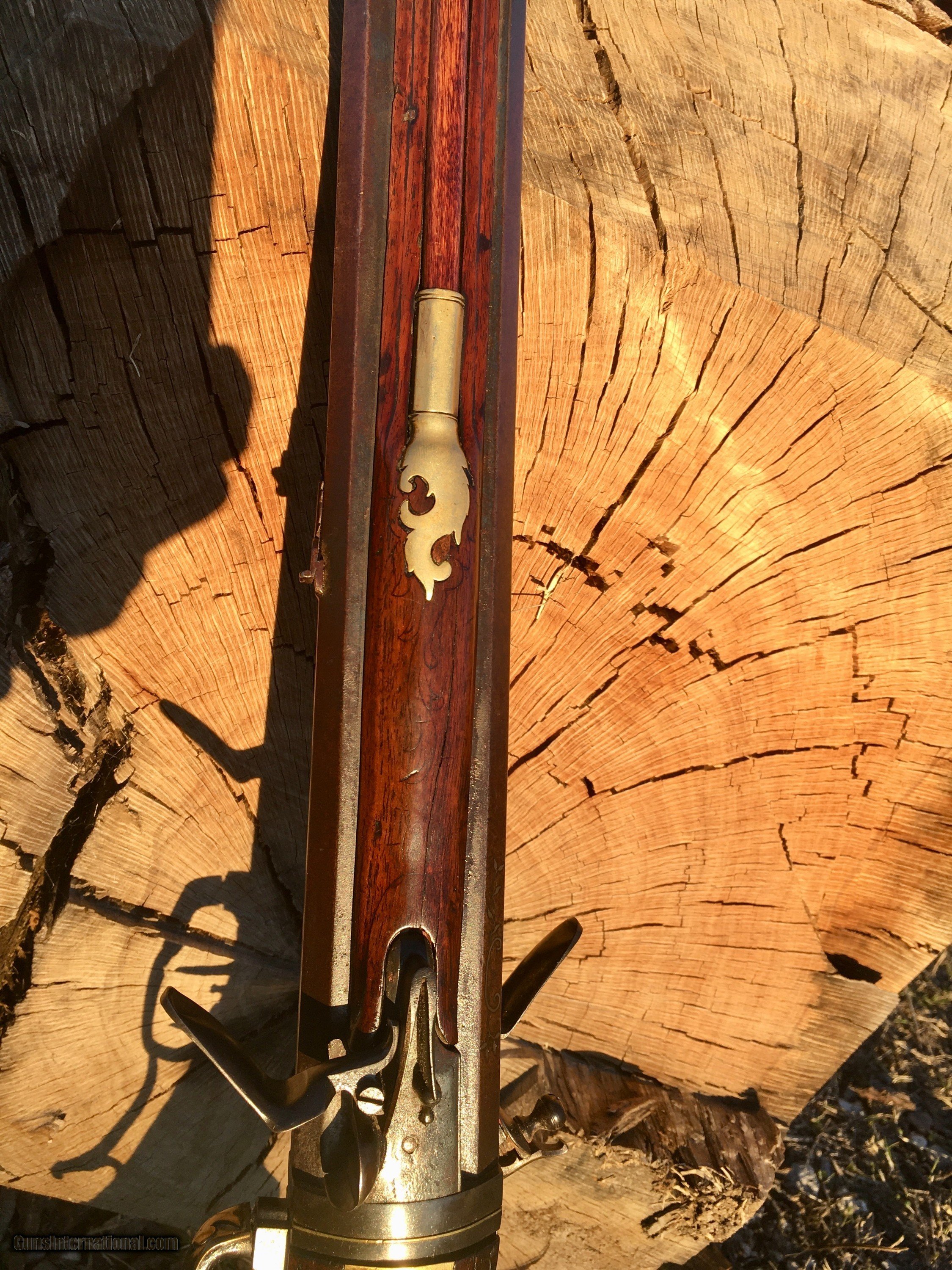 Description: A very interesting Hoffer Swivel gun. These seem to be rare finds. Beautiful inlays and carvings, scattered cracks and wear as you would expect for a gun this age. Its a .54 rifle over .58 smoothbore I believe. To swivel the gun, simply press down on the front of the trigger guard and rotate barrels. There is some play in the swivel point due to use I assume. There is someone's name on the inside of the patch box lid. A neat old German hunting gun! Feel free to ask questions! Thank you! SOLD Curio/Relic: Yes Antique: Yes |