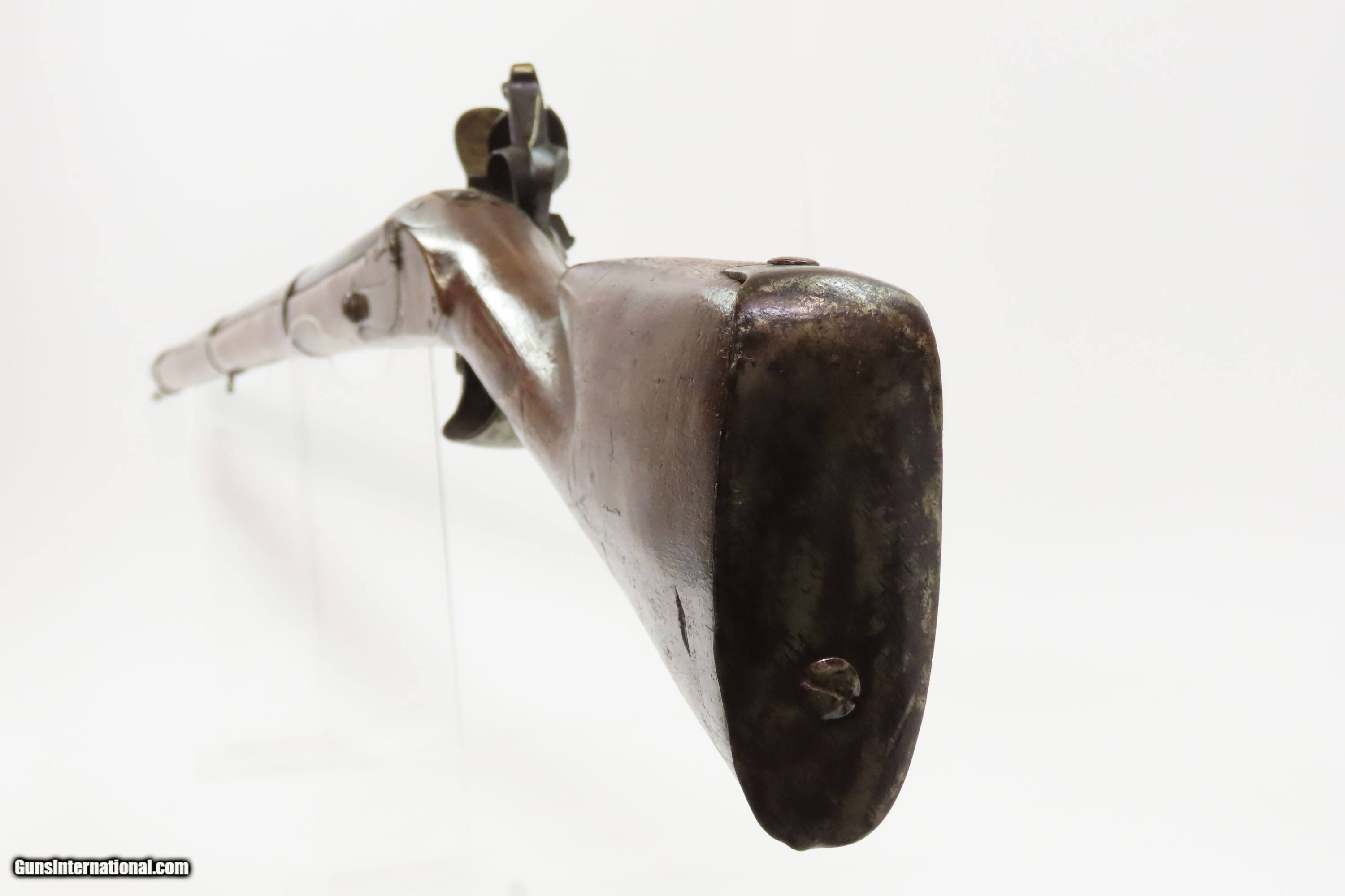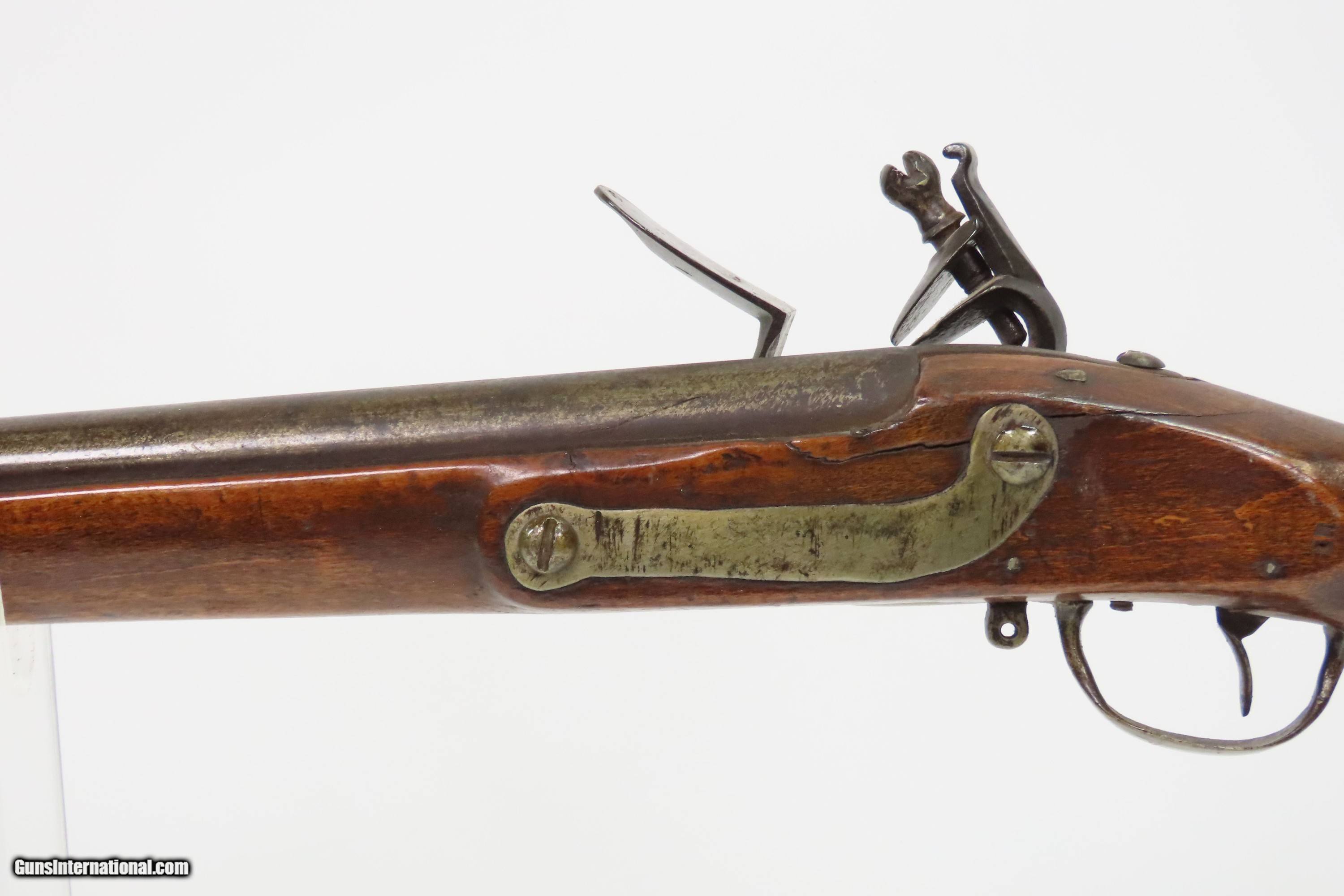 Description: LATE 1700s to EARLY 1800s Antique American FLINTLOCK .58 Smoothbore MUSKET Wonderful MILITIA STYLE Longarm Here we present an antique European Flintlock Smoothbore Musket, made circa the late-18th/early-19th Century. This musket features a smoothbore .72 caliber barrel with iron furniture. It has a full-length stock and simple, standard components. This is the type of indigenous musket that would have been sent over to the American colonies in the years surrounding the post-American Revolutionary War era. Guns such as this would have been a staple in the homes of most everyone living in the countryside, to both provide food for the table or to protect against both man and beast. The overall condition is good. Original, dark barrel patina. The stock is solid throughout and has been re-oiled. Strong action. The bore is in good shape for its age and has darkened. The buttplate is slightly oversized. Stable repairs around the barrel tang. Own the original! This is a legitimate antique and not a reproduction. Barrel is 42-1/4 inches. Caliber: .72 Flintlock Overall condition as seen in photos. Very Fast. Very Safe. FREE SHIPPING WORLDWIDE. Delivered directly to your door by express mail! Guaranteed AUTHENTIC & Includes CERTIFICATE OF AUTHENTICITY. ancestryguns $1800 #250541 SOLD Antique: Yes |