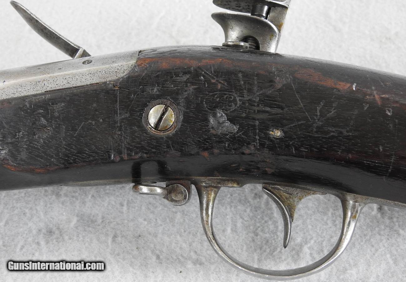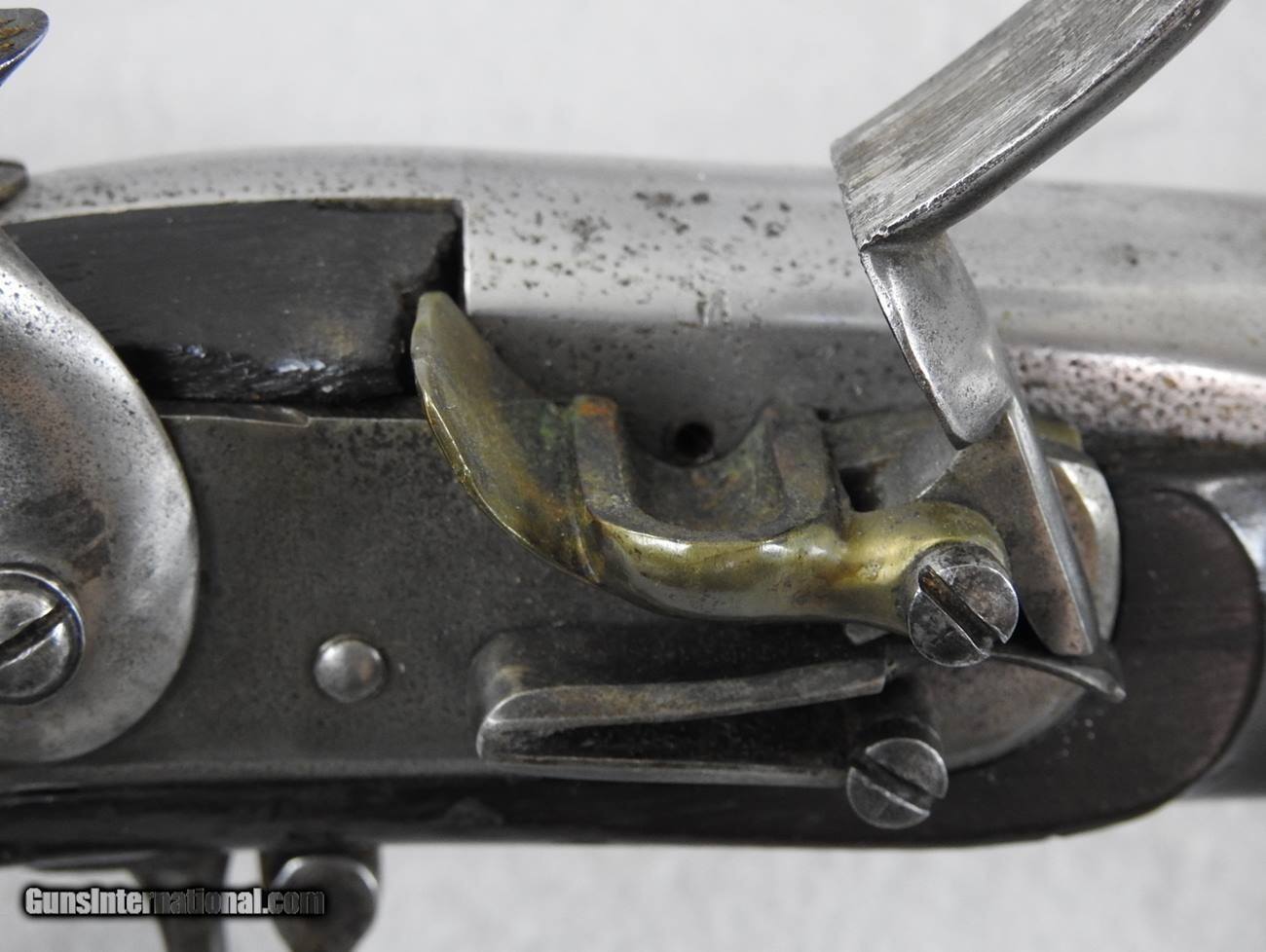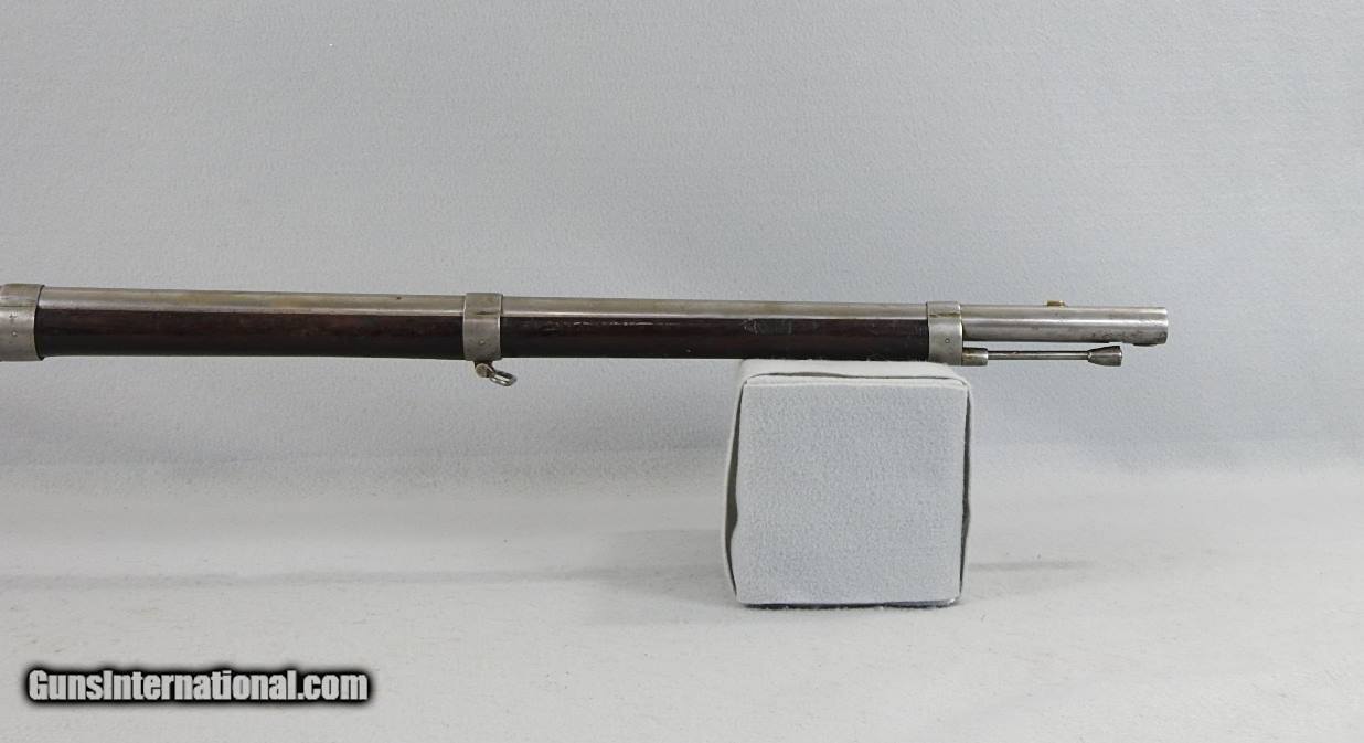Description: Chicopee Falls Co. made 100 muzzle loading flintlock rifles for Wm. Jenks 1838-1839. The breech is marked J.H. for James Harris Armory Sub-Inspector and has the P barrel proof mark. On the left wood flat is J.H. in the Cartouche. The Cartouche at the rear of the Comb almost to the butt plate toe is M P L for Mann P. Lomax. The mechanical function is very good crisp and tight. The bore looks to be very good with decent rifling. This one appears to be original flintlock. There is a #3, one each of the barrel bands on the left side. The wood has dings and dents and has a repair on the right side between the first and second barrel band. There is a bayonet lug at the bottom of the muzzle end. These are very RARE rifles. I would consider trades for pre 1899 ANTIQUE PISTOLS and rifles on any of my items.. WHAT DO YOU HAVE TO TRADE? Ask about our 30-90 day lay-away program. We accept Bank Check, Money order, Personal checks or wire transfer. Antique: Yes Manufacturer: Chicopee Falls Co Model: Flintlock Rifle Price: $15,995.00 Contact Seller |