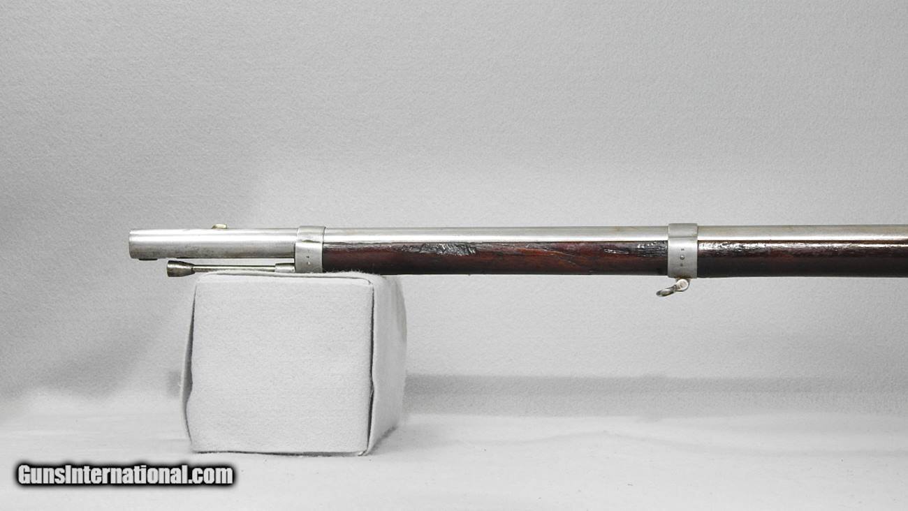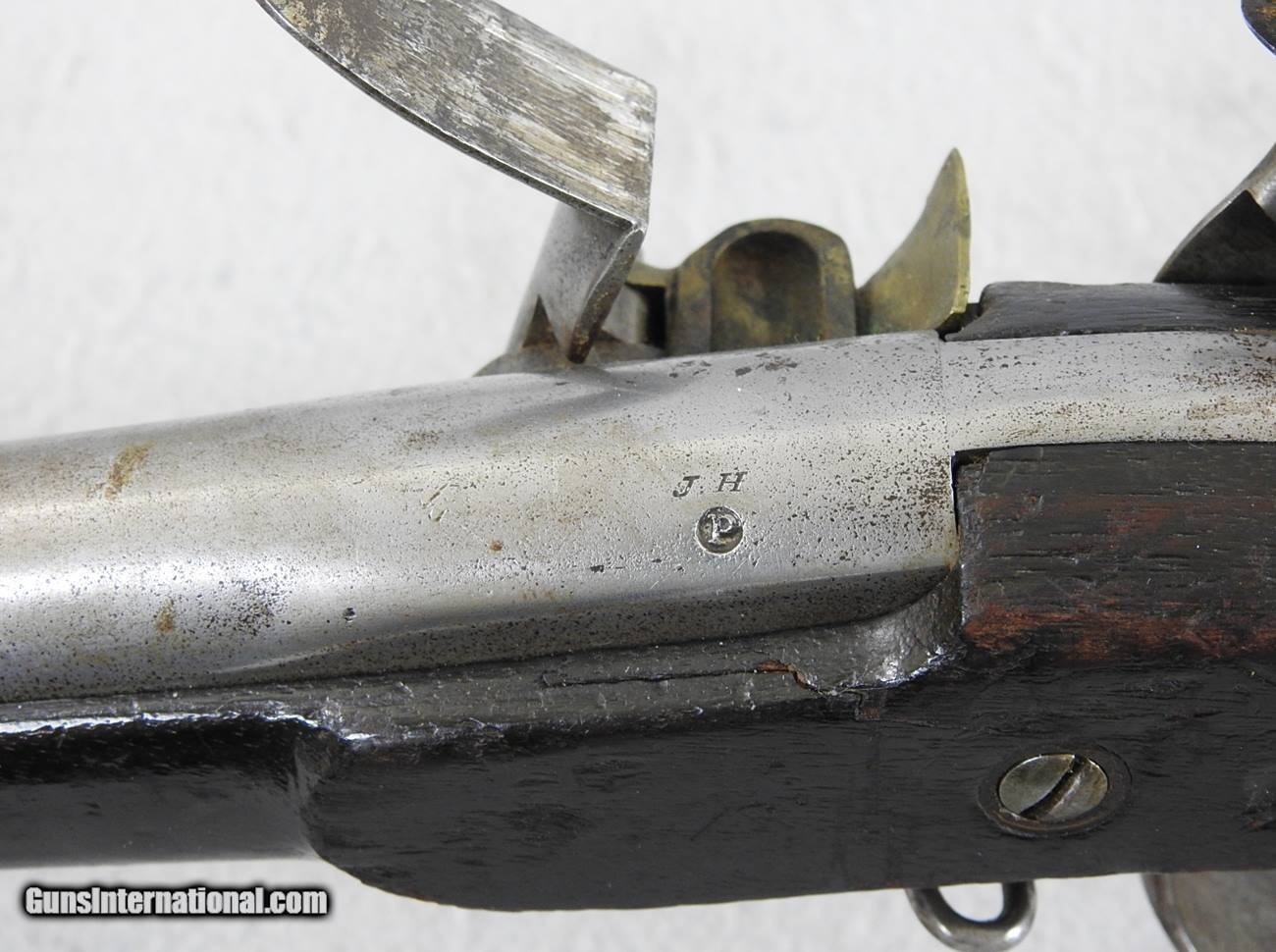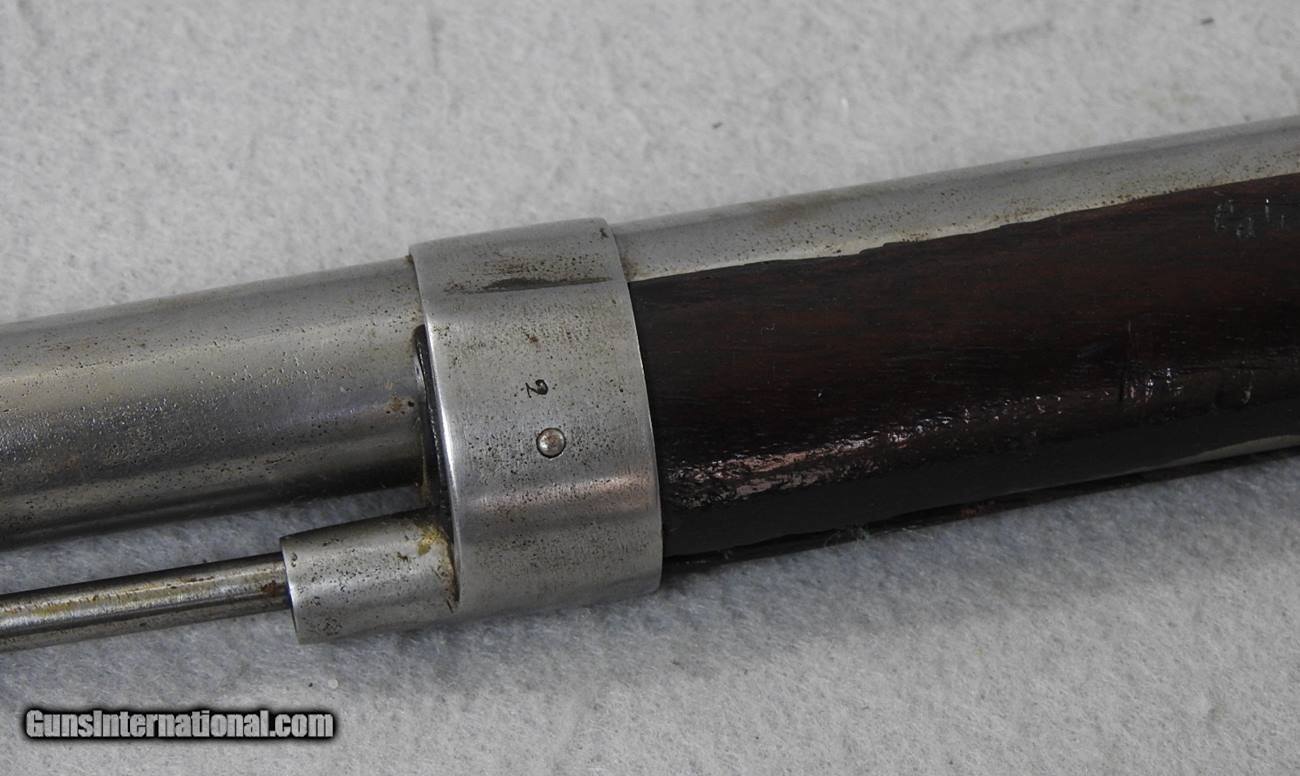 Description: Chicopee Falls Co. made 100 muzzle loading flintlock rifles for Wm. Jenks 1838-1839. The breech is marked J.H. for James Harris Armory Sub-Inspector and has the P barrel proof mark. On the left wood flat is J.H. in the Cartouche. The Cartouche at the rear of the Comb almost to the butt plate toe is M P L for Mann P. Lomax. The mechanical function is very good crisp and tight. The bore looks to be very good with decent rifling. This one appears to be original flintlock. There is a #3, one each of the barrel bands on the left side. The wood has dings and dents and has a repair on the right side between the first and second barrel band. There is a bayonet lug at the bottom of the muzzle end. These are very RARE rifles. I would consider trades for pre 1899 ANTIQUE PISTOLS and rifles on any of my items.. WHAT DO YOU HAVE TO TRADE? Ask about our 30-90 day lay-away program. We accept Bank Check, Money order, Personal checks or wire transfer. Antique: Yes Manufacturer: Chicopee Falls Co Model: Flintlock Rifle Price: $15,995.00 Contact Seller |