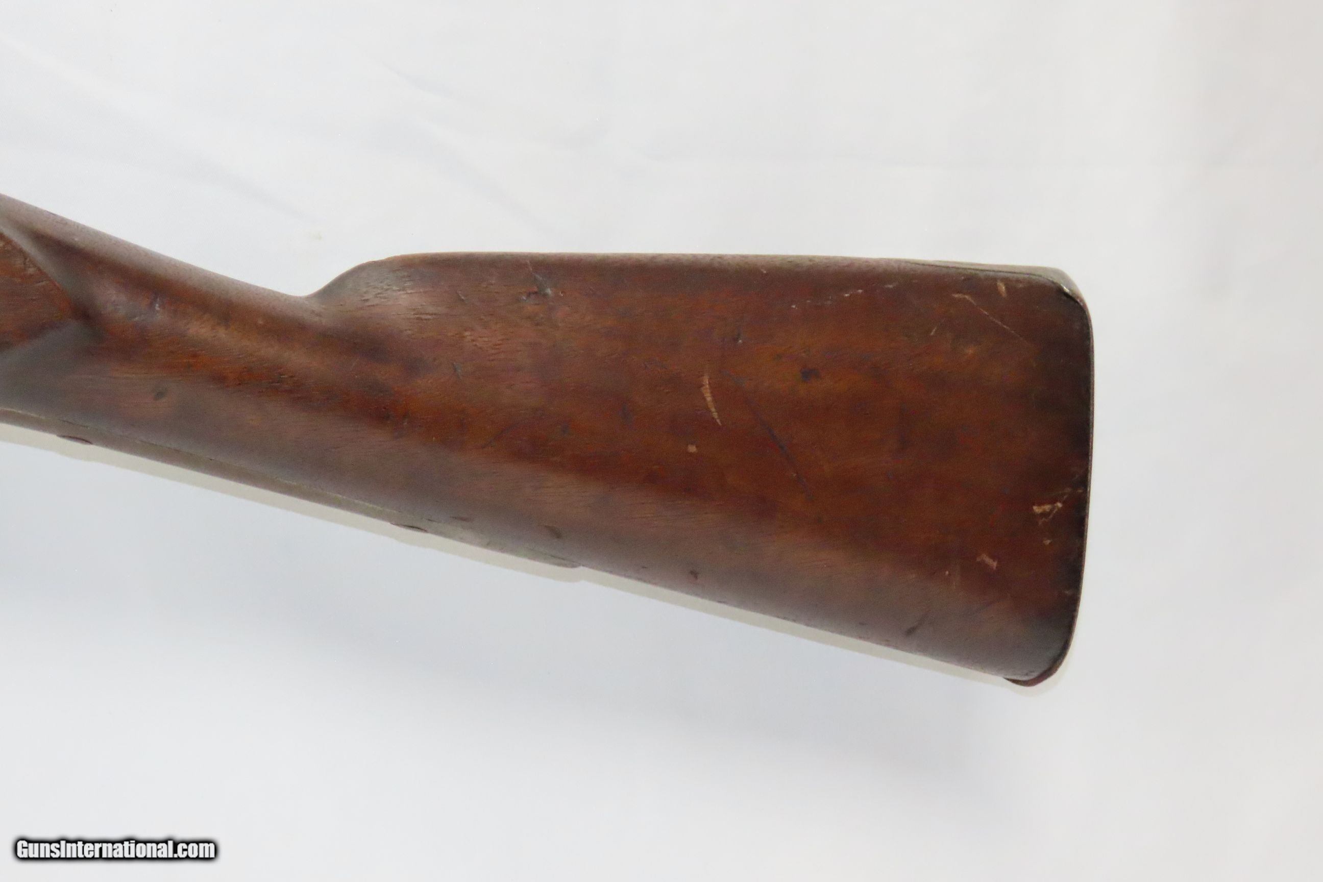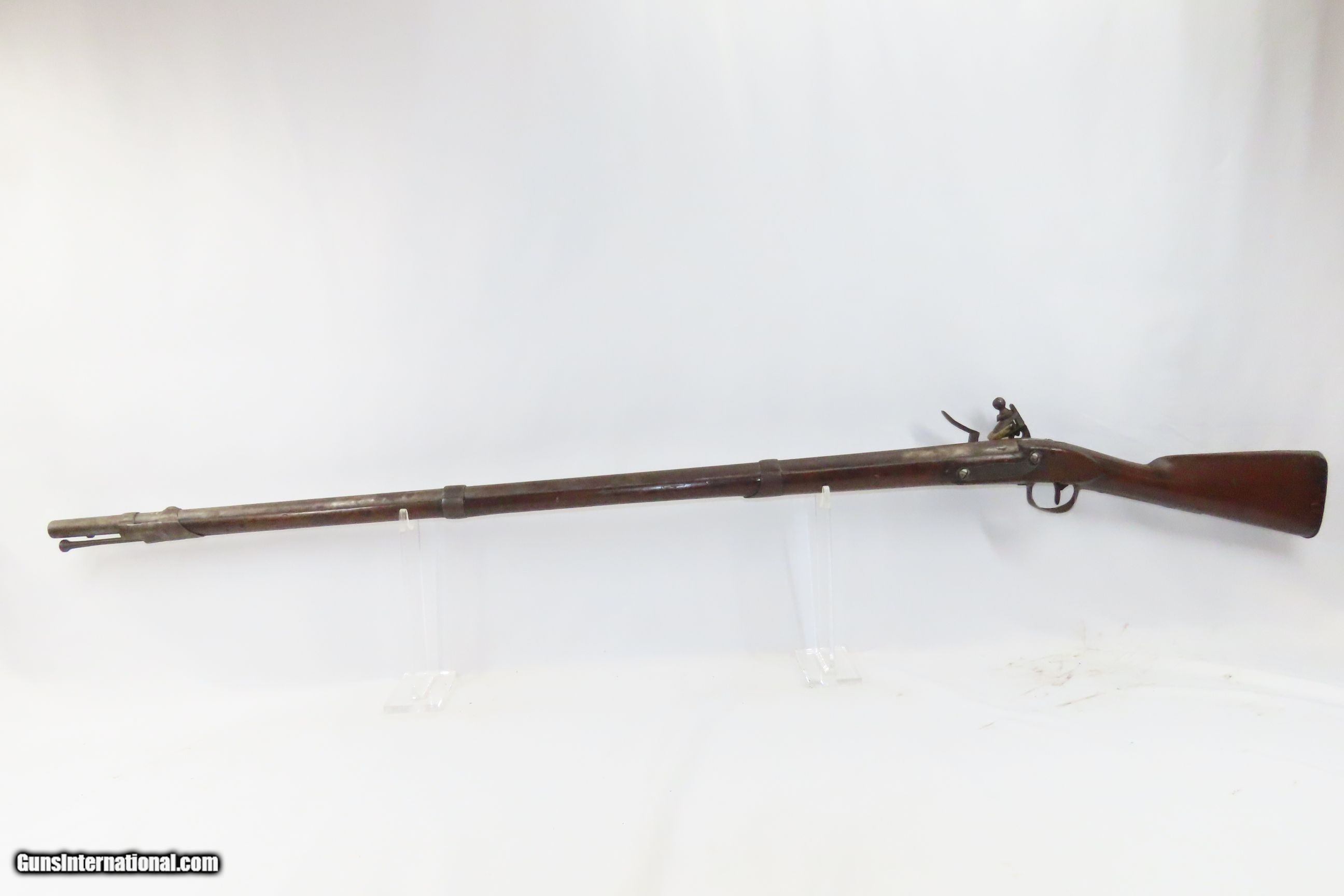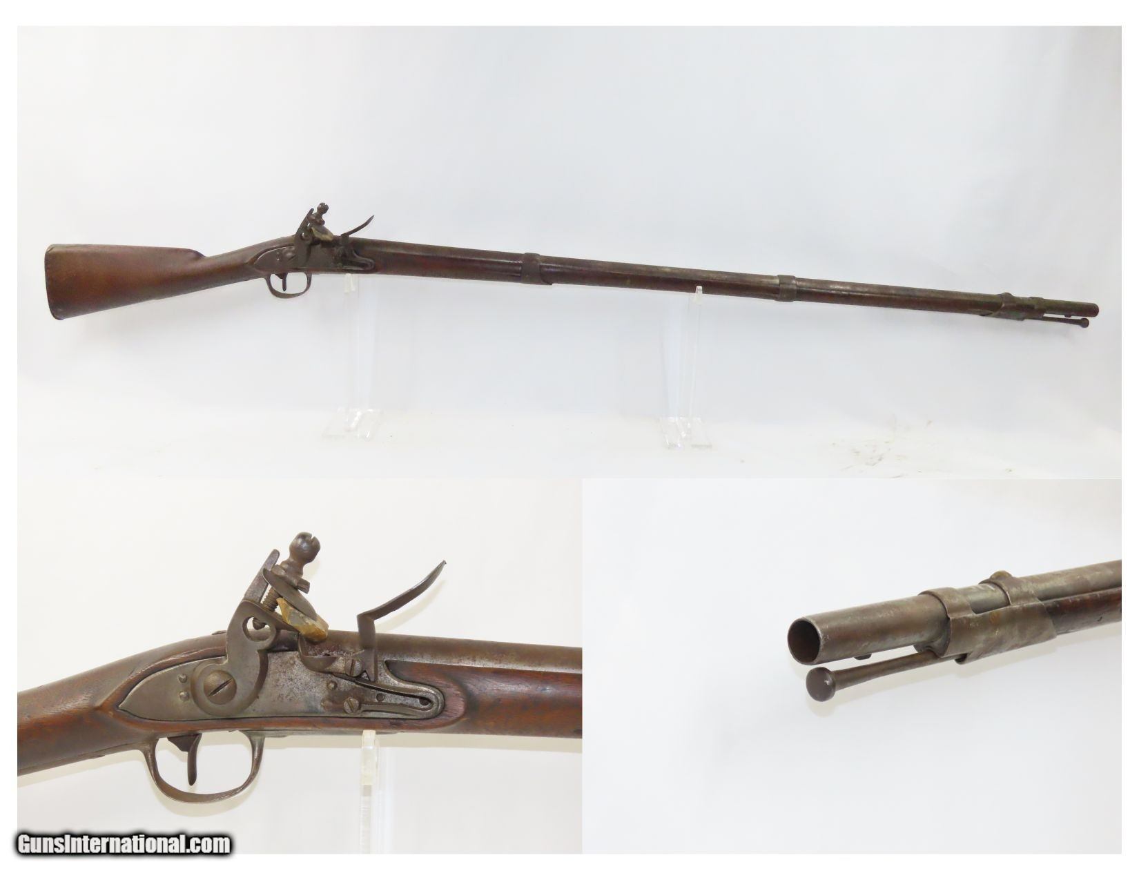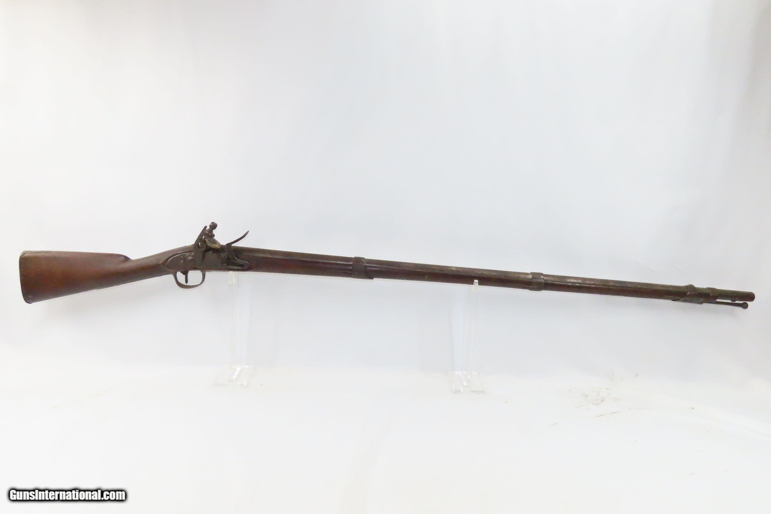 Description: Marked XIII COLONIAL Era Antique French CHARLEVILLE Pattern FLINTLOCK Musket Revolutionary War French Import Here we present an antique French Charleville Pattern Flintlock Musket, made circa the mid to late-1700s at one of the national armories in France. The Charleville smoothbore musket, garnering its name from the main armory in Charleville, France, was the standard issue flintlock musket for the French Empire throughout the mid-18th and early-19th centuries. The original musket was first delivered in 1717, and over the next several decades, saw many revisions and improvements, making them a lighter, better fighting musket. With training, a single soldier could fire off between two and three rounds per minute. It was originally chambered for a .69 lead musket ball, as compared to the British “Brown Bess”, which chambered a .75 ball. Its effective range was really quite short by modern standards. That said, battles during the 18th and early 19th century were very closely fought and usually settled with the bayonet. The Charleville musket served in many conflicts, including the French Revolution, the Napoleonic Wars, the American Revolution, and the War of 1812. In the United States, the Charleville is perhaps most famous for its use against the British colonists during the French and Indian War—part of the Seven Years War—and then in the colonists’ hands against Britain during the American Revolutionary War. In fact, over 100,000 Charleville muskets were purchased by the American Colonies, making this one of the primary weapons in the conflict. The Charleville was highly desired and said to have out-performed the British Brown Bess. The musket had such an impact on the Americans that their first domestically made muskets were heavily patterned on the Charleville. The overall condition is good. Brown patina throughout. The action is excellent. Original flintlock. The bore is smooth and dim. The stock shows use. There is a 6 inch crack between the lock and rear most barrel band and another split along the grain between the rear and second barrel band. Otherwise, solid throughout. Own the original! This is a legitimate antique and not a reproduction. Barrel is 44-1/4 inches. Caliber: .69 Flintlock Overall condition as seen in photos. Very Fast. Very Safe. FREE SHIPPING WORLDWIDE. Delivered directly to your door by express mail! Guaranteed AUTHENTIC & Includes CERTIFICATE OF AUTHENTICITY. ancestryguns $3800 #230613 SOLD Antique: Yes |