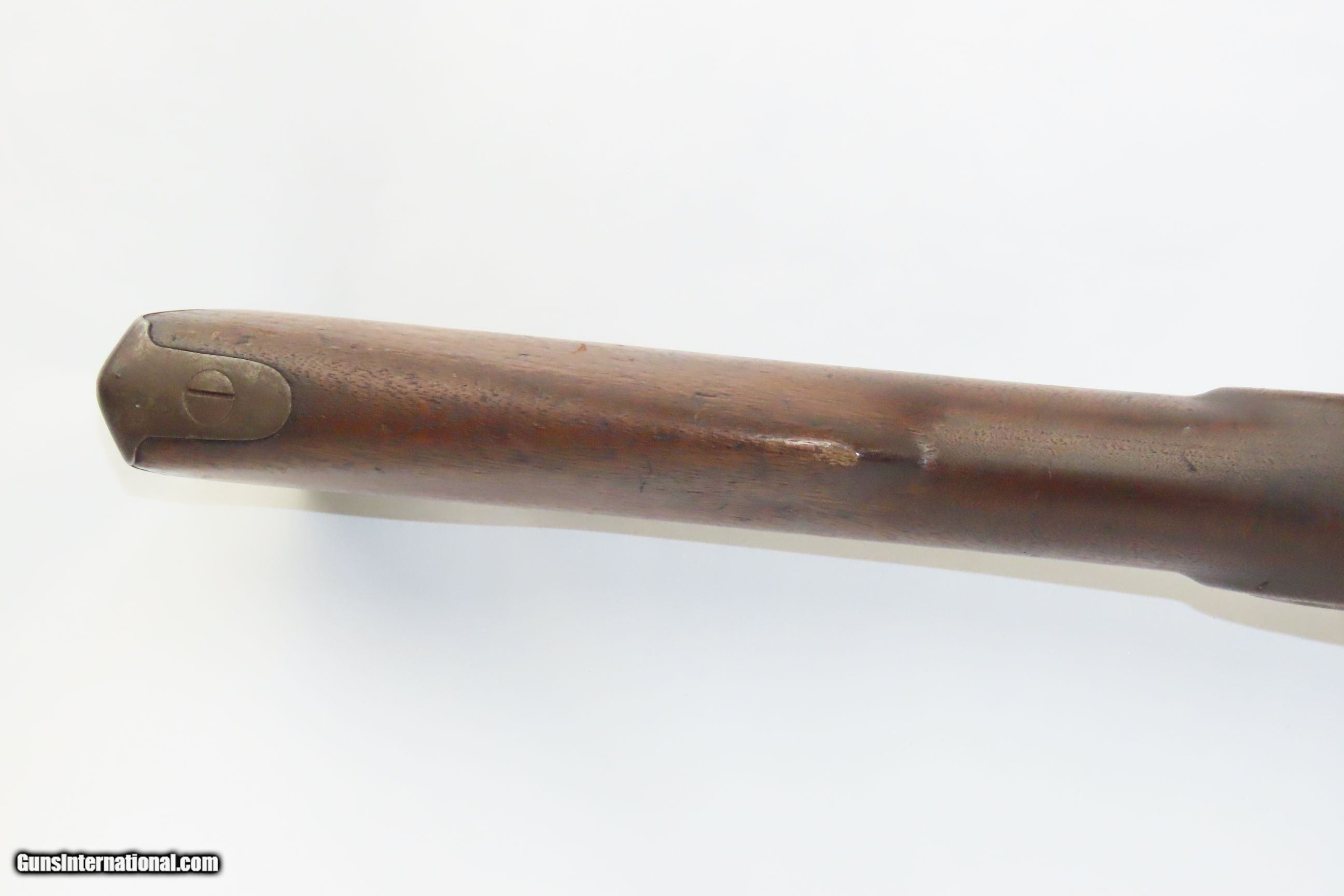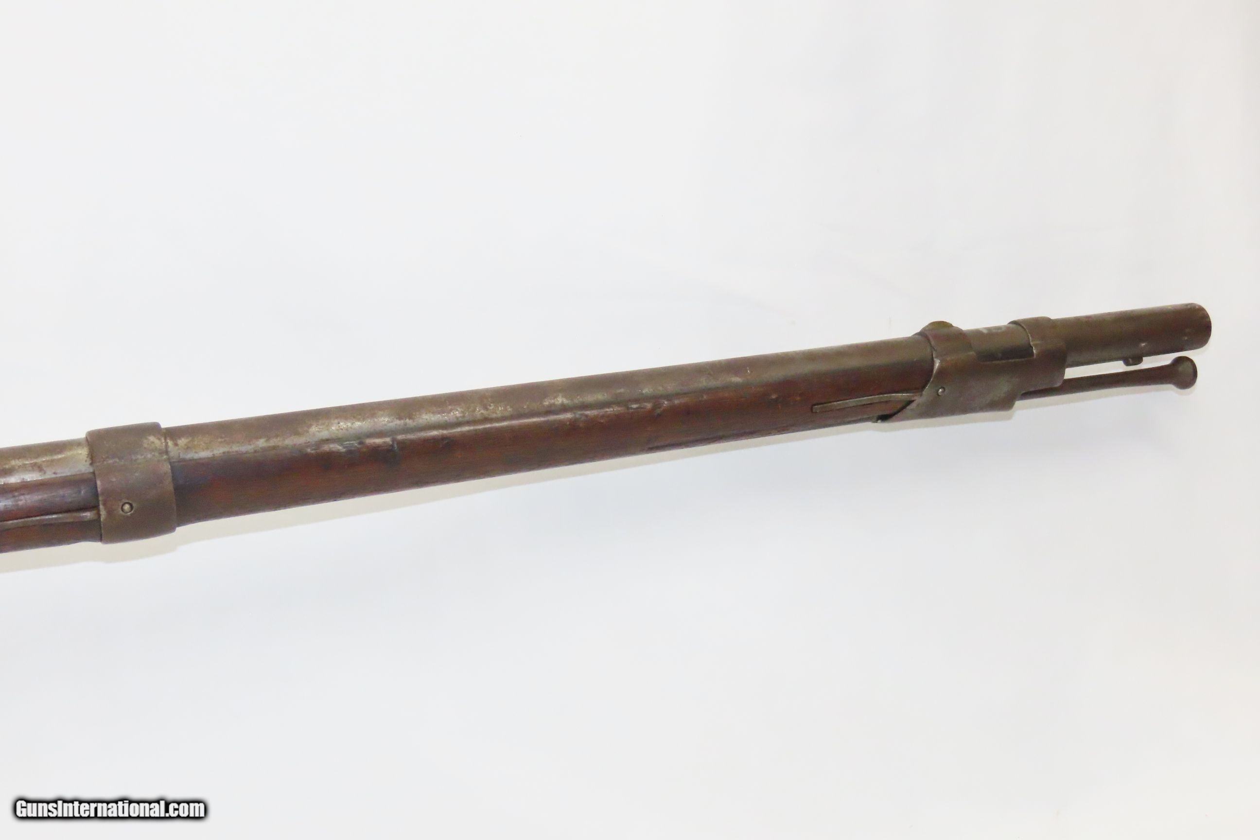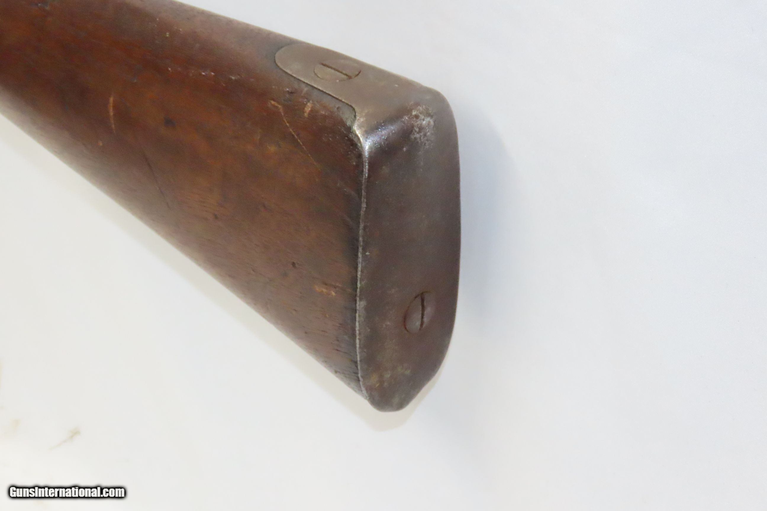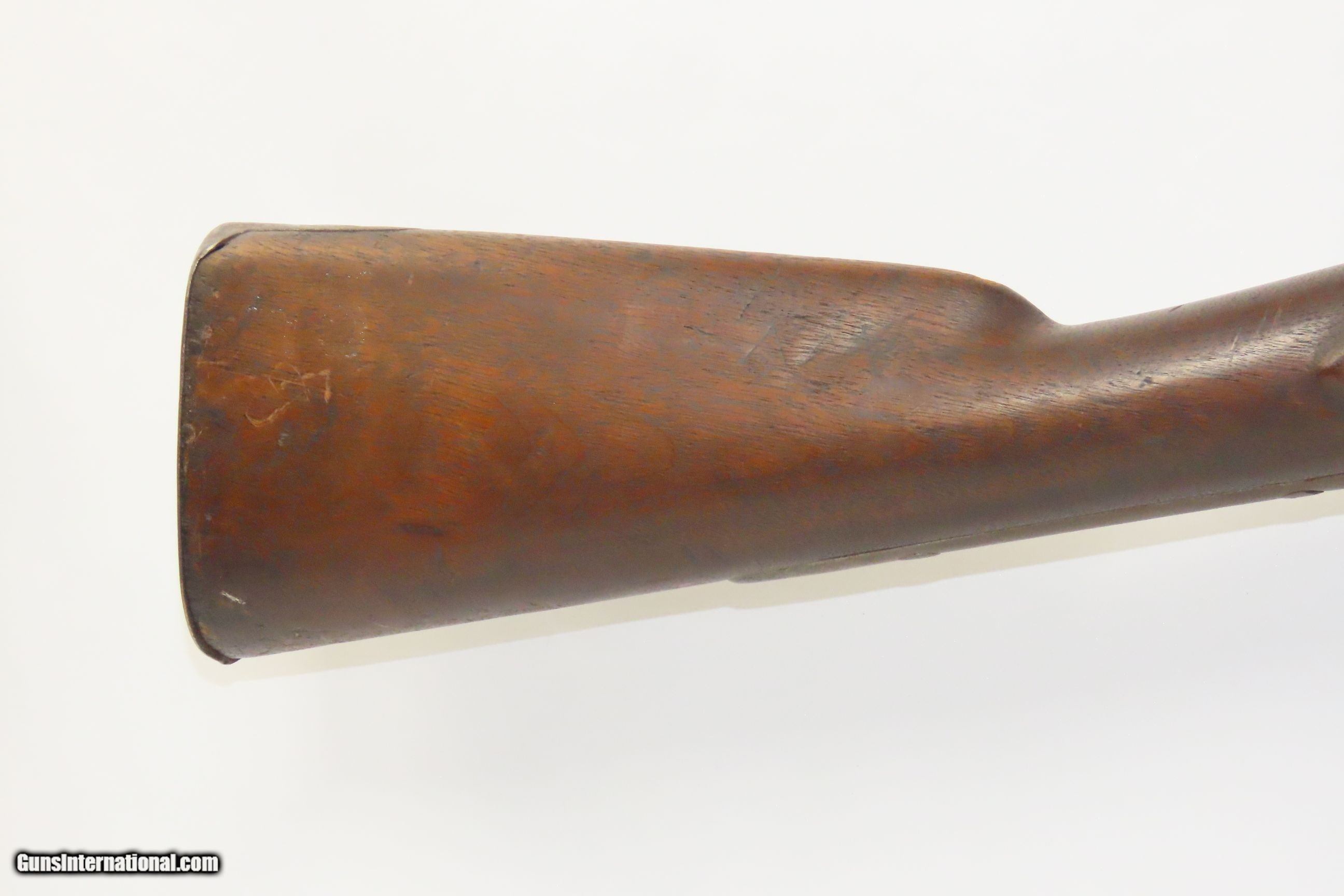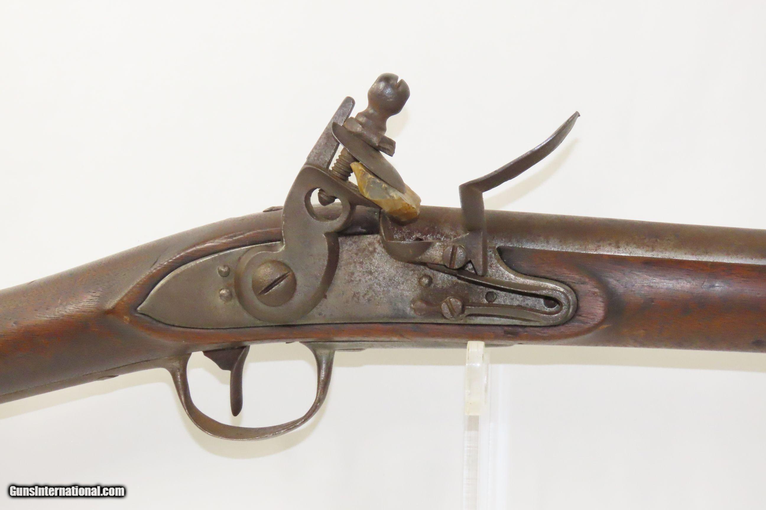 Description: Marked XIII COLONIAL Era Antique French CHARLEVILLE Pattern FLINTLOCK Musket Revolutionary War French Import Here we present an antique French Charleville Pattern Flintlock Musket, made circa the mid to late-1700s at one of the national armories in France. The Charleville smoothbore musket, garnering its name from the main armory in Charleville, France, was the standard issue flintlock musket for the French Empire throughout the mid-18th and early-19th centuries. The original musket was first delivered in 1717, and over the next several decades, saw many revisions and improvements, making them a lighter, better fighting musket. With training, a single soldier could fire off between two and three rounds per minute. It was originally chambered for a .69 lead musket ball, as compared to the British “Brown Bess”, which chambered a .75 ball. Its effective range was really quite short by modern standards. That said, battles during the 18th and early 19th century were very closely fought and usually settled with the bayonet. The Charleville musket served in many conflicts, including the French Revolution, the Napoleonic Wars, the American Revolution, and the War of 1812. In the United States, the Charleville is perhaps most famous for its use against the British colonists during the French and Indian War—part of the Seven Years War—and then in the colonists’ hands against Britain during the American Revolutionary War. In fact, over 100,000 Charleville muskets were purchased by the American Colonies, making this one of the primary weapons in the conflict. The Charleville was highly desired and said to have out-performed the British Brown Bess. The musket had such an impact on the Americans that their first domestically made muskets were heavily patterned on the Charleville. The overall condition is good. Brown patina throughout. The action is excellent. Original flintlock. The bore is smooth and dim. The stock shows use. There is a 6 inch crack between the lock and rear most barrel band and another split along the grain between the rear and second barrel band. Otherwise, solid throughout. Own the original! This is a legitimate antique and not a reproduction. Barrel is 44-1/4 inches. Caliber: .69 Flintlock Overall condition as seen in photos. Very Fast. Very Safe. FREE SHIPPING WORLDWIDE. Delivered directly to your door by express mail! Guaranteed AUTHENTIC & Includes CERTIFICATE OF AUTHENTICITY. ancestryguns $3800 #230613 SOLD Antique: Yes |