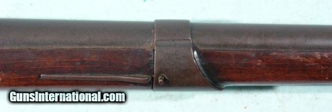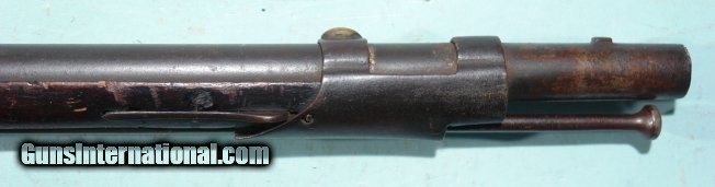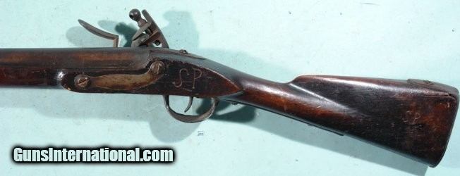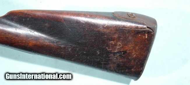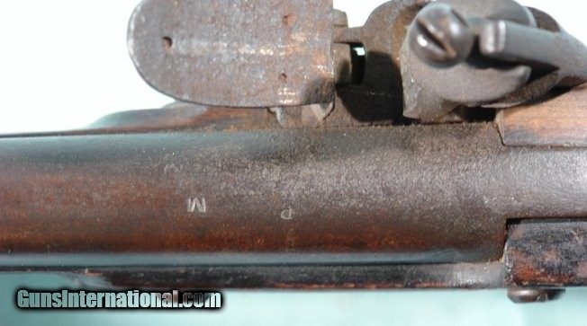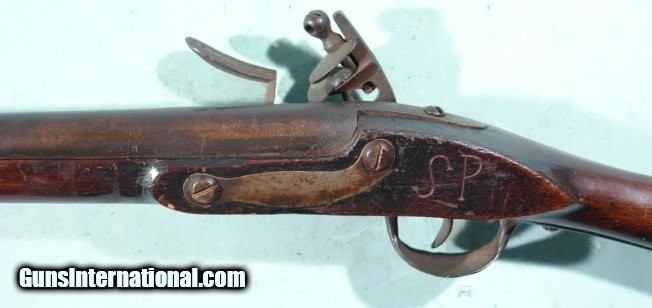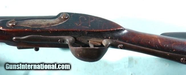 Description: MARYLAND CONTRACT U.S. 1797 CONTRACT FLINTLOCK WAR OF 1812 MUSKET. 43” smoothbore .69 cal. barrel stamped at the top breech with a “P” proof and “M” for the State of Maryland. Untouched and fine. 1005 original and complete. Made without provision for sling swivels and may be a ships musket. Initials “SP” carved on the left side of the stock opposite the lock and on the butt. Maker’s name stamped very faintly on the lock forward of the hammer but is illegible. May be the stamp of Abraham and William Henry who made a lock identical to this one. See Reilly p.67 fig. 159. There are also remnants of lettering on the plate that suggest this as well. The Henry firm of Nazareth, Pa. were contractors to Maryland at the time. Rare and extra nice. SOLD Antique: Yes |