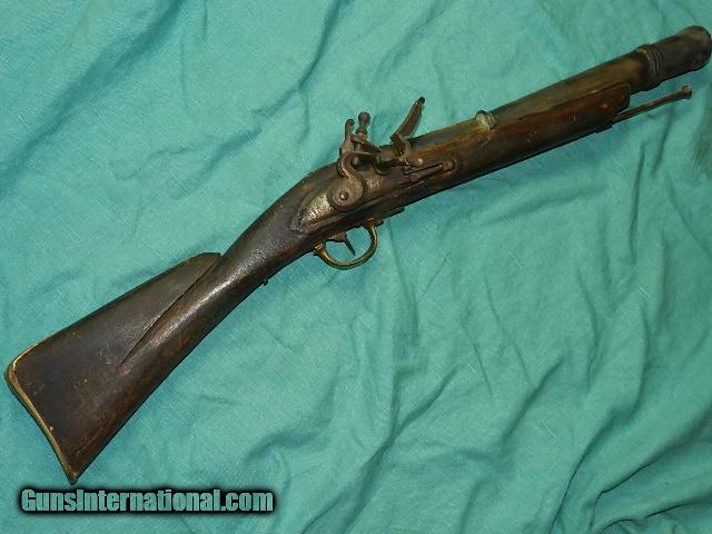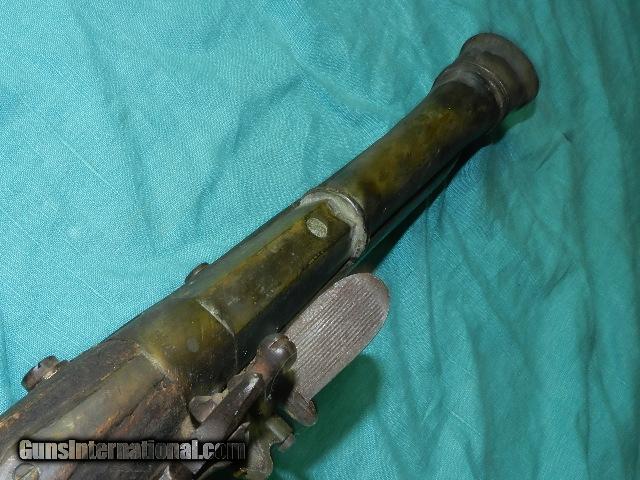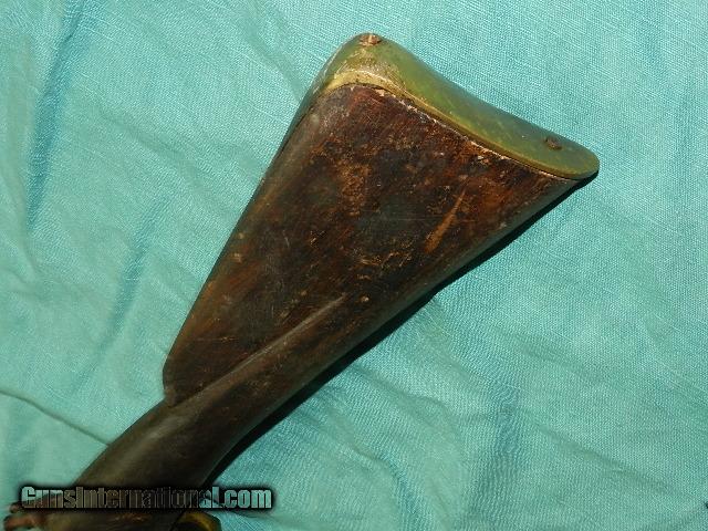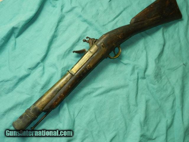 Description: A working flintlock heavy brass barrel flintlock blunderbuss measuring about 28" long with a 14 1/2" long heavy brass barrel. Not sure what to make of this gun. the hardwood has age patina, and some of the workmanship is crude, with a brass butt-plate, and trigger guard. The lock works okay, and the mainspring is a little weak.Inside of the bore is rough, and I'm not sure this was a firing gun, or a reproduction. Barrel may have been cast looking at the inside, so I'm selling it as a non shooter. The lock-plate has markings of: T. FOX, LONDON, and has crown with a V and date of 1710, and this looks like it was cast into the lock-plate Comes with an iron ram-rod, and would make a great display gun but not for firing! We don’t have asite .I prefer money orders or a check. Item ships when funds come in. If you can only pay with a card let me know. I’m sorry I don’t list my phone number, did that for 30 days, never again.. I can’t talk on the phone all day…who will ship the guns? I’m just one person, and it’s very bust here! I do a brisk volume! I hope you like my wide selection of unusual guns, knives and gun parts. Shipping price determined by zip code. I try to keep the prices affordable, which means I make less money than most dealers. You won’t get altitude sickness with my prices! I consistently have the best selection of older guns If you BUY IT NOW you must still contact us for details buy it now doesn't end the sale, it just sends an email telling us you want to buy this gun. A phone call won’t secure a sale! Not home many times, the first buyer by email buys the gun !Thissite doesnot close down a sale when you do a BUY IT NOW like Ebay!I can get six buy it nows in an hour, first buyer to email gets the guns, others are in second place! Best to send another email . Sometimes not home to get calls. Some guns are required shipment to a gun dealer near you for a transfer to you when it arrives. With the widest selection of older guns at great prices, We don’t have a store, and sell on the internet only. SOLD Antique: Yes |