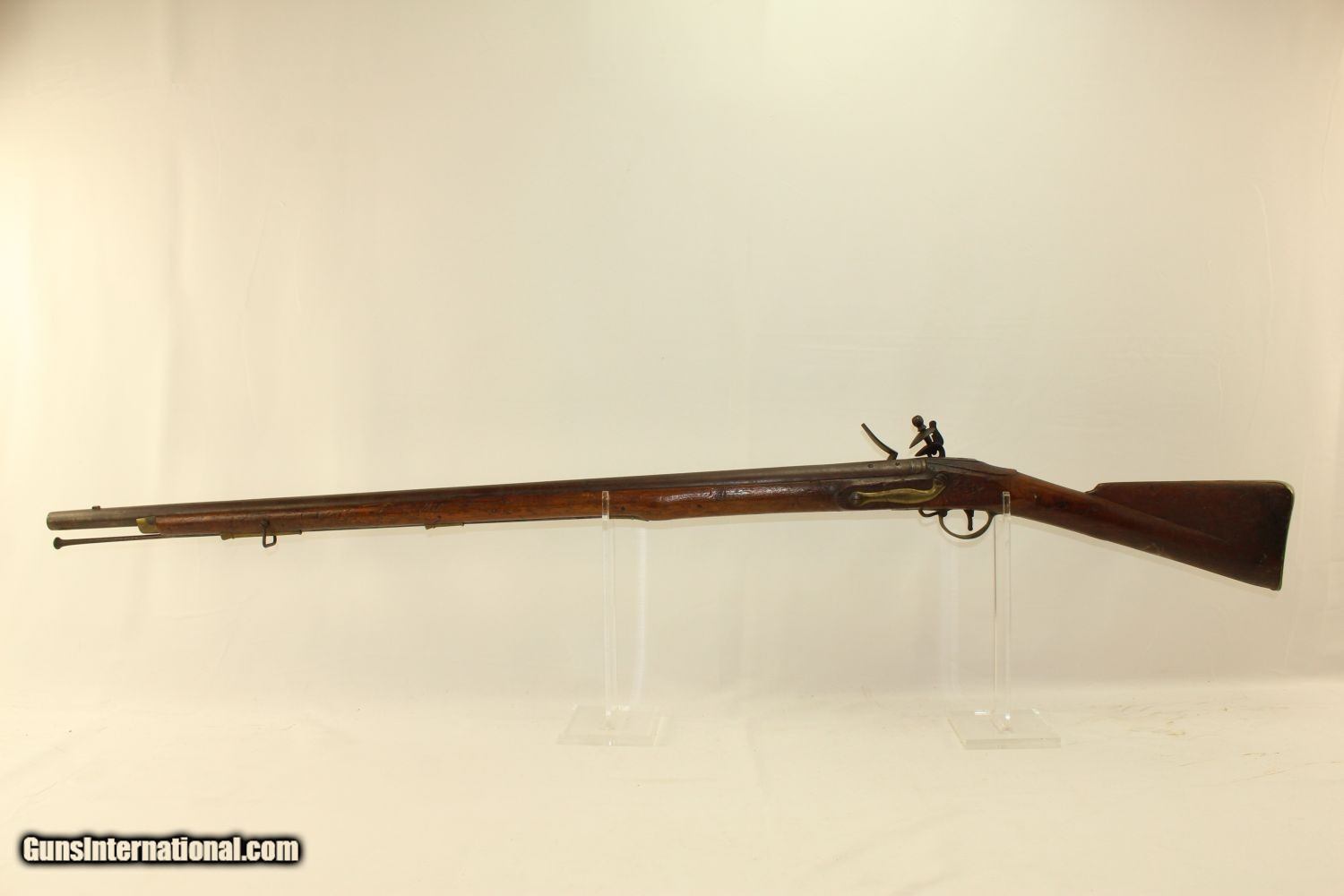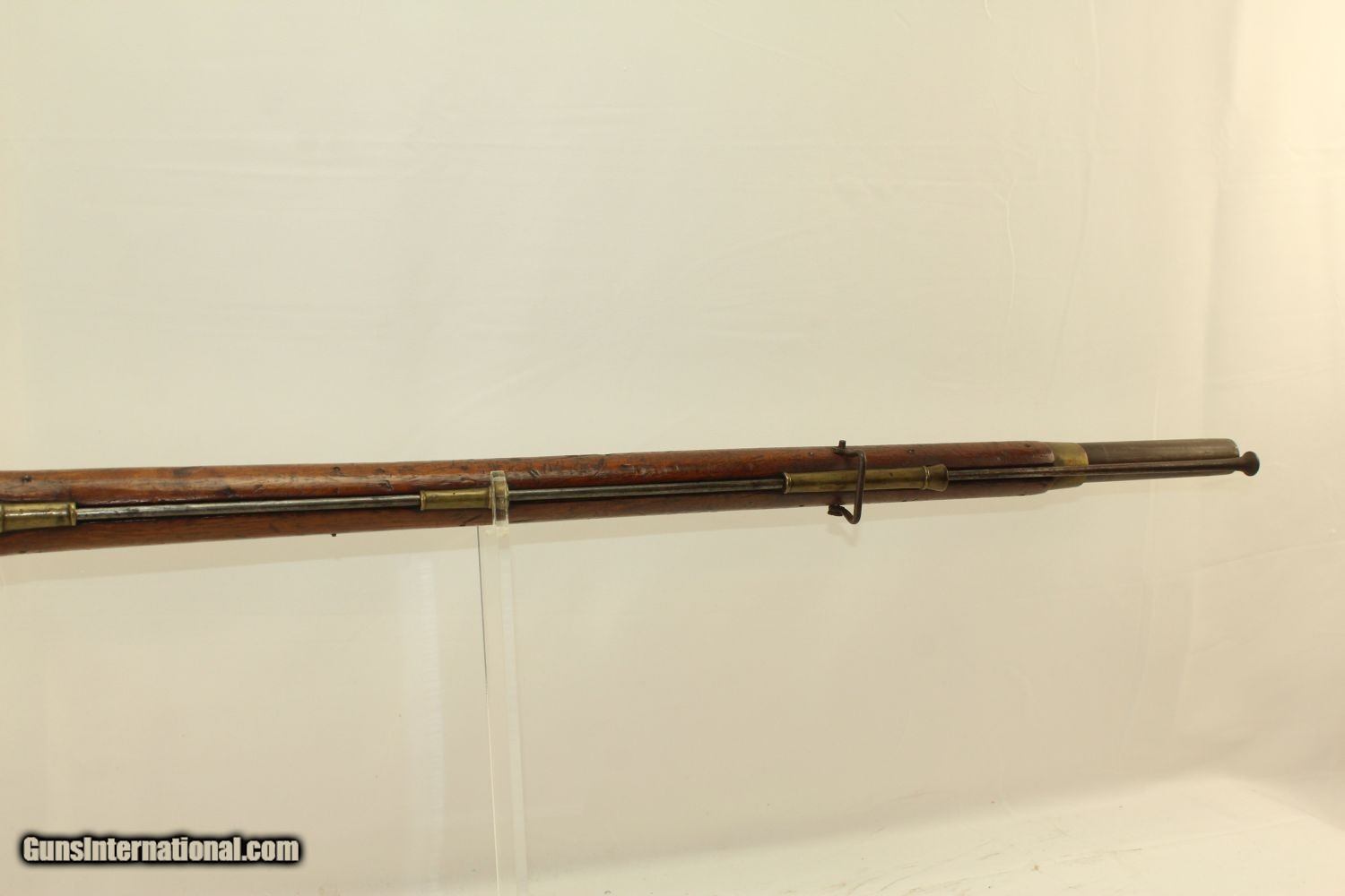 Description: Ramsay Sutherland BROWN BESS FLINTLOCK Musket 3rd Pattern Made Circa 1820 for the New Brunswick Militia Here we present an antique Ramsay Sutherland 3rd Pattern Brown Bess Flintlock Musket, made in Birmingham circa the 1820s for the New Brunswick Militia in British Canada. This example has the original 39-1/4" barrel with post 1813 Birmingham proofs. These militia muskets were ordered by the New Brunswick government council to replace the depleted Tower Muskets that were originally issued at the start of the New Brunswick Militia. The makers used a combination of used surplus and new made parts for these muskets. The original flintlock looks to have had the original tower and crown ground off and over stamped with London and the “RAMSAY SUTHERLAND” names. This piece retains its original sling swivels and overall remains complete and original. The overall condition is very good. Original finish and patina. The bore is smooth and dusty. The action is excellent. Here is a nice example of a scarce and desirable New Brunswick Militia Brown Bess Flintlock Musket! Own the original! This is a legitimate antique and not a reproduction. Barrel is 39-1/2 inches. Caliber: .75 Overall condition as seen in photos. Very Fast. Very Safe. FREE SHIPPING WORLDWIDE. Delivered directly to your door by express mail! Guaranteed AUTHENTIC & Includes CERTIFICATE OF AUTHENTICITY. ancestryguns $3750 #190280 SOLD Antique: Yes |