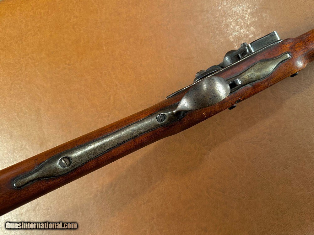 Description: Outstanding Revolutionary War American Assembled Committee of Safety Flintlock Militia Musket, .71 cal smoothbore, mfg. circa 1775/1776. This is a stunning original example of an American assembled Revolutionary War musket built in the pattern of a British Brown Bess utilizing both French and British components with an American Cherry wood stock. The gun's style, quality, and specifications point to it being one of those built early during the war under order of a patriot Committee of Safety organization to arm their local state militia units. Pinned barrel, probably French in origin, measures 44" long and is fitted with a bayonet lug and sighting notch cut into the tang. There is an illegible marking on the left side of the breech. Early 1770's French Charleville lock filed flat with older 1750's vintage cock and American forged top jaw. The touch hole remains original and unaltered. Buttplate, sideplate, and triggerguard are all 1760's vintage French Charleville parts. All of the iron components have a smooth worn dark mottled silvery/black patina. The four brass ramrod pipes are all taken from a 1750's/1760's vintage British Brown Bess which creates an interesting and unusual visual dynamic seeing both brass and iron fittings used on the same gun. Brown Bess style Cherry stock features a swell at the forearm, beavertail carving around the barrel tang, and round wrist which cuts far back below the comb. It was made without a nosecap or wrist escutcheon. The wood is in excellent condition overall showing rich color with a blackened patina forming within protected areas. One small old chip just ahead of the frizzen, a thin 1 ½" sliver missing along the right edge of the foreram at the muzzle, and a tight 3" crack on the left side of the forearm at the tip. The length of the forearm is all original without any splices or repair. While the old French triggerguard retains it's original sling swivel mount there is no provision made for a forward swivel in typical American fashion. Original forged iron rammer. The action is very firm and crisp with a strong mainspring and functions perfectly. Frizzen securely snaps shut and springs forward. This might just be the finest American musket we have had. The gun's wonderful architecture, originality, and condition would be very difficult to improve upon. A museum grade American Revolutionary War patriot musket ready for display! Jeremiah Johnson Trading sells antique arms manufactured prior to 1899 and muzzleloading blackpowder reproductions only. For the purpose of these conditions the term "antique arms" will also include muzzleloading blackpowder reproductions. Buyers must be 21 years of age or older and have no felony convictions to purchase antique arms. Antique arms do not require Federal licensing and may be shipped directly to the buyer with the following exceptions. No antique arms will be shipped to Washington D. C. or any of the five boroughs of New York City (or residents thereof). Some restrictions may apply to antique firearms shipped to California and will be noted in the item description if applicable. Any antique arm shipped to New Jersey or Ohio must ship to a licensed FFL holder, no exceptions. Any muzzleloading blackpowder reproduction rifle, shotgun, or handgun shipped to Illinois must ship to an FFL holder. Items containing antique ivory will not be sold or shipped to residents of California, Hawaii, Illinois, Nevada, New Hampshire, New Jersey, New York, Oregon, or Washington. Antique muzzleloaders and antiques which fire obsolete cartridges may be shipped internationally however it is the responsibility of the buyer to know and abide by their local laws and provide proof that the antique arm is legal to receive and own. Payment can be made by money order, banker's check, personal check, credit card (no additional fees), or bank wire. Please allow 7-10 business days for clearance on personal checks. If paying by credit card please call us directly to process your order. Items are professionally packed and shipped USPS Priority Mail with insurance coverage for the sale price and signature required for delivery. Items valued over $5,000.00 are shipped Registered Mail. Buyer pays actual shipping costs with no added charge for packing materials or handling. We describe items accurately and thoroughly. If an item has been misrepresented or significant defect overlooked you may return it for a full refund (minus return shipping costs) within 3 days of having received it. This timeframe begins once the package is delivered by the carrier. Buyer's remorse or concerns over issues noted in the description and/or pictures is not a valid excuse for return. Returned items must be received in the same condition as originally shipped - cleaning, disassembly, alteration, or damage of any kind will void inspection privileges. Occasionally a post-1898 firearm from my personal collection may be sold under this account and any such transaction is a personal sale in no way affiliated with Jeremiah Johnson Trading. Any such arm will be shipped to a licensed FFL or C&R holder in accordance with Federal law. All antique arms are sold as collector's items and are not warranted safe for shooting. Please consult a competent gunsmith prior to shooting any firearm. Antique: Yes Manufacturer: Colonial American Model: COS Musket Barrel Length: 44 Manufacture Date: Circa 1775/1776 Price: $8,950.00 Buy Now Contact Seller |