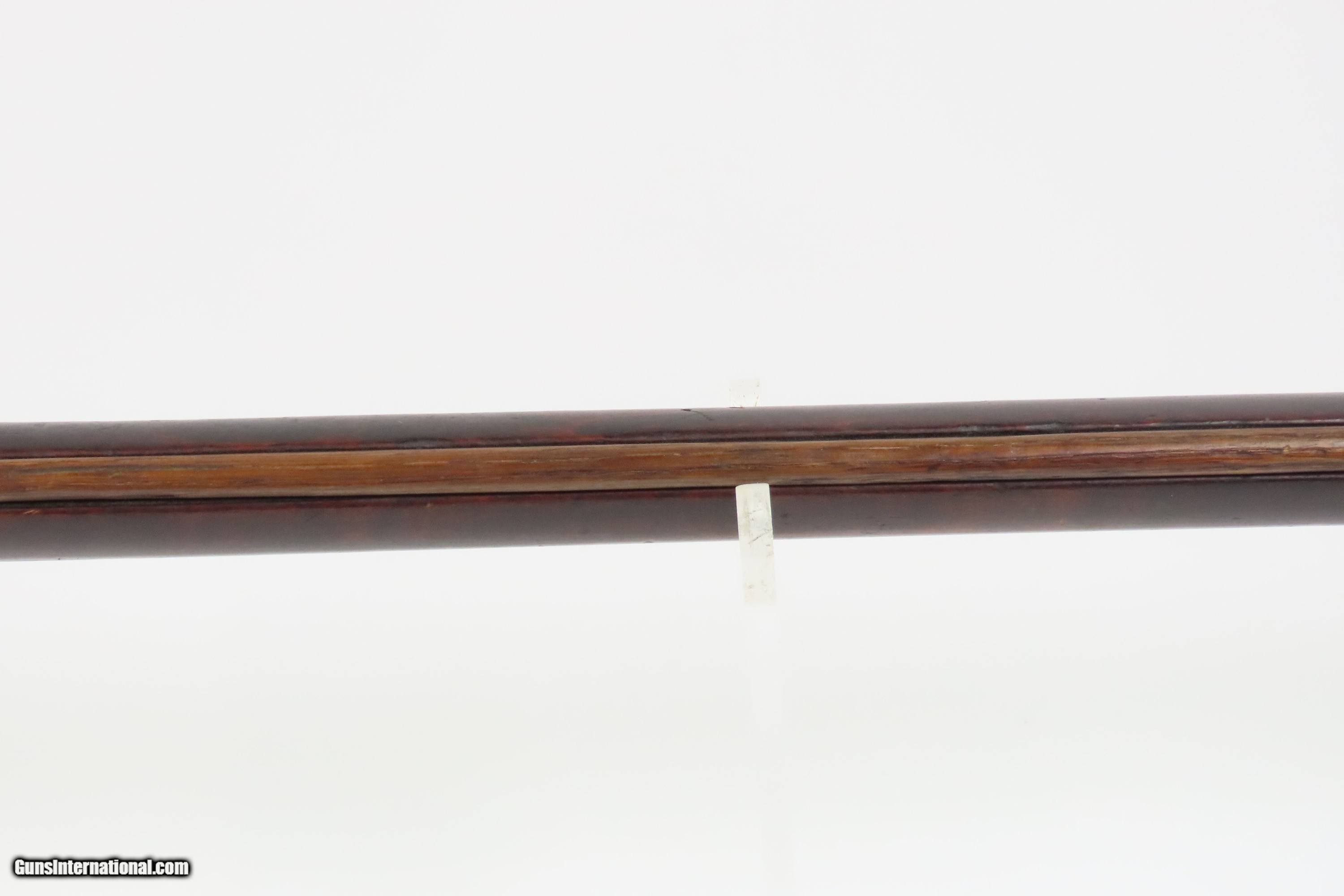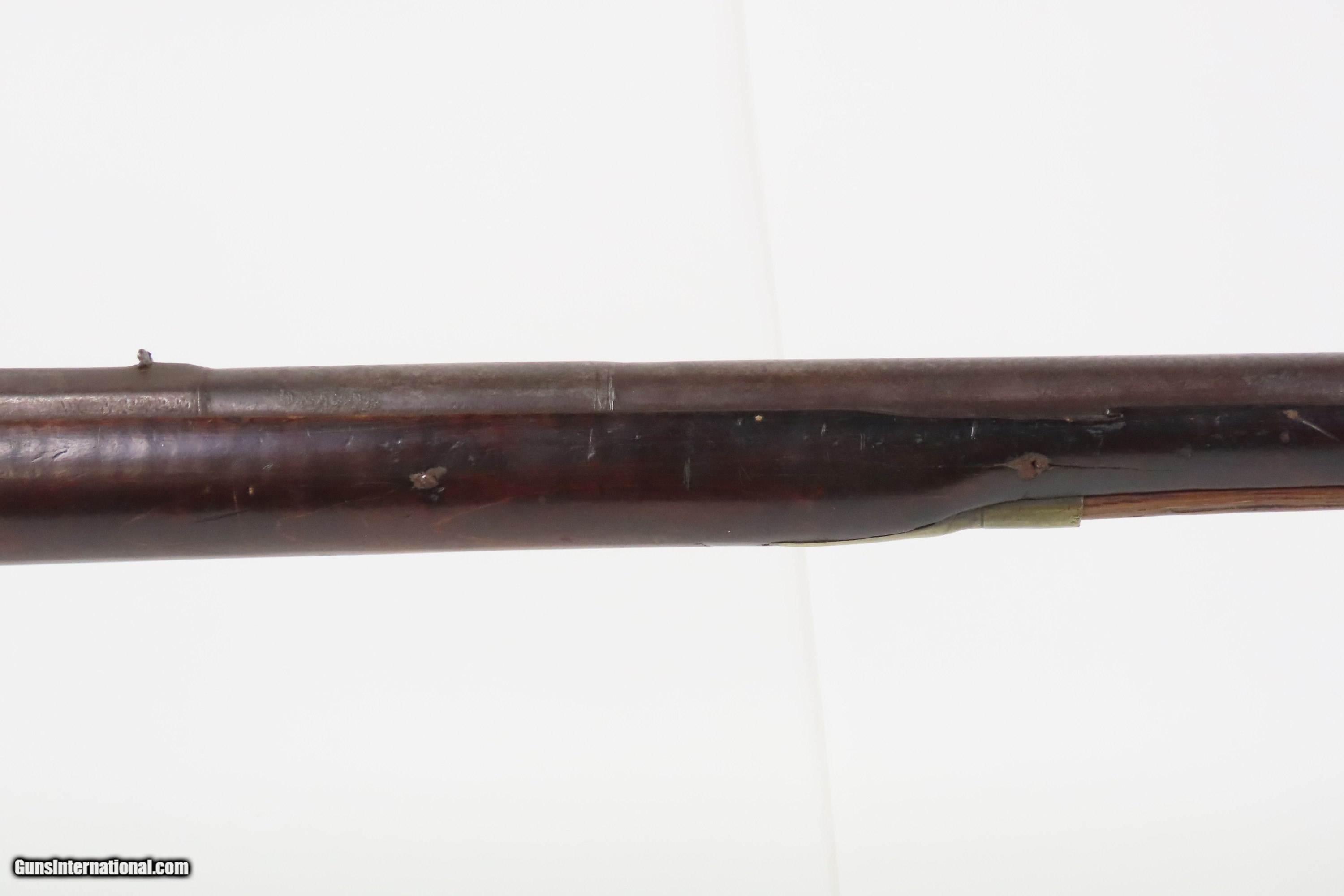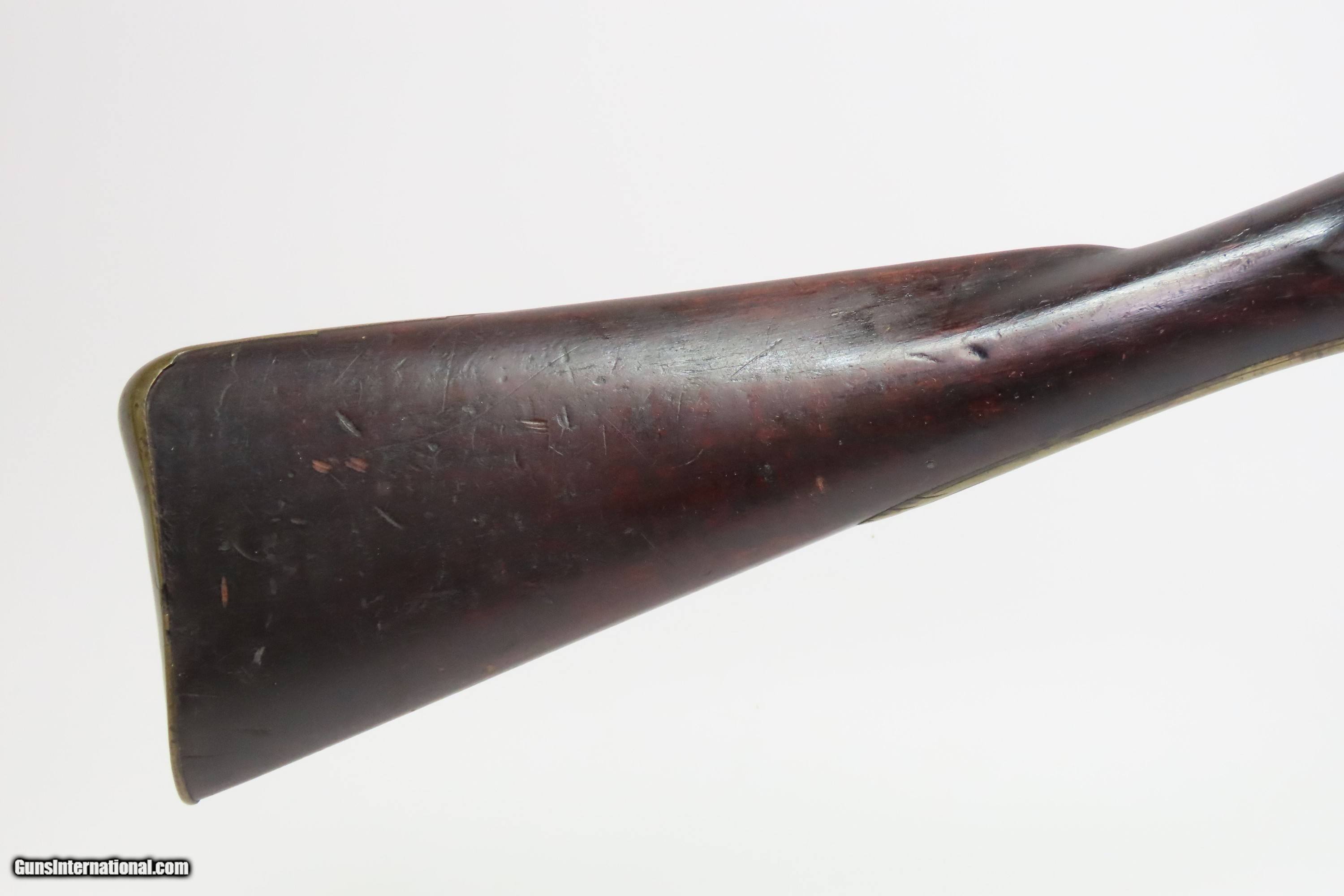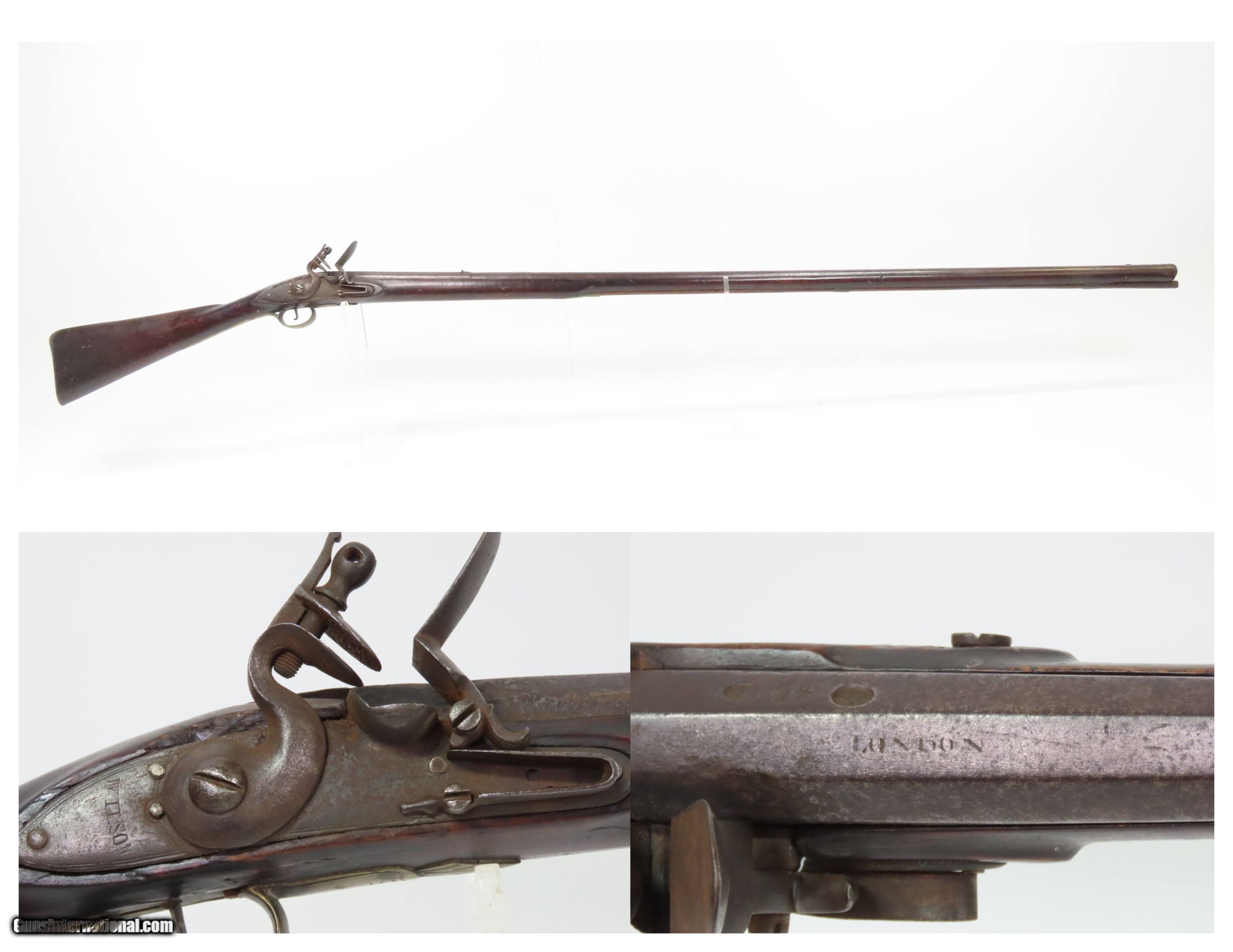 Description: REVOLUTIONARY WAR Era Antique RICHARD WILSON London FLINTLOCK Smooth Musket “WILSON” Marked Lock COLONIAL MILITIA Longarm Here we present an antique Revolutionary War Era Richard Wilson Flintlock Musket, made circa the late 1760s to the early 1770s in London, England. Richard Wilson was the first of a multigenerational family named and owned arms making company in the Minories. He was born to parents who were originally from the county of Westmorland and he was baptized in the church of St. Bottolph’s Aldgate in London in 1703. He was apprenticed to London gunmaker Thomas Green for 7 years. Upon the completion of his apprenticeship in 1725 he continued to work for Thomas and then Thomas’s wife Agnes when Thomas had passed away. They made guns on contract for the Hudson’s Bay Company as well as the Royal African Company. He took over this business from Agnes and gained The Honourable East India Company as a client in 1733. He appears to have been making guns for North America by about 1735, documents mentioning his arms by name noting their desirability. Colonies such as Georgia and South Carolina were ordering muskets and bayonets for their militias while merchants were ordering them for sale to their customers, the colonists as well as Native Americans. Richard would pass in 1766 but his son William and subsequently his grandson William II would continue the family name and business. Richard would also train Robert Barnett and it is speculated by DeWitt Bailey II, the author of an excellent article from which much of this information was gleaned, that Barnett would make up part of the Company (as in Wilson & Co.) along with Richard’s first apprentice, Robert Wilson, a relative. This piece has a long, smoothbore barrel which would have offered great versatility for the user, allowing him to fire a .67 caliber round ball for martial duties or for large game animals, shot for fowl and small game, or a combination called “buck and ball”. It has an “*RW” marked barrel, which is the maker mark for Richard Wilson with sunken oval pre-1813 London proofs, along with “LONDON” marked on the barrel. This musket would have likely been carried around by a militiaman, or even possibly an American Continental “Regular” during the American Revolutionary War. The overall condition is good. Deep brown original patina throughout. The stock is in good condition with repairs on the wrist and under the lock. Visible markings are legible. Strong action. The bore is dark and smooth. Barrel is 48 inches. Caliber: .67 Flintlock Overall condition as seen in photos. Very Fast. Very Safe. FREE SHIPPING WORLDWIDE. Delivered directly to your door by express mail! ancestryguns $2200 #250565 SOLD Antique: Yes |