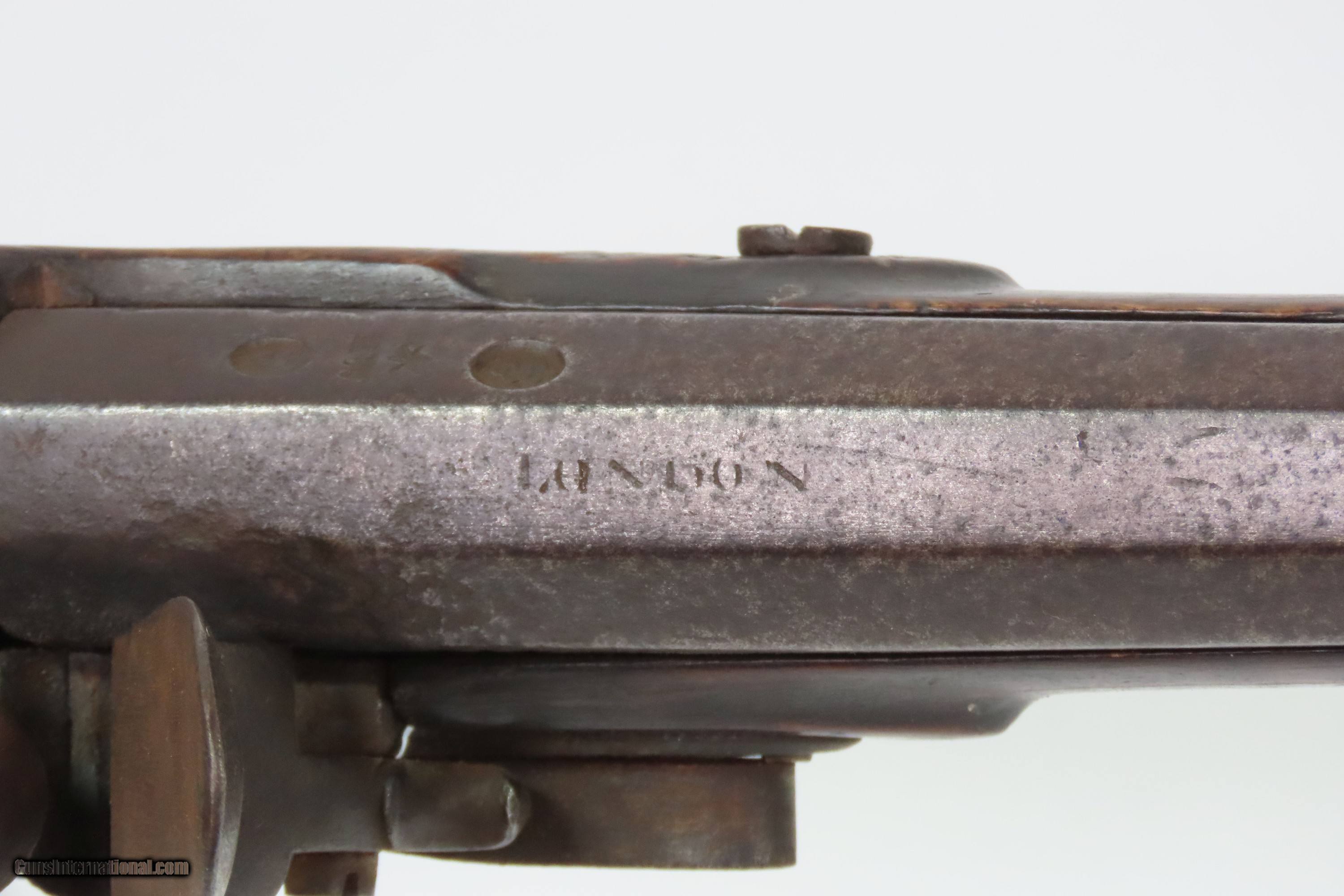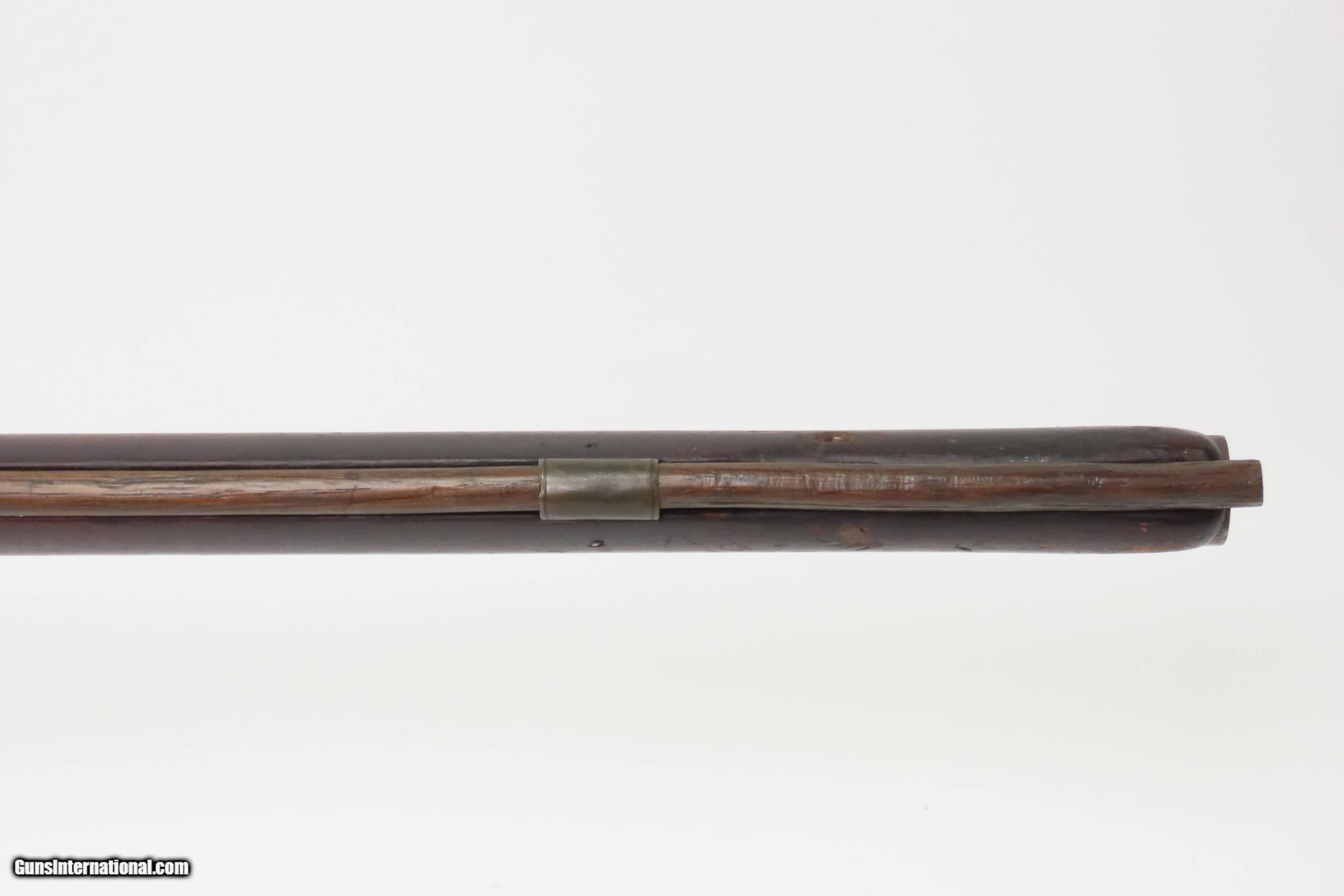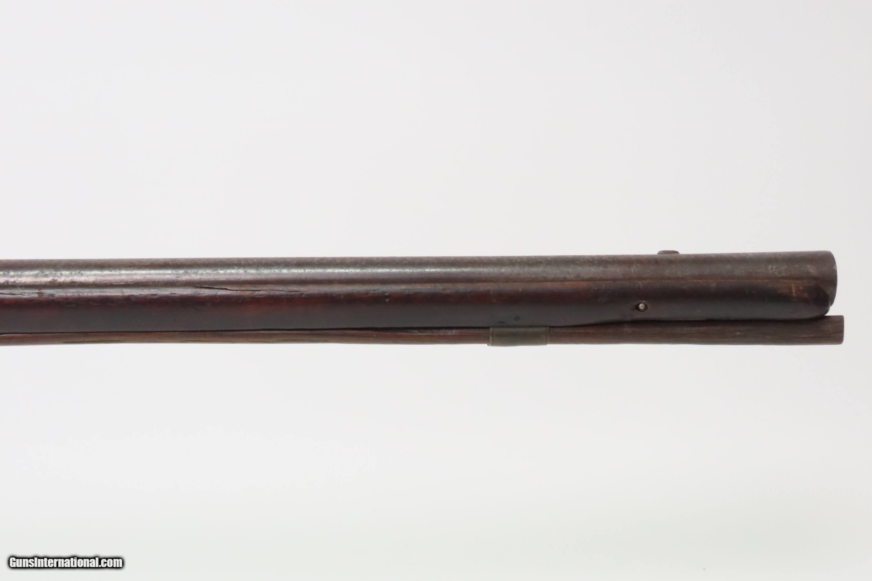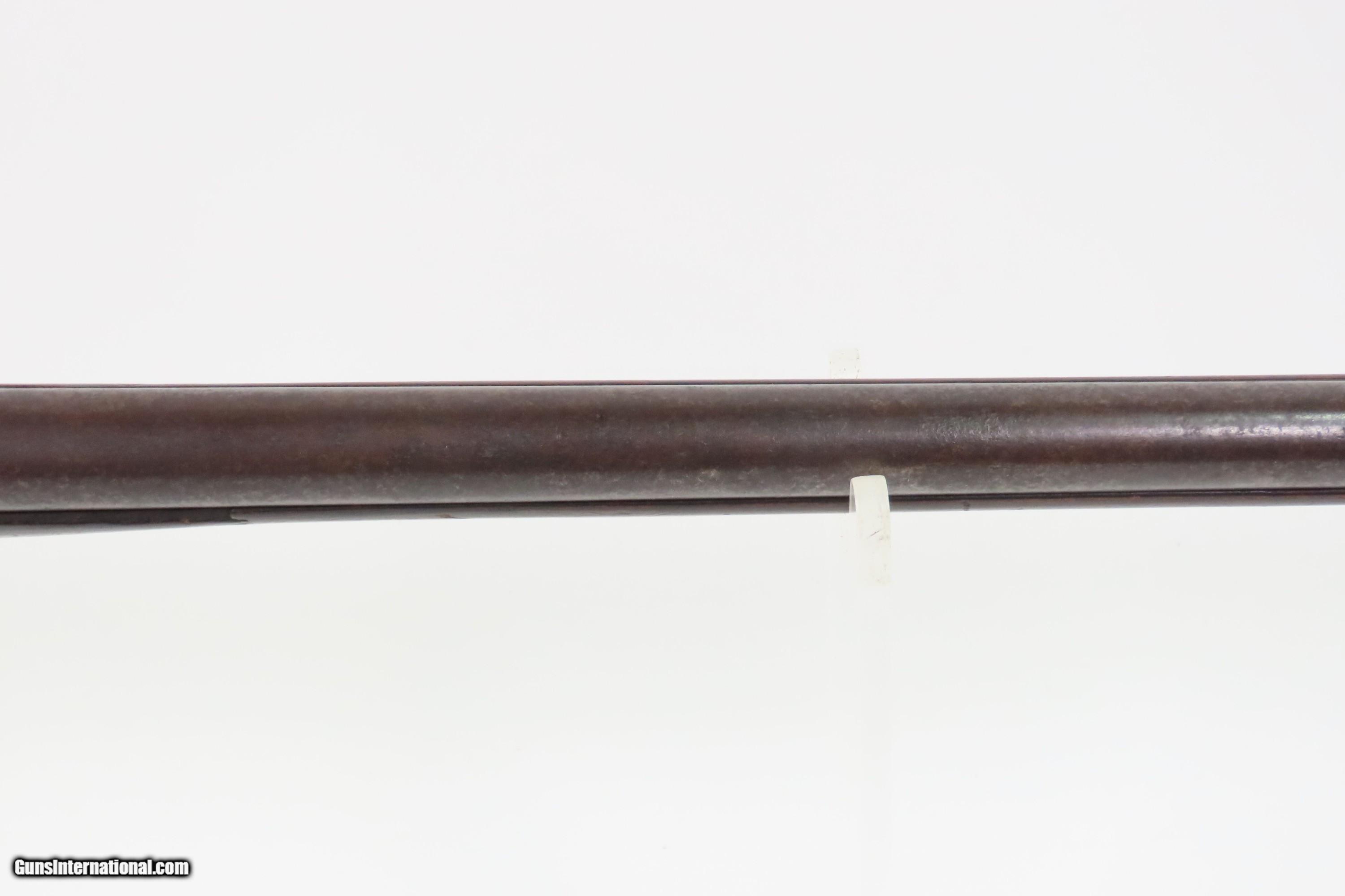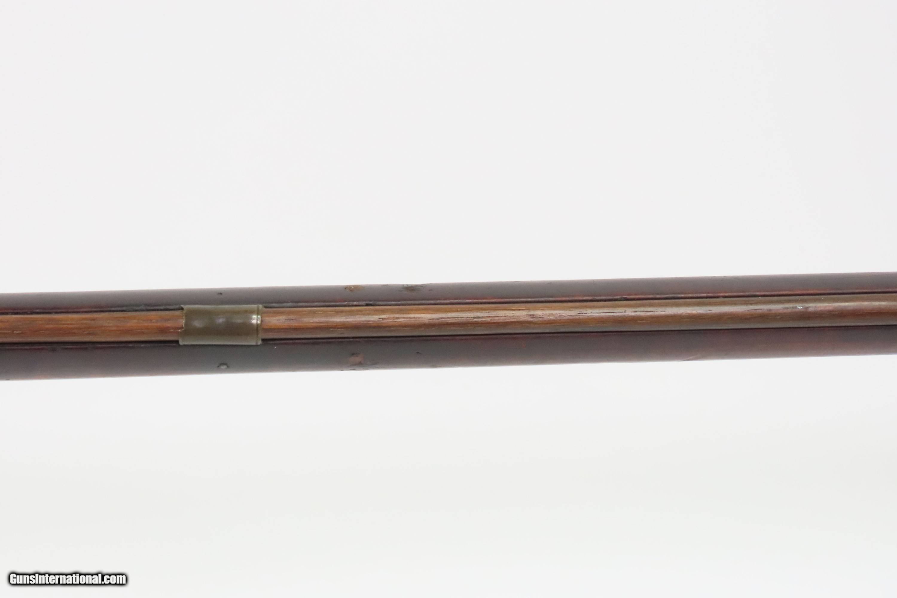 Description: REVOLUTIONARY WAR Era Antique RICHARD WILSON London FLINTLOCK Smooth Musket “WILSON” Marked Lock COLONIAL MILITIA Longarm Here we present an antique Revolutionary War Era Richard Wilson Flintlock Musket, made circa the late 1760s to the early 1770s in London, England. Richard Wilson was the first of a multigenerational family named and owned arms making company in the Minories. He was born to parents who were originally from the county of Westmorland and he was baptized in the church of St. Bottolph’s Aldgate in London in 1703. He was apprenticed to London gunmaker Thomas Green for 7 years. Upon the completion of his apprenticeship in 1725 he continued to work for Thomas and then Thomas’s wife Agnes when Thomas had passed away. They made guns on contract for the Hudson’s Bay Company as well as the Royal African Company. He took over this business from Agnes and gained The Honourable East India Company as a client in 1733. He appears to have been making guns for North America by about 1735, documents mentioning his arms by name noting their desirability. Colonies such as Georgia and South Carolina were ordering muskets and bayonets for their militias while merchants were ordering them for sale to their customers, the colonists as well as Native Americans. Richard would pass in 1766 but his son William and subsequently his grandson William II would continue the family name and business. Richard would also train Robert Barnett and it is speculated by DeWitt Bailey II, the author of an excellent article from which much of this information was gleaned, that Barnett would make up part of the Company (as in Wilson & Co.) along with Richard’s first apprentice, Robert Wilson, a relative. This piece has a long, smoothbore barrel which would have offered great versatility for the user, allowing him to fire a .67 caliber round ball for martial duties or for large game animals, shot for fowl and small game, or a combination called “buck and ball”. It has an “*RW” marked barrel, which is the maker mark for Richard Wilson with sunken oval pre-1813 London proofs, along with “LONDON” marked on the barrel. This musket would have likely been carried around by a militiaman, or even possibly an American Continental “Regular” during the American Revolutionary War. The overall condition is good. Deep brown original patina throughout. The stock is in good condition with repairs on the wrist and under the lock. Visible markings are legible. Strong action. The bore is dark and smooth. Barrel is 48 inches. Caliber: .67 Flintlock Overall condition as seen in photos. Very Fast. Very Safe. FREE SHIPPING WORLDWIDE. Delivered directly to your door by express mail! ancestryguns $2200 #250565 SOLD Antique: Yes |