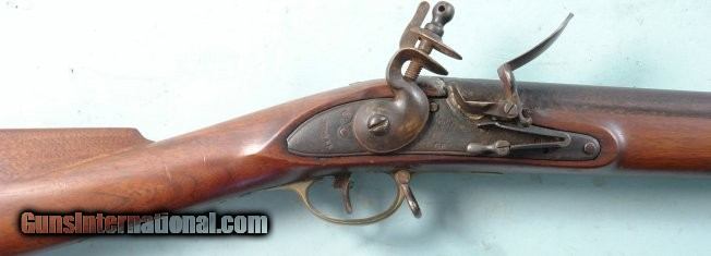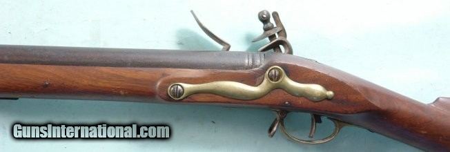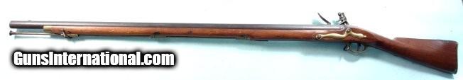 Description: TOWER 3RD MODEL BROWN BESS FLINTLOCK MUSKET CIRCA 1805-10. 39” round .75 cal. smoothbore barrel with Birmingham proofs at left breech and with Liege proof at top of barrel 4” from breech. Lock plate tale stamped “TOWER” with the George III cypher forward of the hammer. A reconversion to flintlock of a Liege production Volunteer Brown Bess during the Napoleonic Wars. Handsome display item in very nice condition. All original except hammer and frizzen assembly which are professionally aged correct reproductions. Brass side plate and ramrod aged reproductions as well. Original sling swivels. Excellent very crisp metal finish and stock very good to fine as well. Lock in working order and excellent bore. Very handsome restored Napoleonic Wars and War of 1812 musket. SOLD Antique: Yes |