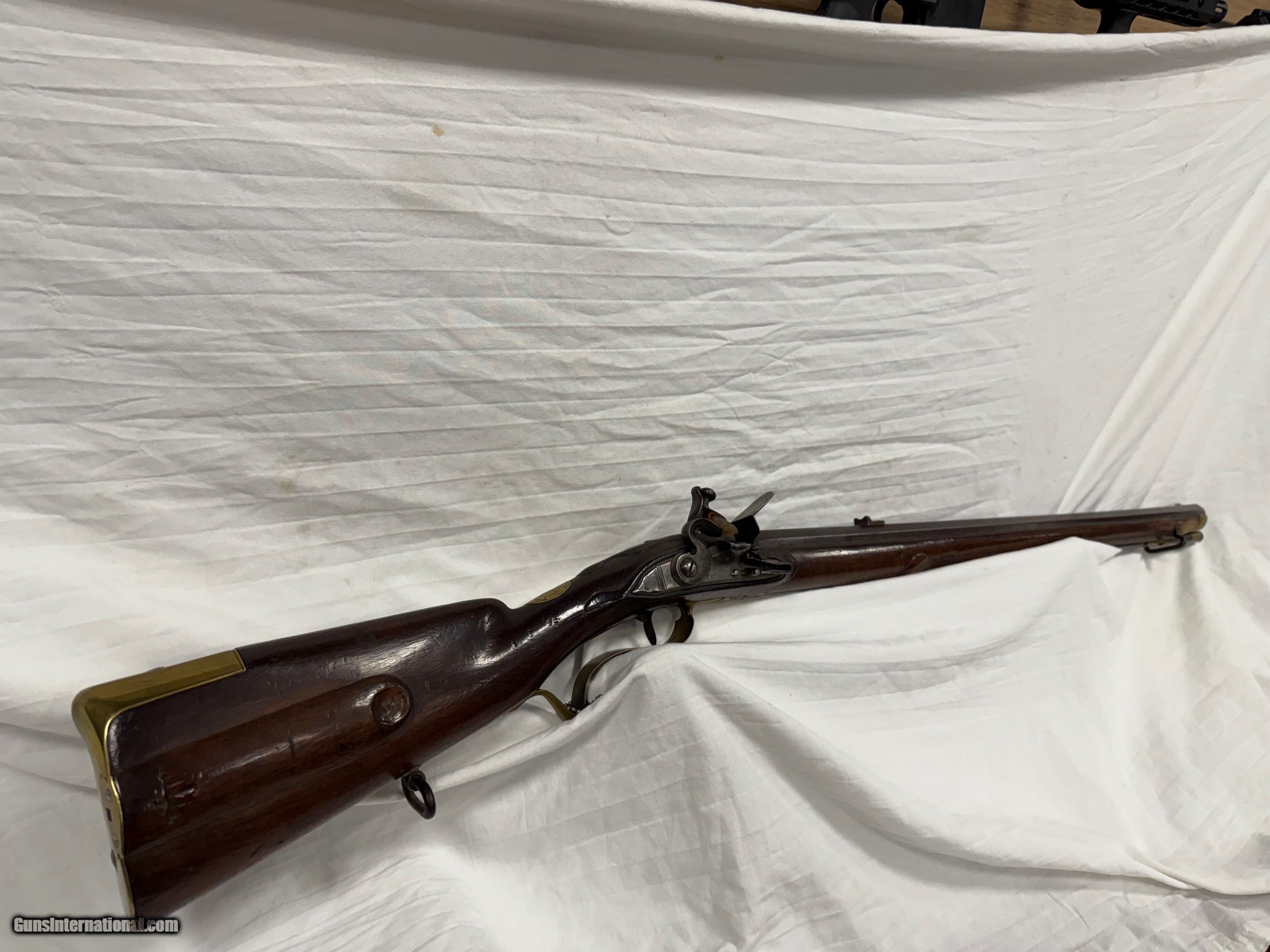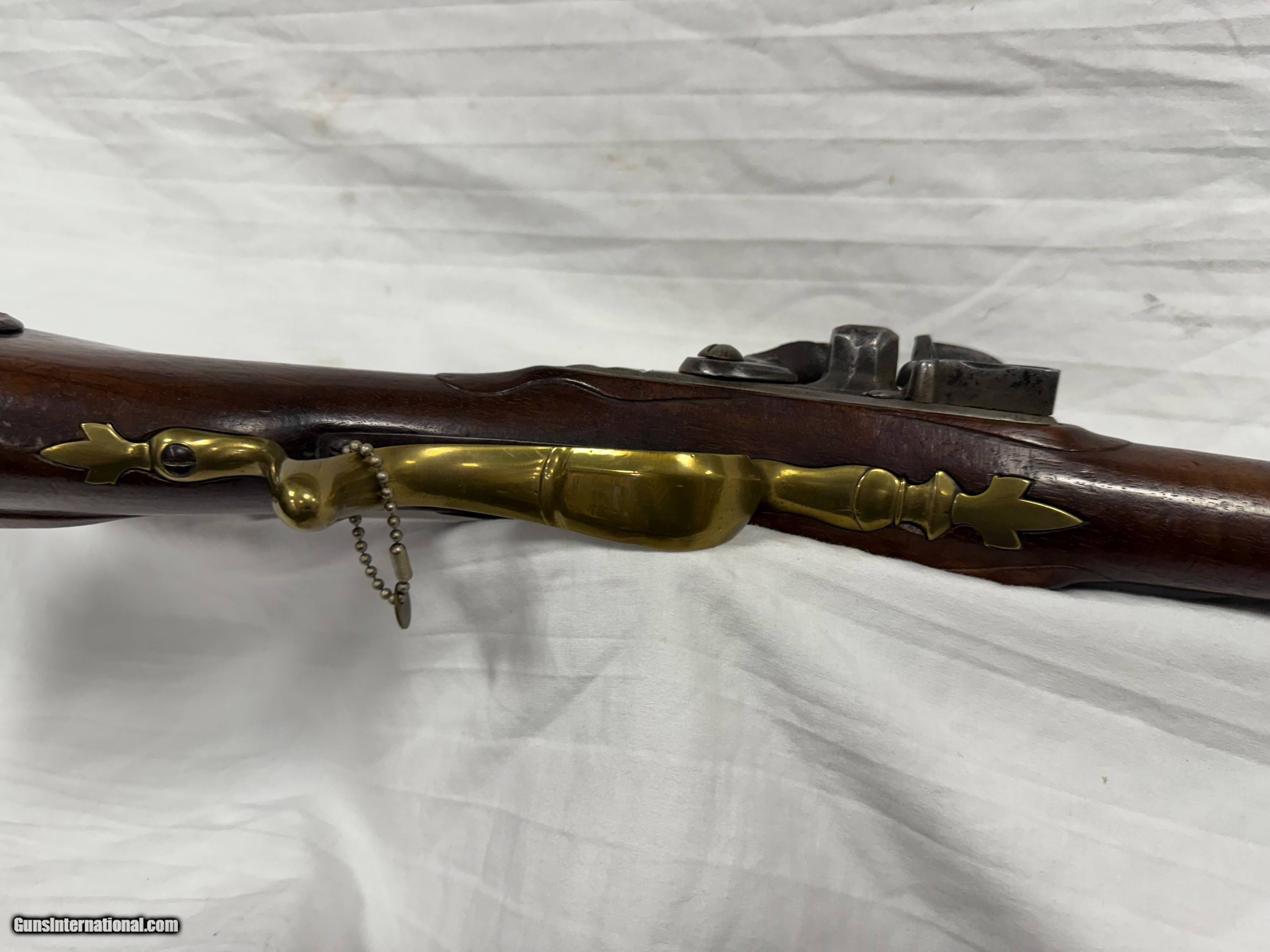 Description: This is a TW PISTOR German made jaeger flintlock rifle. The barrel is octagonal seven grooved rifled and length is 28 5/8. The rifle looks to be .62 caliber. Thomas PISTOR was the maker out of Cassel, Germany. The number on top of the brass butt plate is #244. This is a classic German rifle in very good condition. These rifles used by the Hessians during revolutionary war. Shipping 50.00 SOLD Manufacturer: TW PISTOR Model: Jaeger Barrel Length: 22 5/8 |