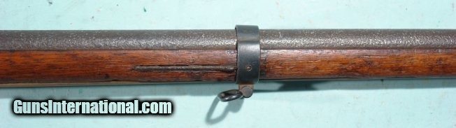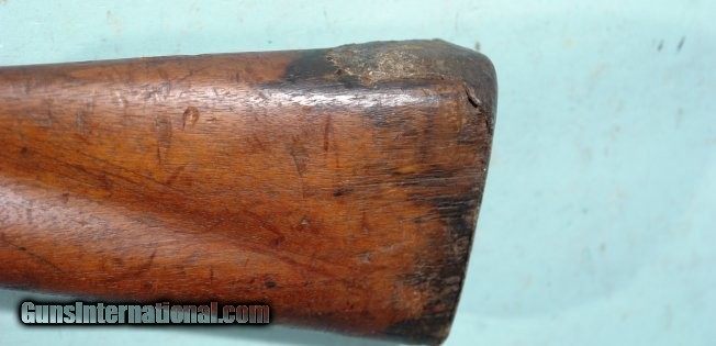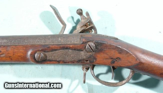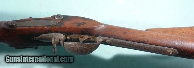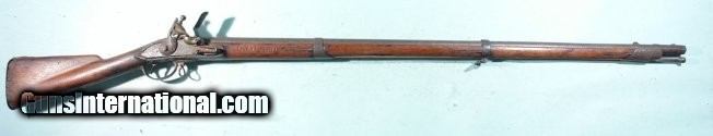 Description: WAR OF 1812 MARYLAND SURCHARGED WHITNEY MODEL 1798 FLINTLOCK MUSKET. 42” smoothbore .69 cal. barrel. Original flintlock non-reconversion Maryland contract musket with correct “MARYLAND” brand on right side of forend. 100% original with exception of the ramrod, barrel tang screw and center band which are aged replacements. Identical Whitney “MARYLAND” surcharged musket recently sold at in Virginia. Metal surfaces with heavy old and dark pitted patina overall attesting to it’s originality. Lock in working order. Stock in good condition with appropriate wear. War of 1812 Battle of Bladensburg and Fort McHenry era musket. SOLD Antique: Yes |