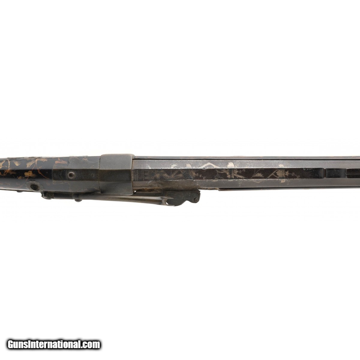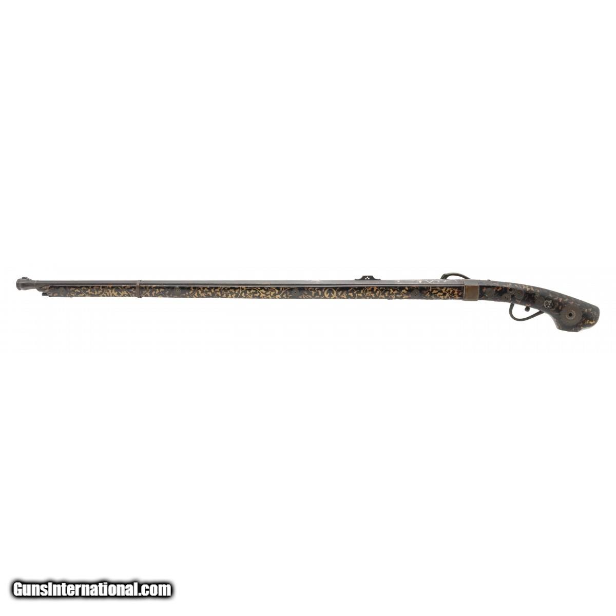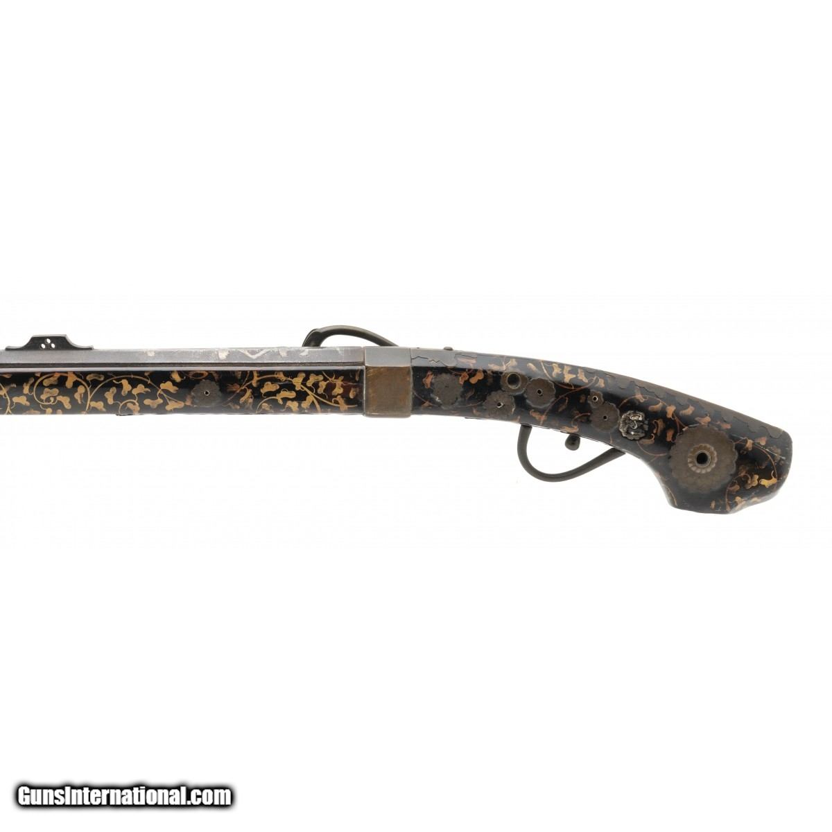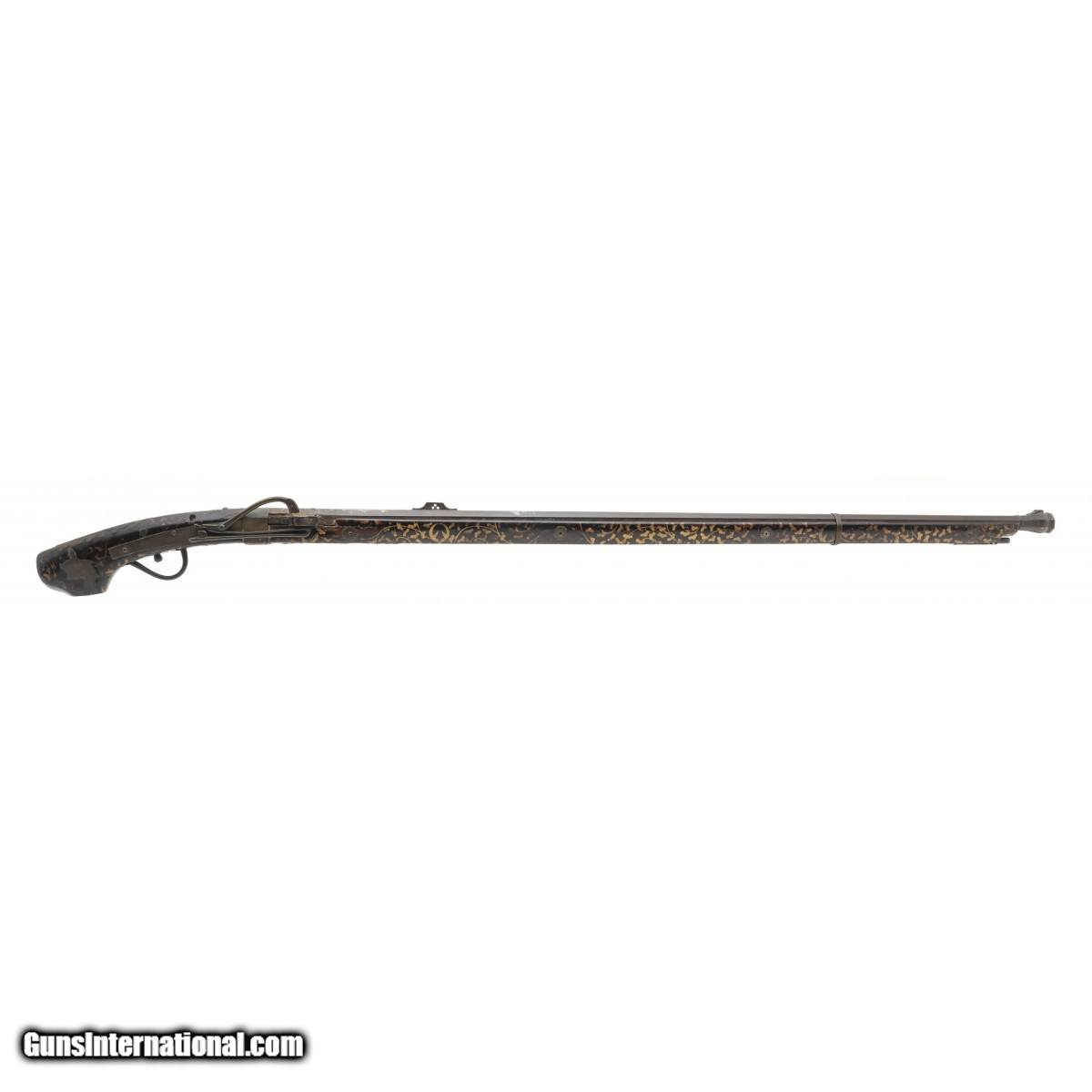 Description: "Made circa 1800. 65 caliber with a 39" barrel. Very neat example of Japanese match lock. Barrel has a dark brown patina. The barrels has silver inlays. The muzzle is a cannon type. The stock has laquer work and has inlays. Very neat example! SOLD Antique: Yes |