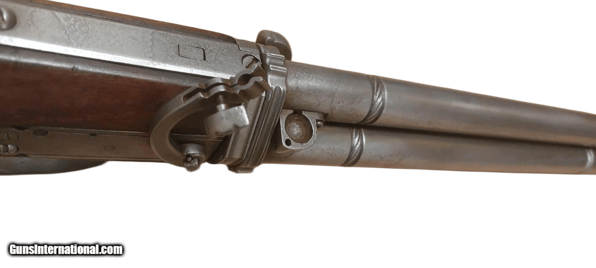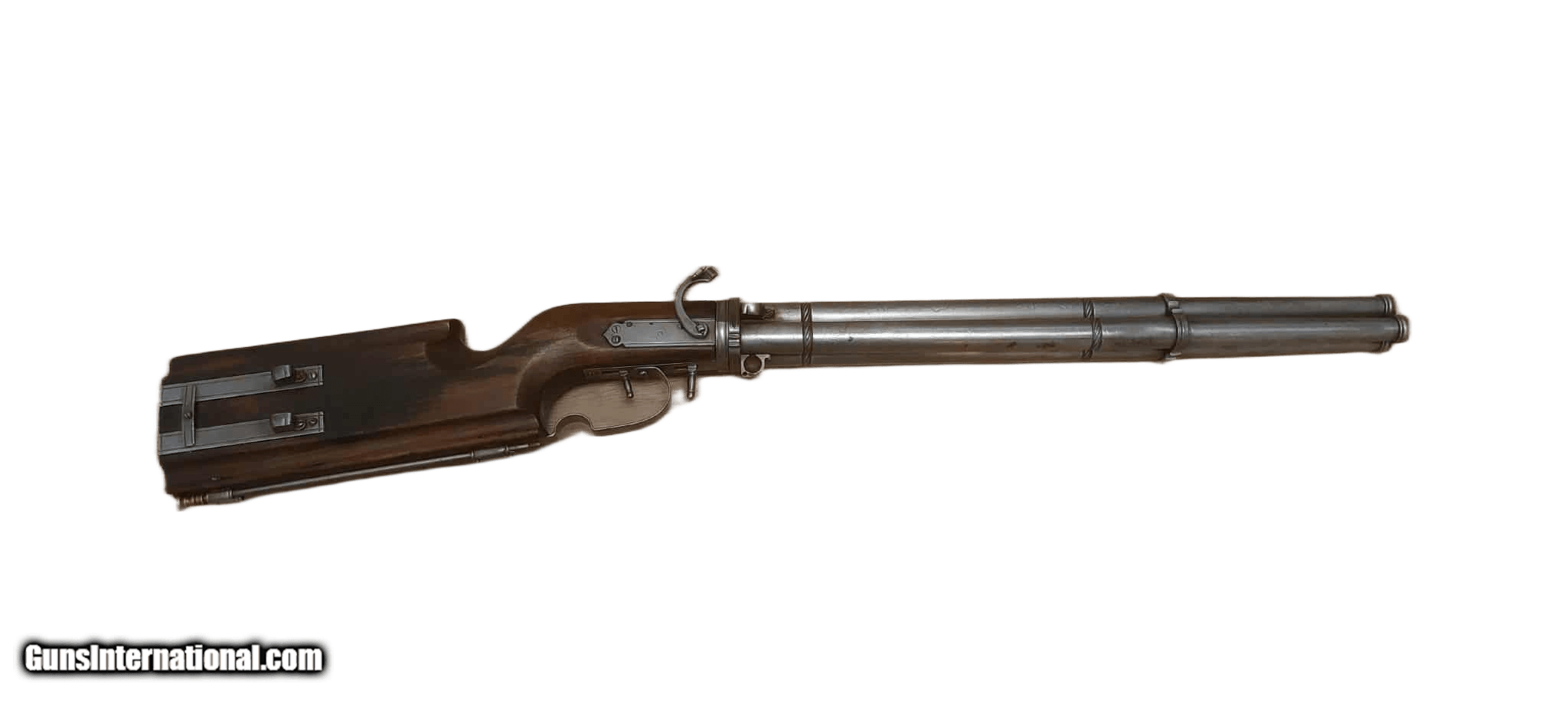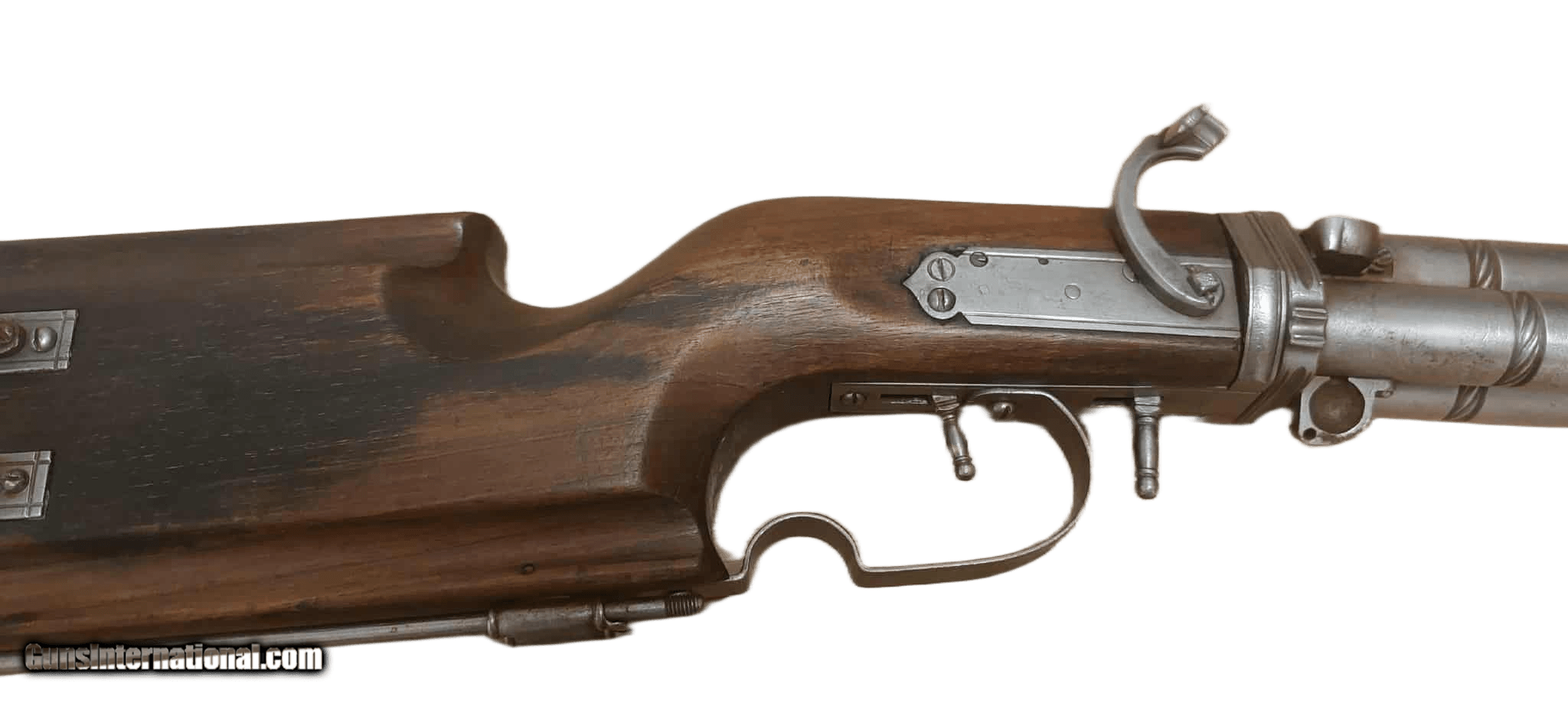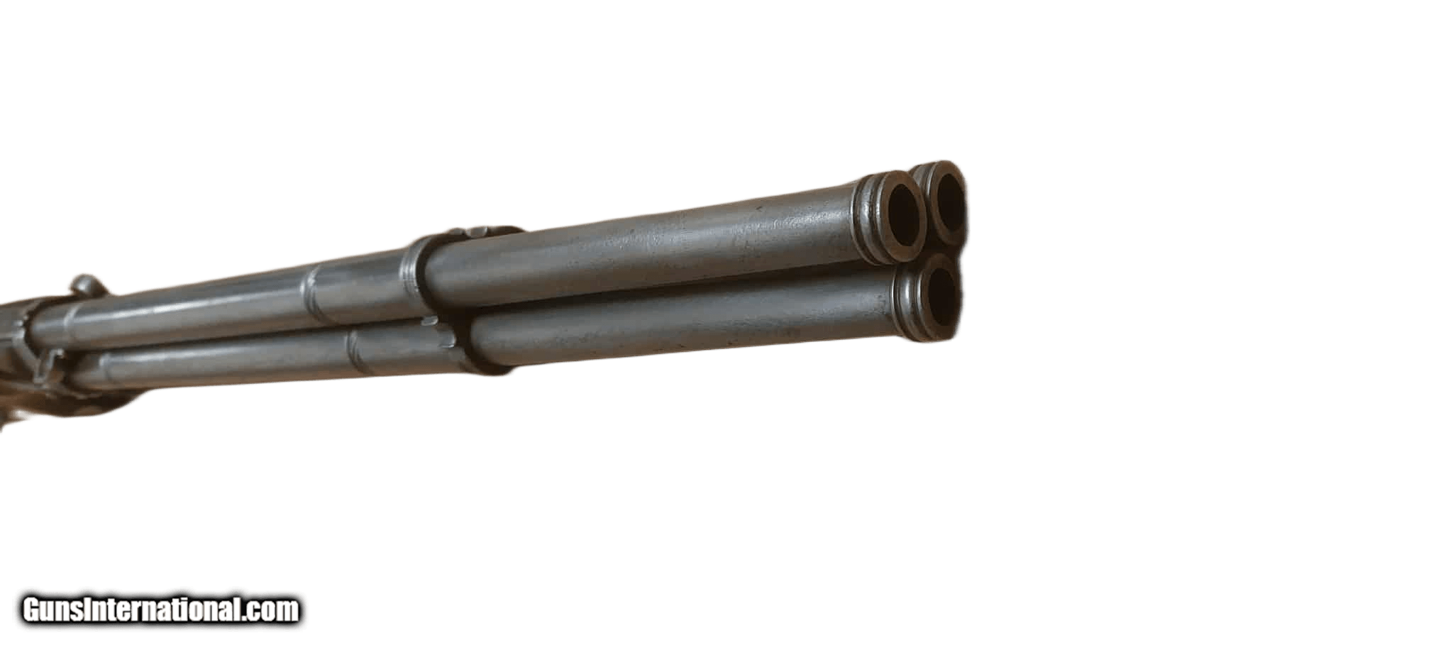 A very rare 7 barrel matchlock arquebuse musket with swiveling barrel and additional barrel in the butstock