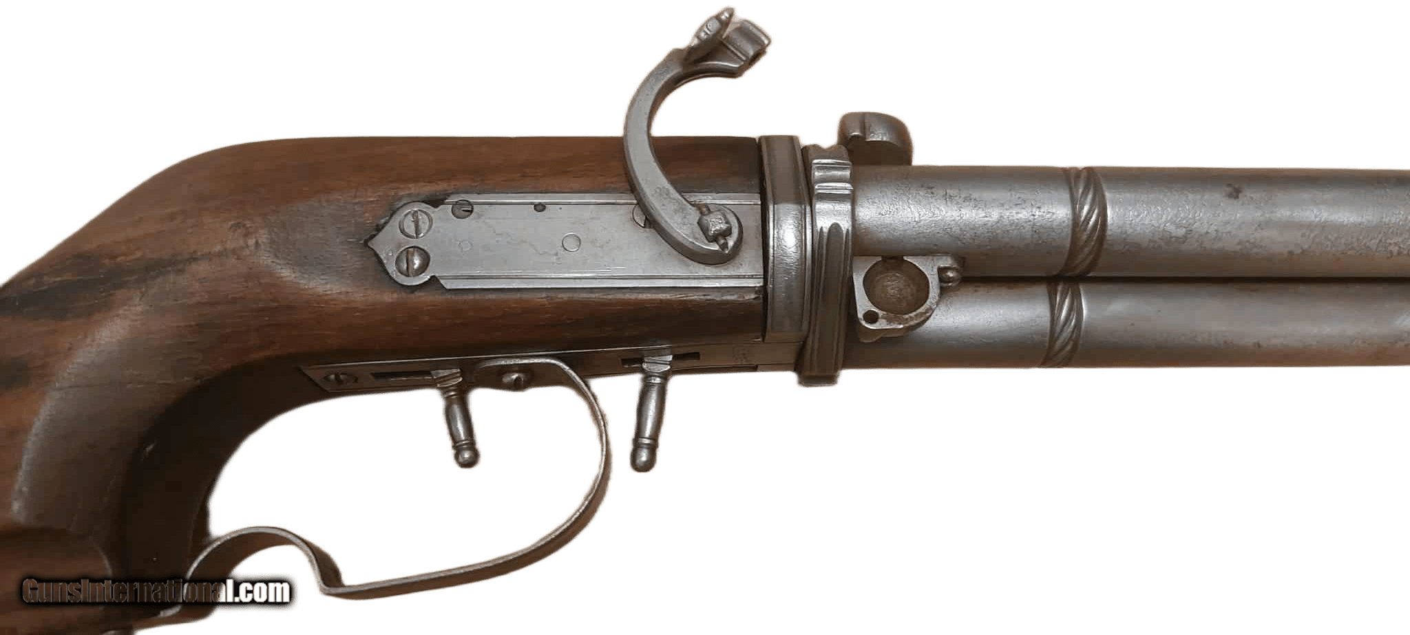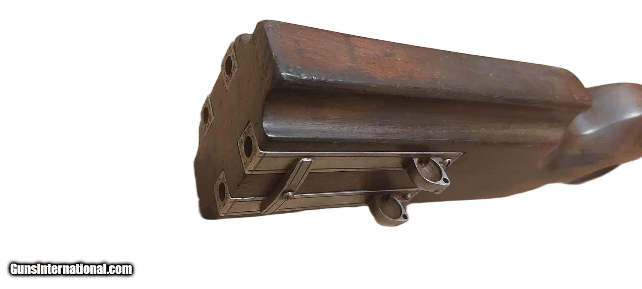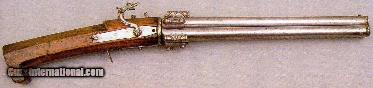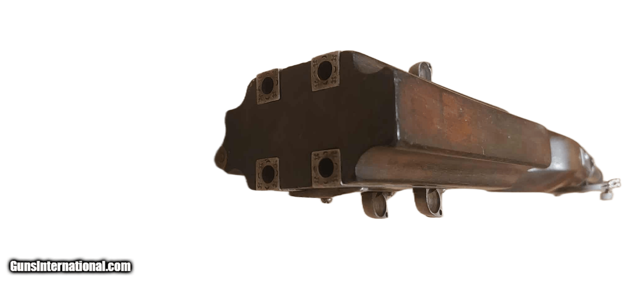 Description: A very rare design, similare to the one Prague museum (see last three attachements), with 3 swiveling hand turned barrels and an additional 4 barrels in the butstock. The 3 barrels upfront can be fired by a matchlock mechanism, the other 4 by means of a handheld piece of matchcord. The barrels are locked in place by a catch which can be released by a lever in front of the trigger. Underneath the butstock the two piece ramrod was hosued, only one of these is still with the gun. The whole gun shows signs of cleaning with some original finish still left on the stock. Non of the powderpans have the covers, which were most likely very delicate. Only very few of such guns where ever made and were mostly used as an experiment and show of skill and luxury. At the start of the renaissance there were a lot of experimental guns made to further the ever growing need of more powerfull arms and armour. Such luxury items were reserved for high ranking people and would have taken great skill to build. Total length is 32" with a 0.63 caliber Antique: Yes Barrel Length: 14 Bore Condition: VG Barrels: 7 Price: $12,500.00 Contact Seller |