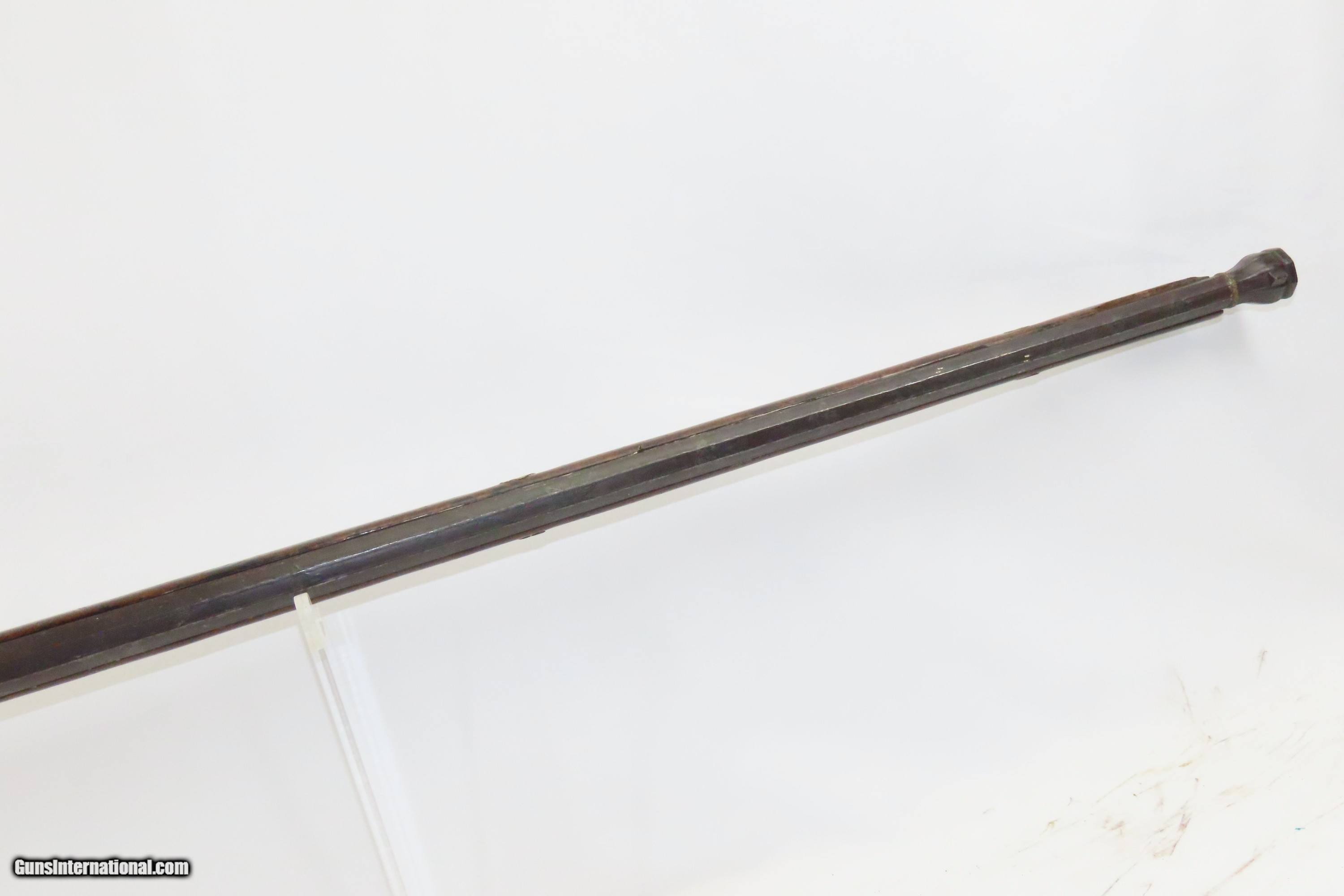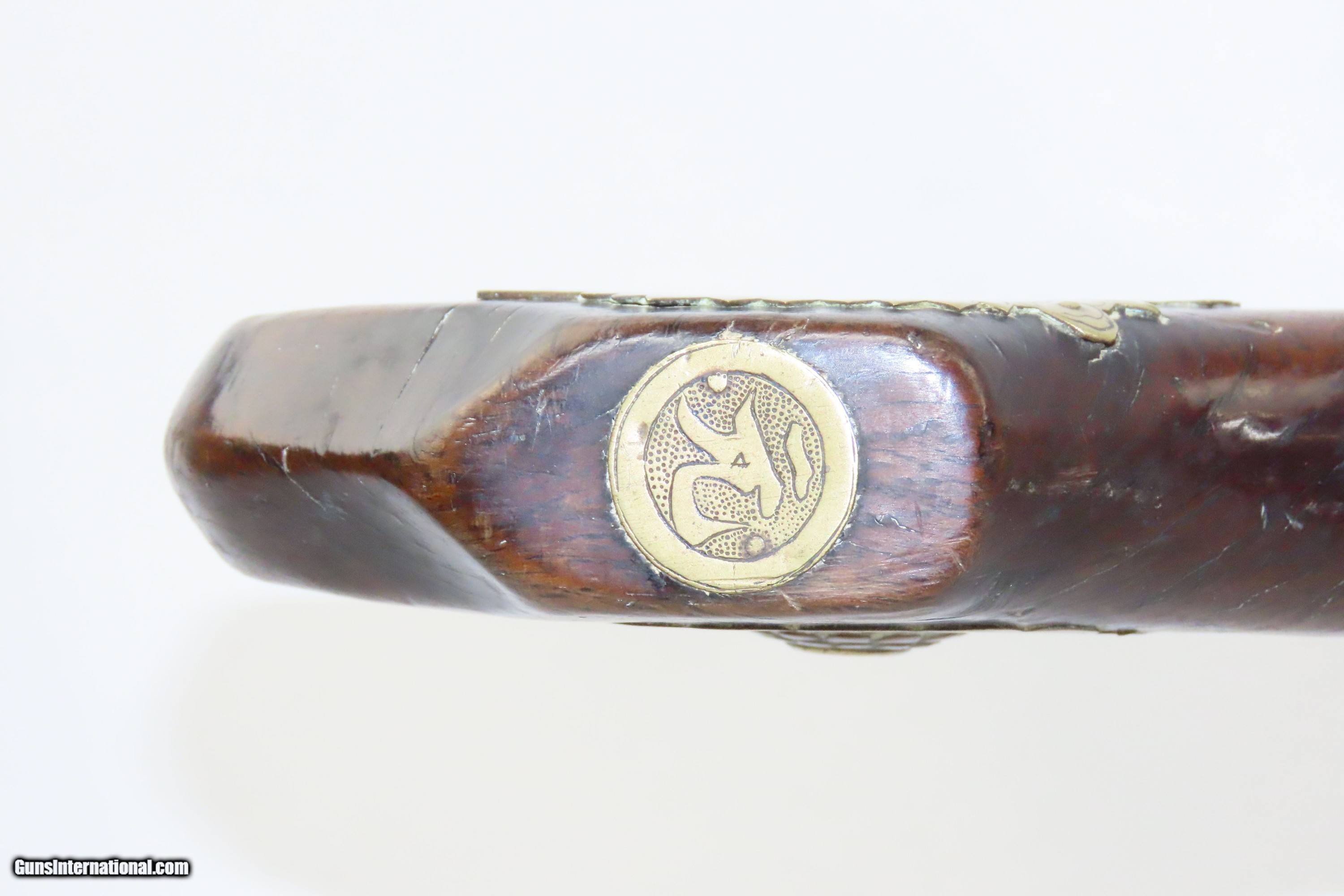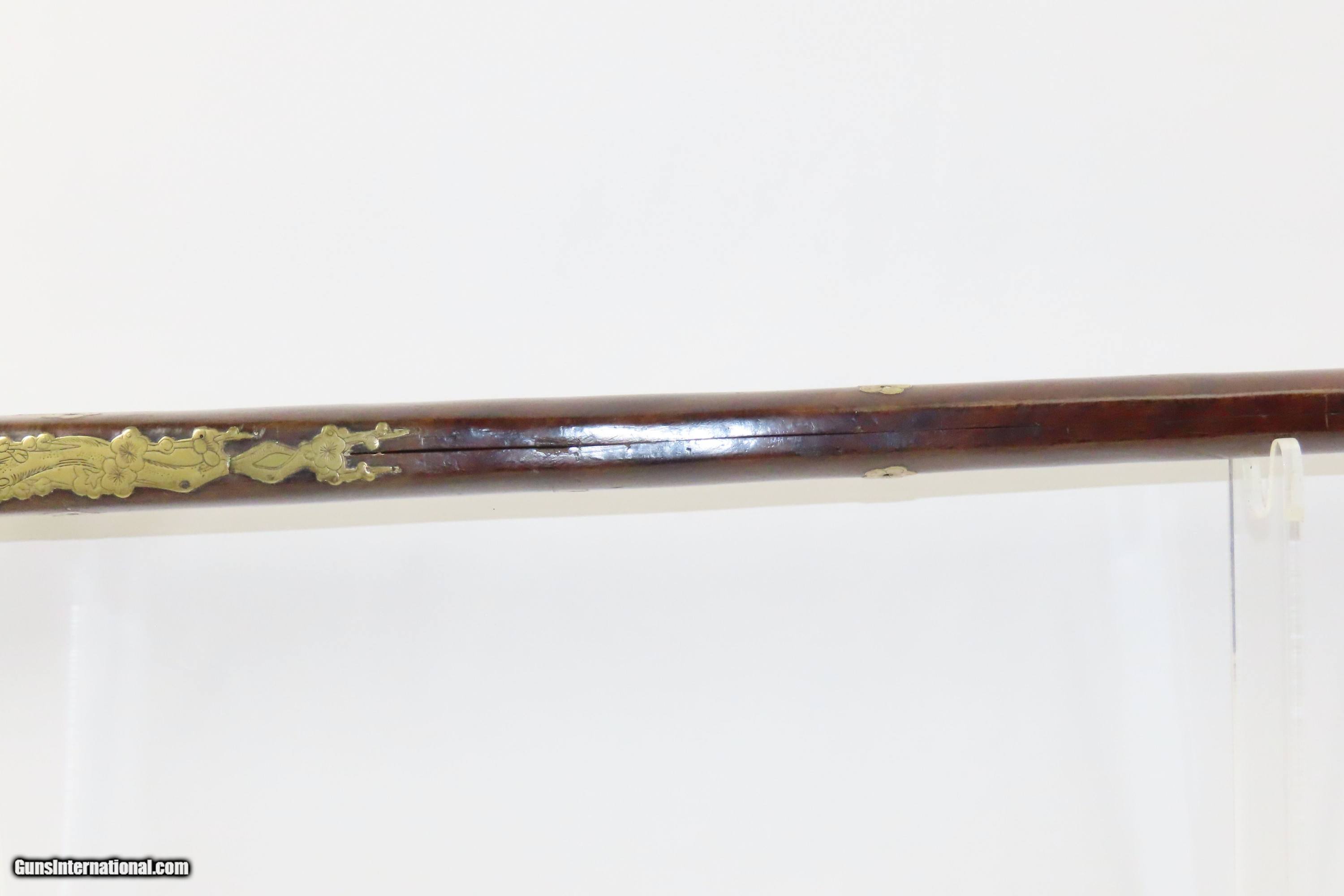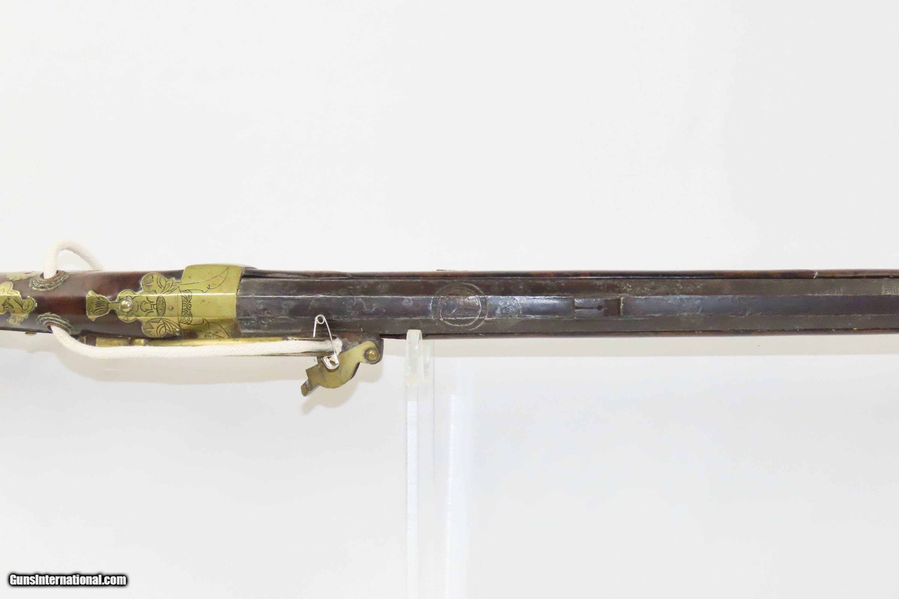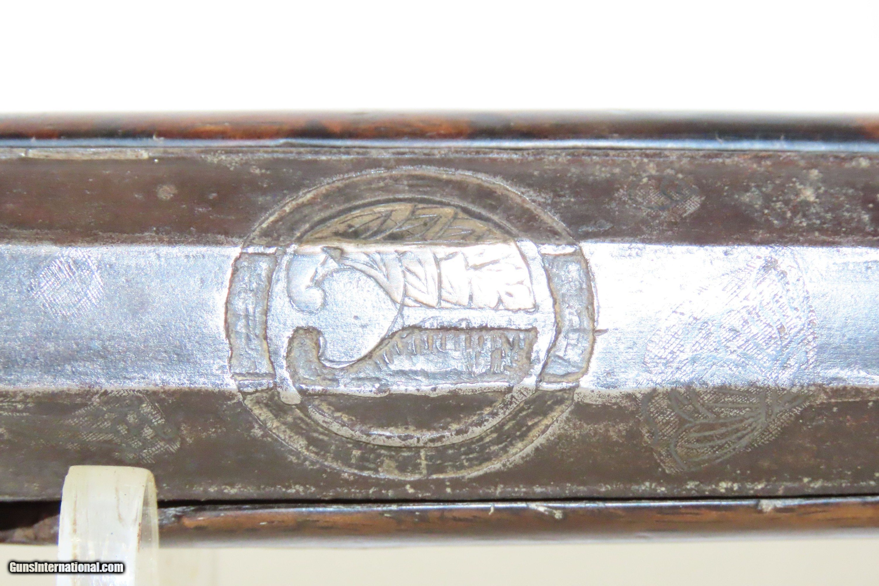 Description: Engraved SCARCE Antique JAPANESE “Tanegashima” Matchlock ARQUEBUS Musket ORNATE Fascinating Ancient Weaponry w/INLAID STOCK Here we present an antique Japanese Tanegashima Matchlock Arquebus Musket. This was a more refined matchlock musket that utilized a lock and trigger mechanism instead of the more primitive hand-held match. Use of this type of firearm in Japan dates to the mid-16th Century, when the Portuguese brought this 15th Century European concept to the shores of the Japanese Island of Tanegashima, for which the musket is named. With just a few examples Japanese swordsmiths were able to duplicate and produce their own on a large scale, forever changing how wars would be fought in Japan by the end of the 16th Century. They proved decisive in settling the internal wars, so that Japan lived in relative peace and isolation for the next 250 years. The Tanegashima continued to be produced and used until about the end of the Edo Period, when Commodore Perry established contact in the mid-19th Century. Conflict again rose to the surface but was decided by modern weapons of the period. This is a very interesting weapon when comparing to those most of us are familiar with today. These were not shoulder-fired weapons, so they do not have a provision to brace the stock against one’s body. A braided cord, known as the “slow match”, would have a burning ember at the end. The slow match is held by the spring-loaded arm known as the “serpentine”. The serpentine is put into the cocked position when ready to fire, and the hinged cover moved from over the flash pan. A simple pull of the trigger plunged the serpentine and the slow match into the flash pan, detonating the charge within the gun. The top of the barrel bears beautiful floral décor inlayed into the barrel. The overall condition is very good. Original patina. The action is functional. The bore is smooth and patinated. The stock has an old chip on the left side and is otherwise solid. Own the original! This is a legitimate antique and not a reproduction. Barrel is 41-3/4 inches. Caliber: .58 Matchlock Overall condition as seen in photos. Very Fast. Very Safe. FREE SHIPPING WORLDWIDE. Delivered directly to your door by express mail! Guaranteed AUTHENTIC & Includes CERTIFICATE OF AUTHENTICITY. ancestryguns $2400 #230395 SOLD Antique: Yes |
