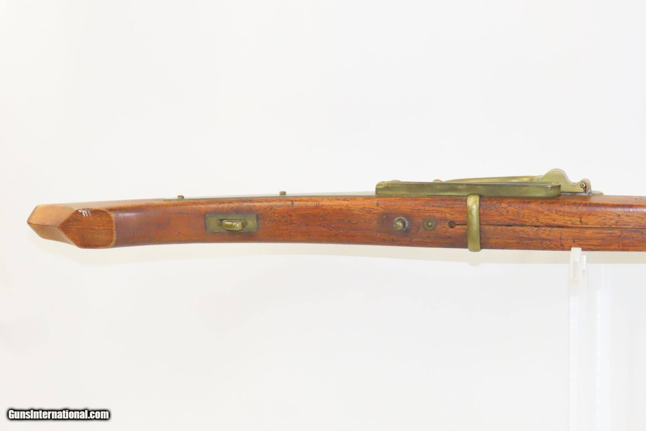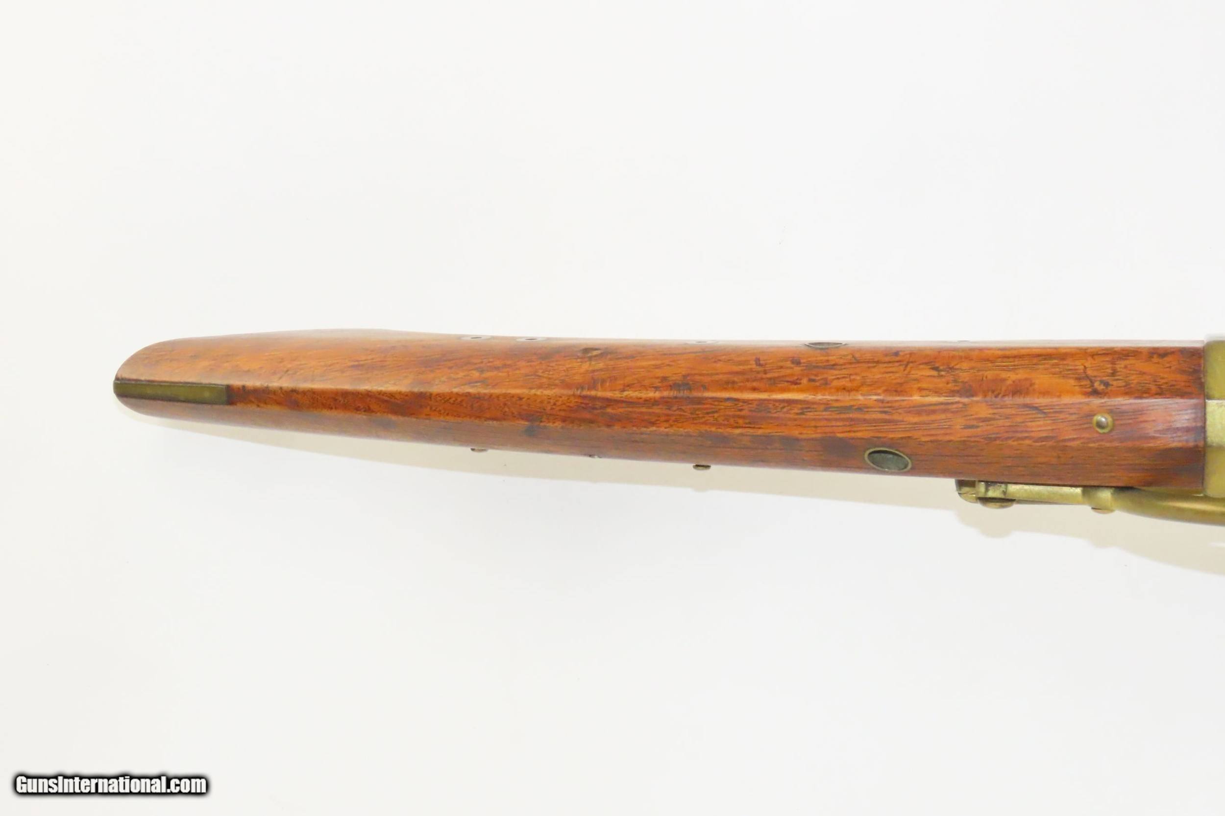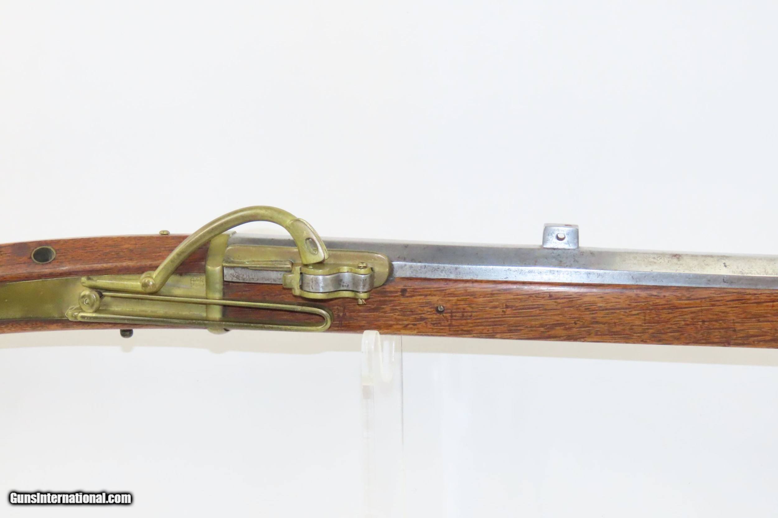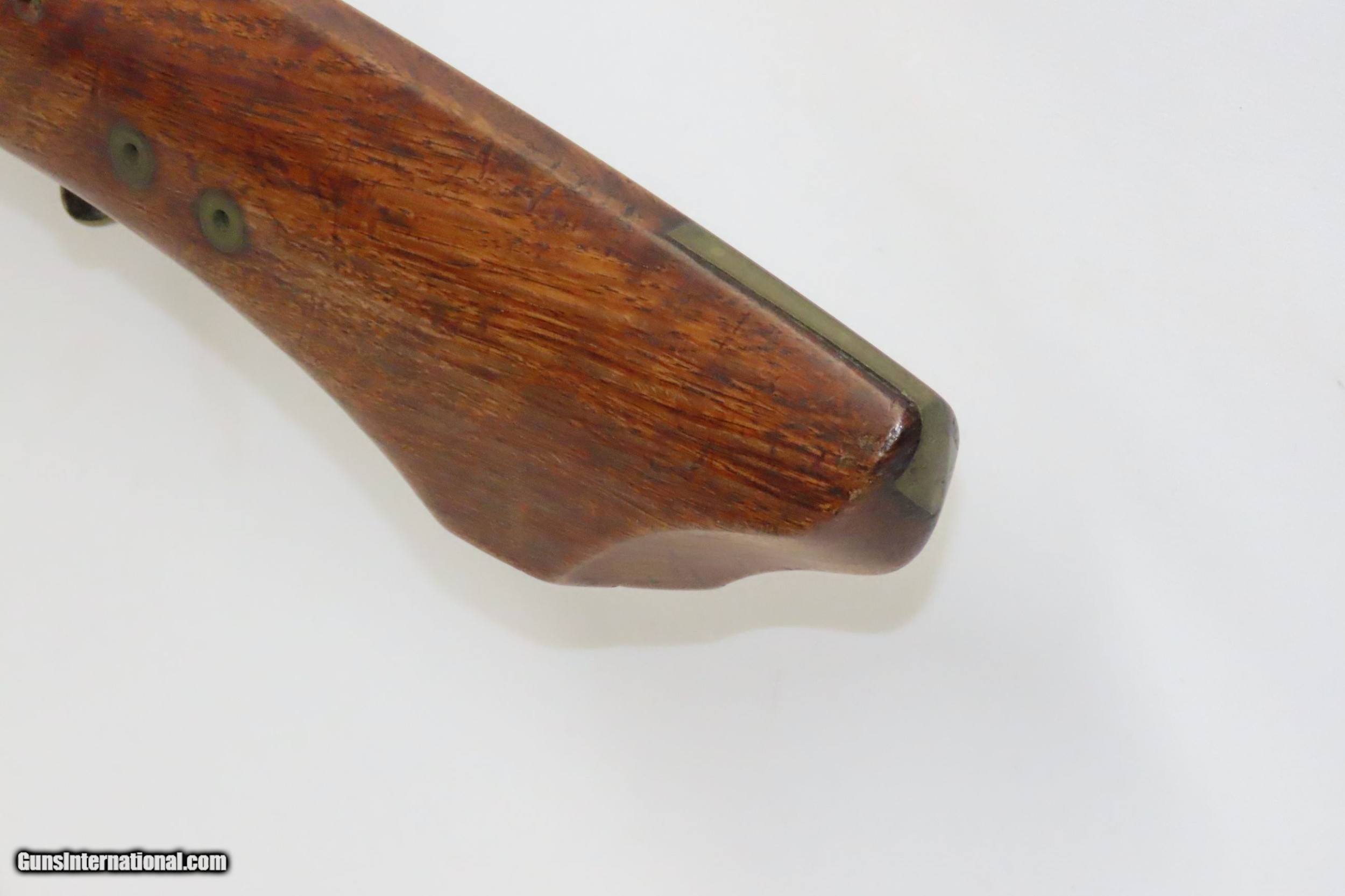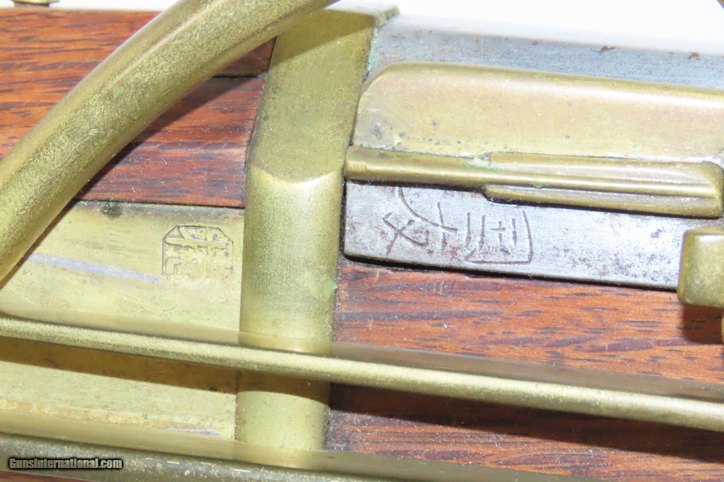 Description: SCARCE Antique JAPANESE MATCHLOCK “Tanegashima” ARQUEBUS .53 Caliber MUSKET Fascinating Ancient JAPANESE Weaponry Here we present an antique Japanese Tanegashima Matchlock Musket. This was a more refined matchlock musket that utilized a lock and trigger mechanism instead of the more primitive hand-held match. Use of this type of firearm in Japan dates to the mid-16th Century, when the Portuguese brought this 15th Century European concept to the shores of the Japanese Island of Tanegashima, for which the musket is named. With just a few examples Japanese swordsmiths were able to duplicate and produce their own on a large scale, forever changing how wars would be fought in Japan by the end of the 16th Century. They proved decisive in settling the internal wars, so that Japan lived in relative peace and isolation for the next 250 years. The Tanegashima continued to be produced and used until about the end of the Edo Period, when Commodore Perry established contact in the mid-19th Century. Conflict again rose to the surface but was decided by modern weapons of the period. This is a very interesting weapon when comparing to those most of us are familiar with today. These were not shoulder-fired weapons, so they do not have a provision to brace the stock against one’s body. A braided cord, known as the “slow match”, would have a burning ember at the end. The slow match is held by the spring-loaded arm known as the “serpentine”. The serpentine is put into the cocked position when ready to fire, and the hinged cover moved from over the flash pan. A simple pull of the trigger plunged the serpentine and the slow match into the flash pan, detonating the charge within the gun. The overall condition is good. Gray patina. Visible markings. The action is functional. The bore is smooth and has some oxidized scaling. The stock is smooth and solid. Own the original! This is a legitimate antique and not a reproduction. Barrel is 33-1/2 inches. Caliber: .53 Matchlock Overall condition as seen in photos. Very Fast. Very Safe. FREE SHIPPING WORLDWIDE. Delivered directly to your door by express mail! Guaranteed AUTHENTIC & Includes CERTIFICATE OF AUTHENTICITY. ancestryguns $2415 #220645 SOLD Antique: Yes |