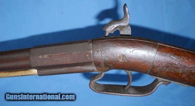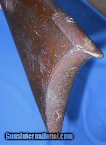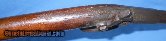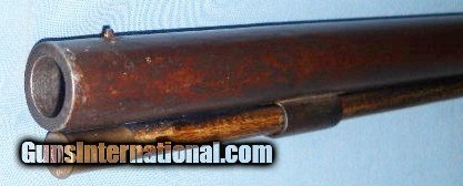 Description: MARKED A.H. WATERS & Co, MILLBURY, MASS. ON LEFT SIDE CENTER FLAT WITH # 75. THIS IS A NEAT LITTLE .50 CALIBER / 28 GA. CIVIL WAR ERA ? BUGGY GUN ABOUT 36" OVERALL. METAL SURFACES HAVE TONED TO A SMOOTH RICH BROWN PATINA WITH SCATTERED STAINS AND CAP-SPLASH PITTING AROUND THE NIPPLE AREA. THE FRAME, UPPER TANG AND TRIGGER BOW HAVE OPEN SCROLL ENGRAVING. WALNUT STOCK RATES VERY GOOD WITH OVERALL LIGHT HANDLING MARKS, FLAKED FINISH & SCRATCHES THAT DON'T GO THROUGH TO THE WOOD. LOCK IS FUNCTIONAL WITH 2 CLICK HAMMER. VERY INTERESTING GUN BY A MAKER KNOWN FOR HIS MILITARY MUSKETS, AS PICTURED. $35.00 S&H EAST or $40.00 WEST OF THE BIG RIVER DIRECT TO BUYER ANYWHERE THAT'S OK. INSURANCE IF WANTED $1.50 PER $100.00 OF DECLARED VALUE. SEE ALL "ESTATE ANTIQUES" LISTINGS FOR MORE ITEMS AT SENSIBLE PRICES FROM OLD TIME COLLECTIONS. SOLD Antique: Yes Rifle Caliber: .50 Shotgun Gauge: 28 Gauge Manufacturer: A.H. WATERS Model: BUGGY GUN Serial Number: 75 Barrel Length: 21 1/4 Bore: NEEDS CLEANING Condition: GOOD AS PICTURED Metal Condition: ORIGINAL Wood Condition: VERY GOOD Barrel Type: ROUND Action: WORKING Triggers: SINGLE Stock: WALNUT Butt Pad: FACTORY ORIGINAL LOP: 13 1/2 Finish: ORIGINAL AGED Weight: 4 lb 7 oz Manufacture Date: 1850s - 1860s |