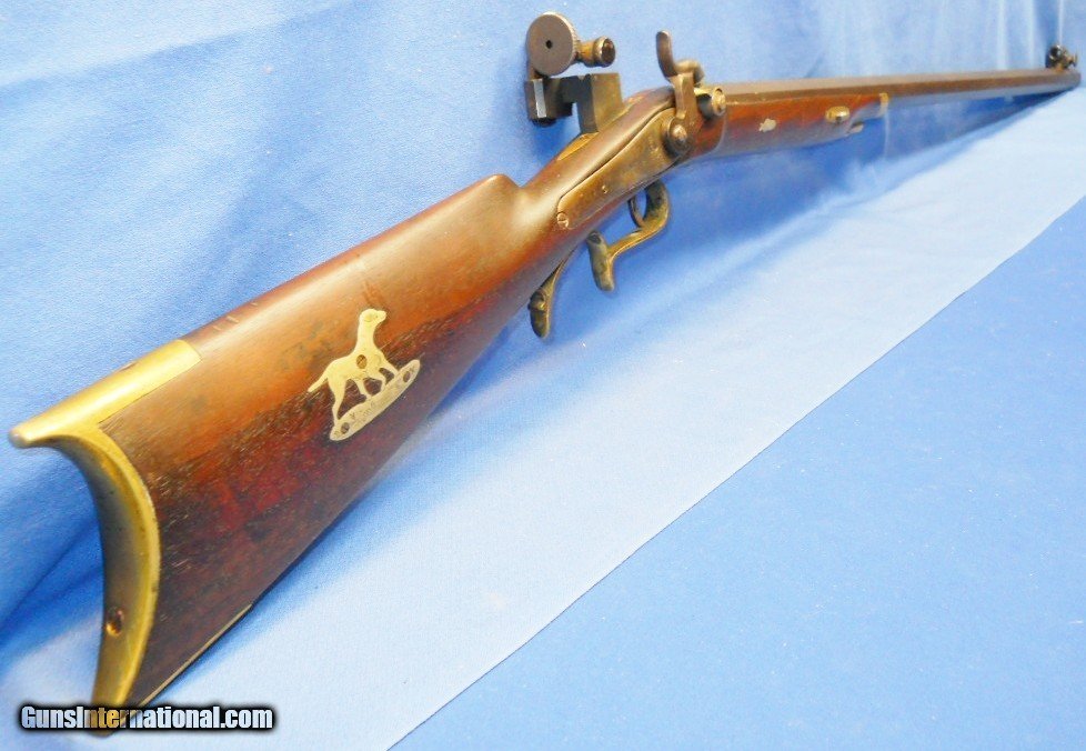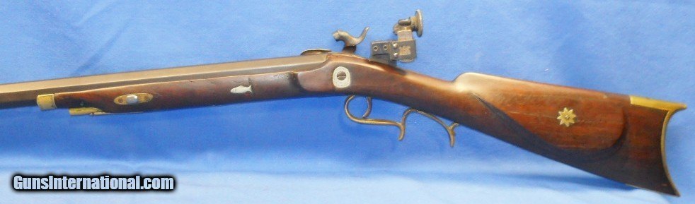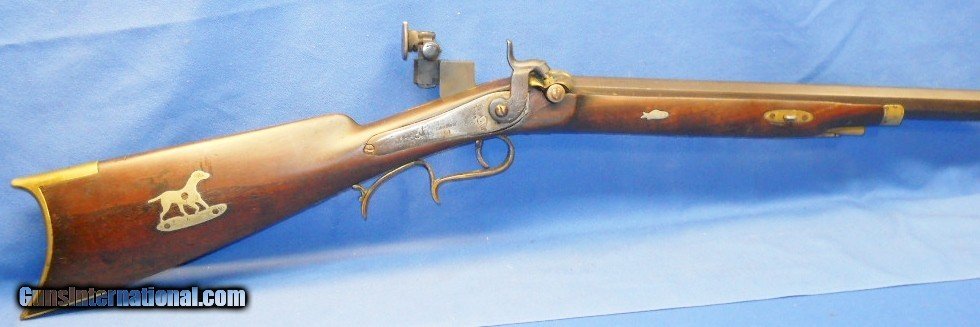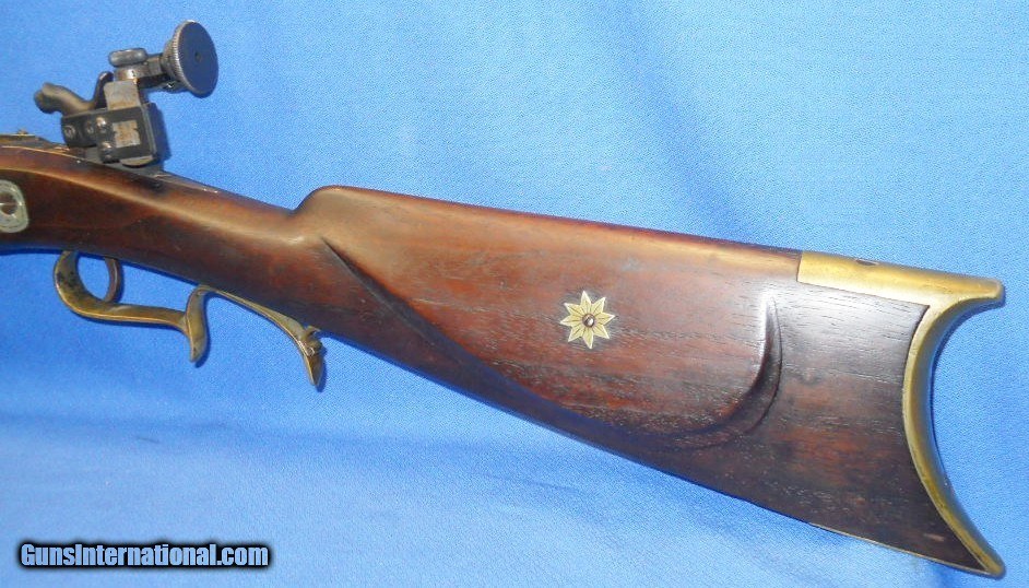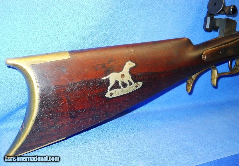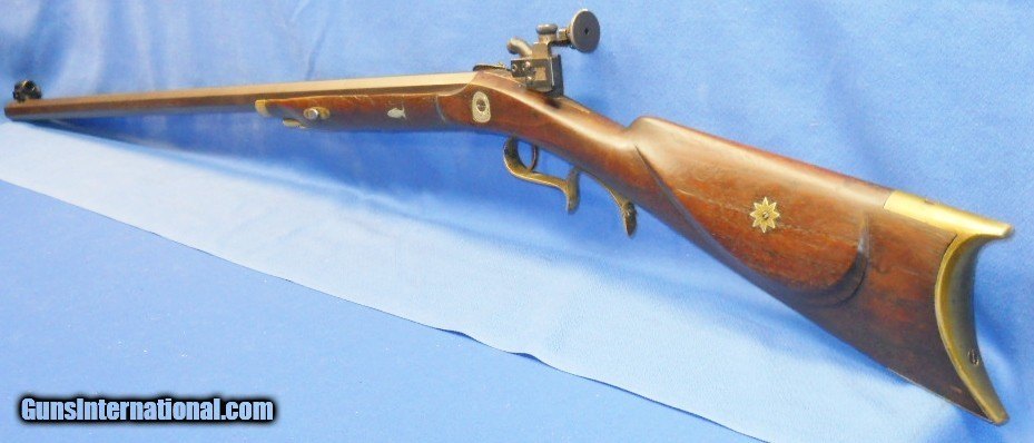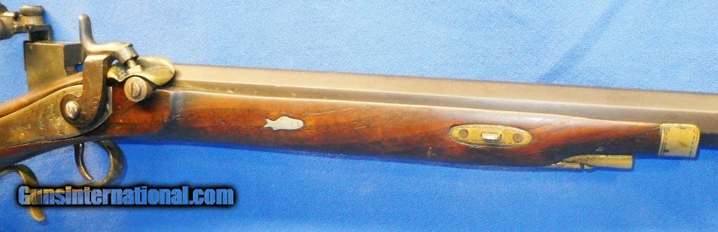 * Antique HALF STOCK PERCUSSION SPORTING TARGET RIFLE SILVER INLAYS KIRKLAND BARREL