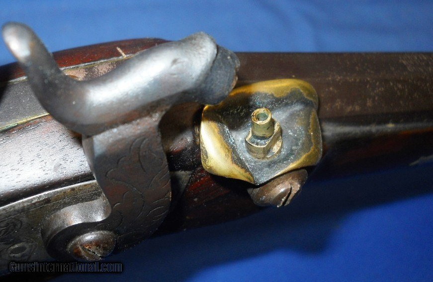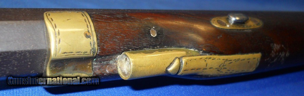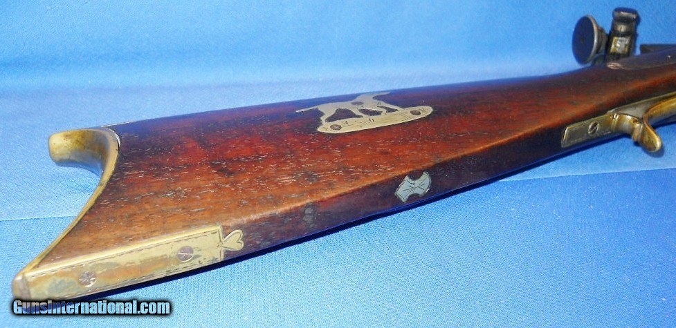 Description: ANTIQUE .41 CALIBER PERCUSSION SPORTING RIFLE MID 19th CENTURY STOCK WITH A "TURNER KIRKLAND" 34" BARREL, (DIXIE GUN WORKS FOUNDER) INSTALLED. FINE STRONG BORE. FITTED WITH REDFIELD REAR & GLOBE FRONT SIGHTS. WALNUT STOCK IN VERY GOOD CONDITION HAVING FOLKY LOOKING GERMAN SILVER INLAYS. LOCK MARKED "LONDON" IN FINE WORKING ORDER WITH 2 CLICK HAMMER THAT HOLDS SAFETY COCK. VERY INTERESTING AND POSSIBLY QUITE ACCURATE FIREARM, NO RAMROD, AS PICTURED. "NO FLUFF, JUST FAIRLY PRICED STUFF" SHIPS DIRECT TO U.S. BUYER ANYWHERE THAT'S OK. NO DEALER NECESSARY. $45.00 S&H PRIORITY INSURED. AK or HI $50.00 SOLD Antique: Yes Caliber Info: .41 Bore: STRONG RIFLING Condition: VERY GOOD AS PICTURED Wood Condition: VERY GOOD Bore Condition: NEAR EXCELLENT Barrel Type: OCTAGON LOP: 12 3/4 Weight: 9 LBS. Sights: TARGET |