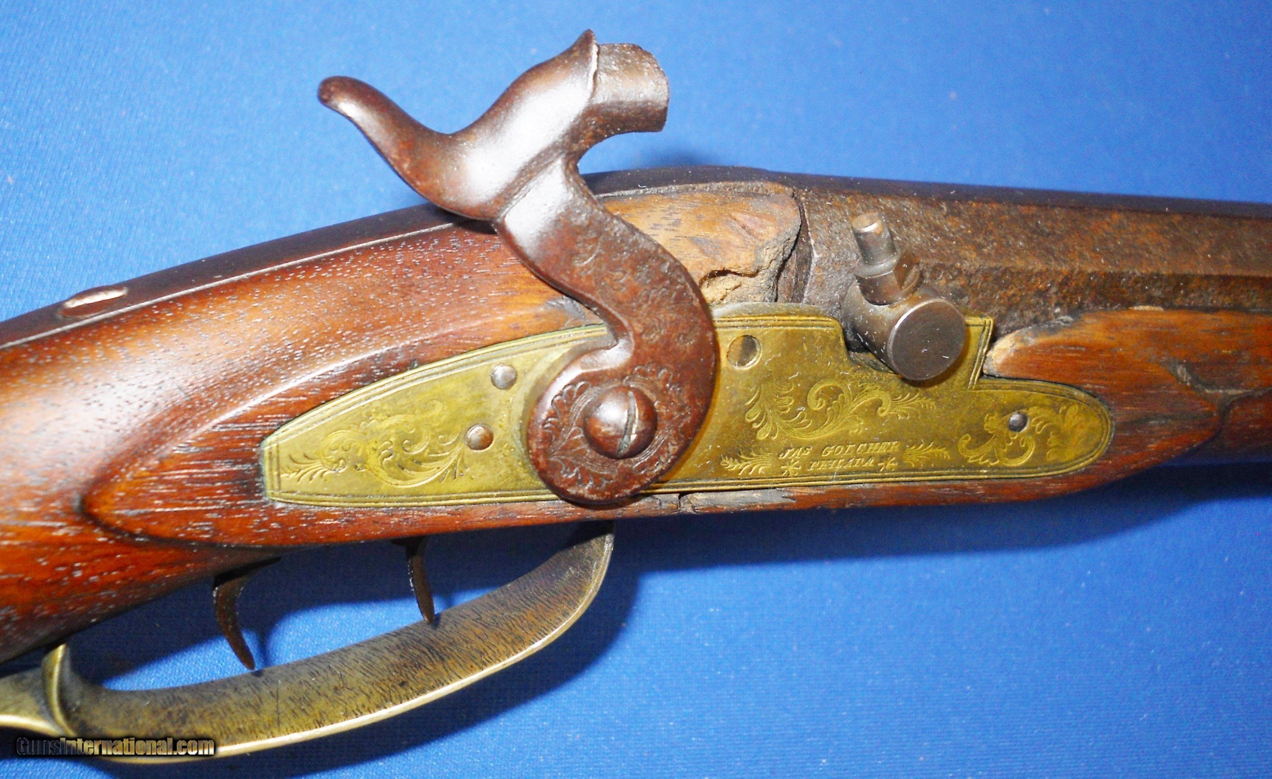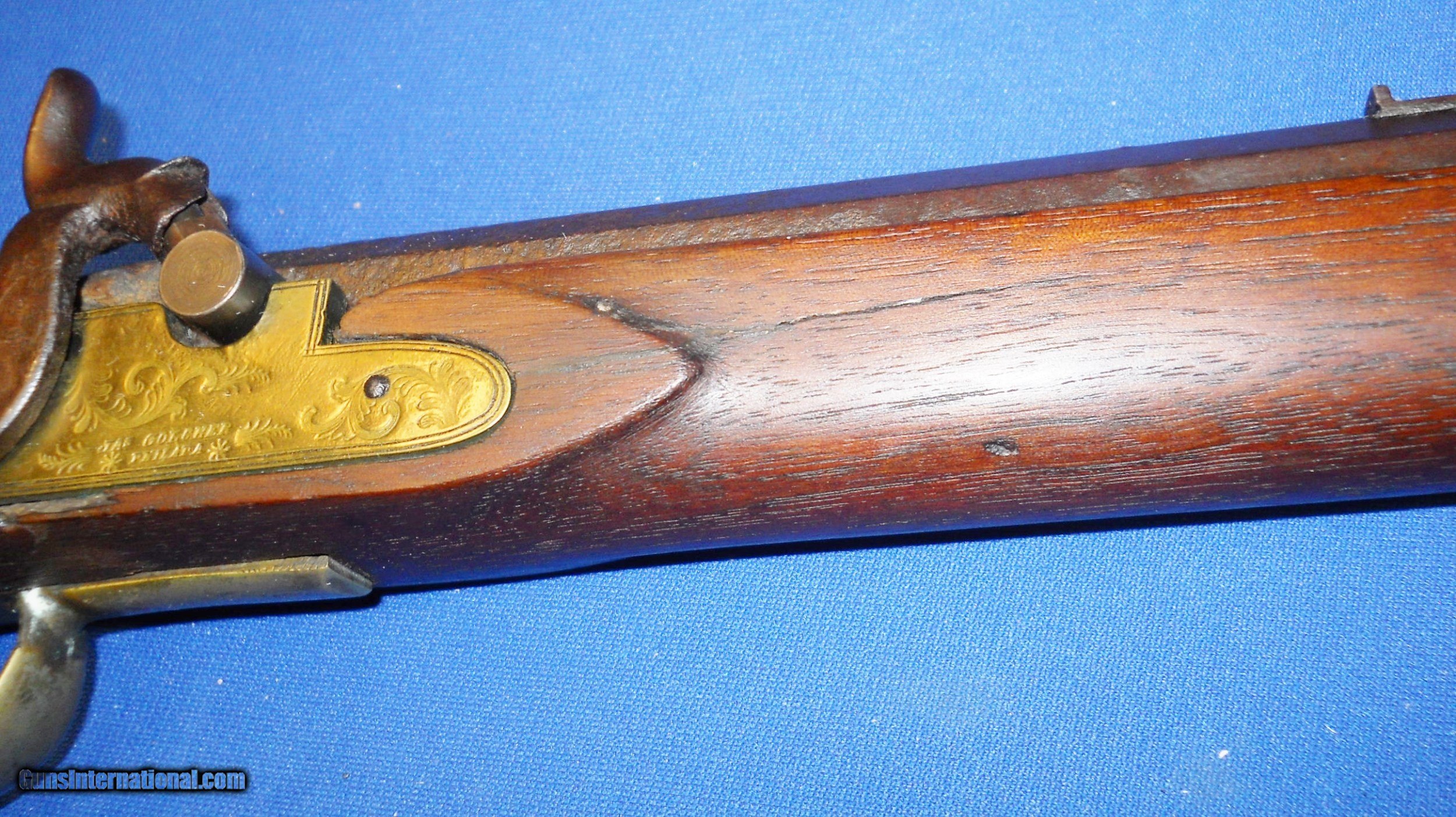 * Antique JAMES GOLCHER PA FULL STOCK PERCUSSION SPORTING RIFLE 50 CAL