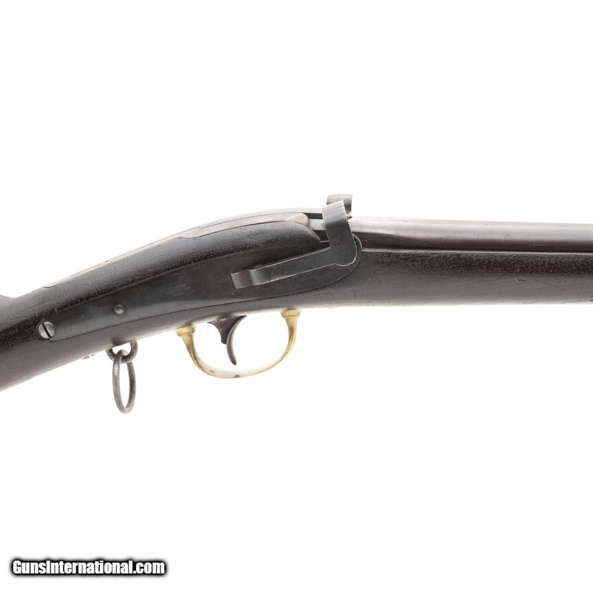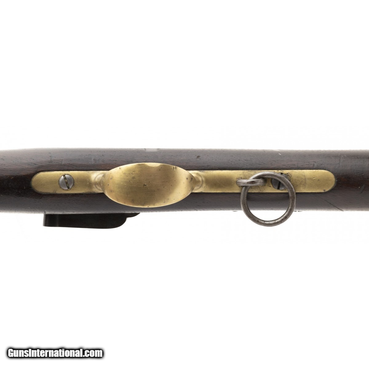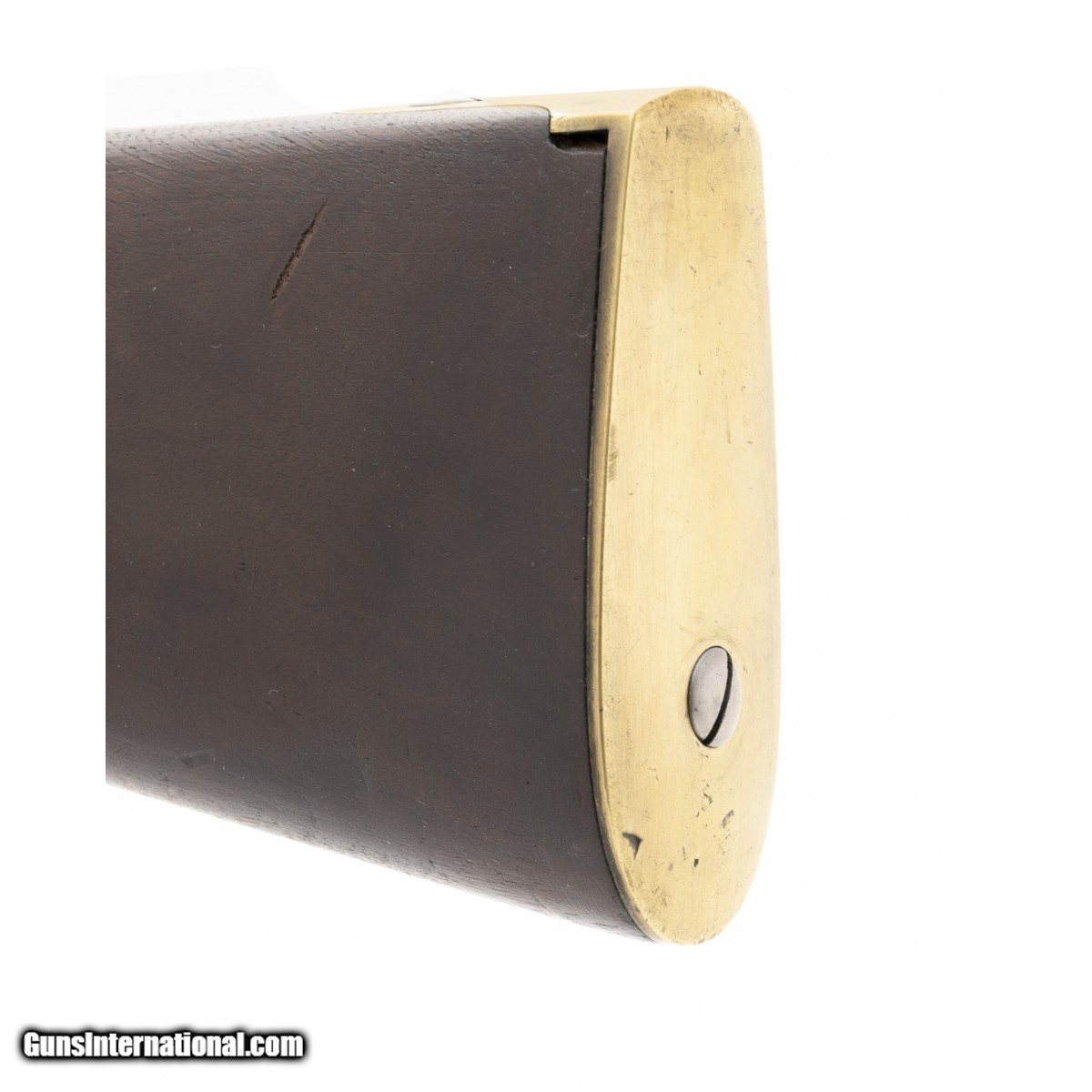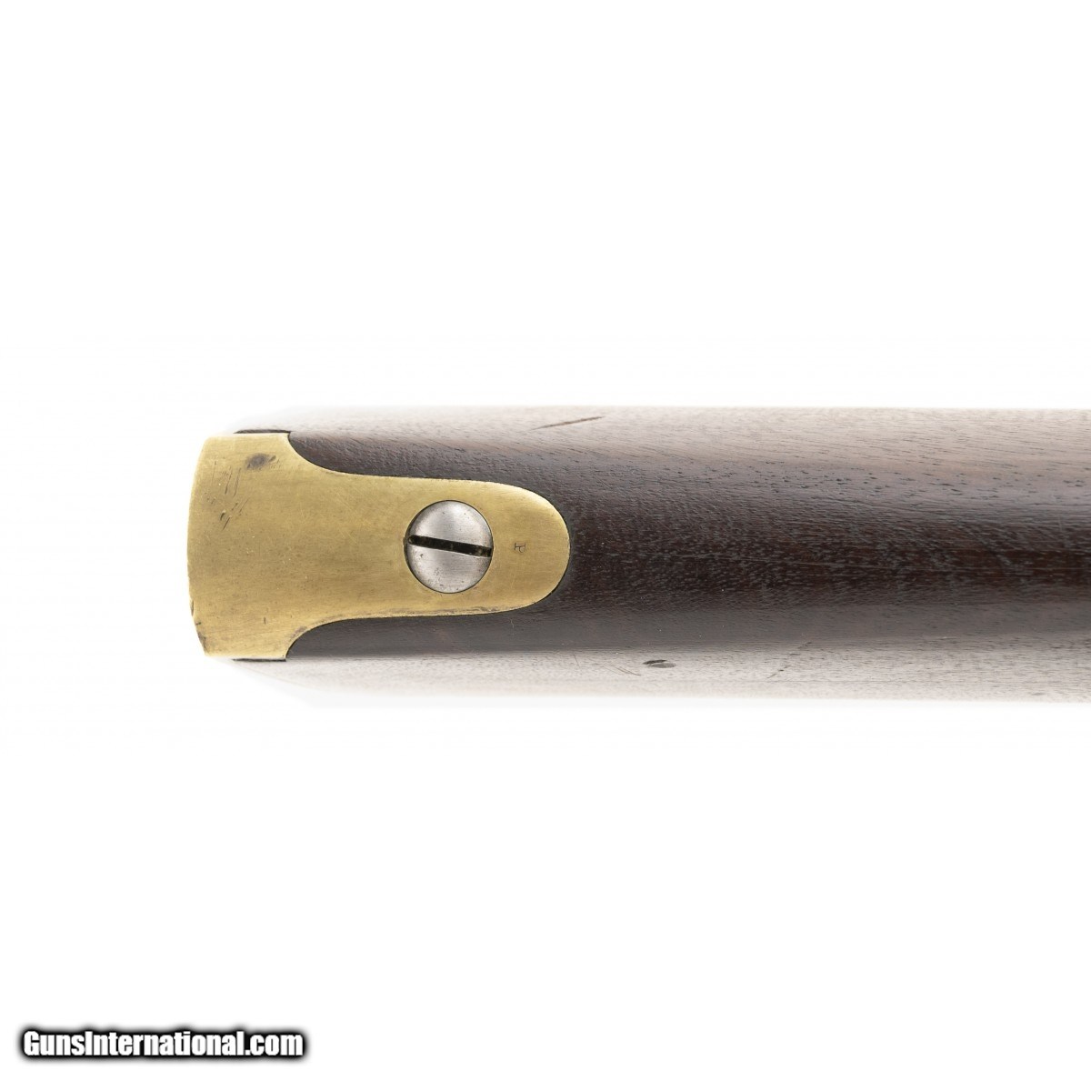 Description: " The N.P. Ames company of Springfield, MA, manufactured approx. 4,250 Jenks carbines for the U.S. Navy between 1843 and 1846. This is a standard configuration Ames-manufactured 54 caliber percussion sidehammer breechloading ""mule ear"" Jenks carbine in very fine condition. The 24.25"" round barrel has an excellent rifled bore. The barrel retains approx. 95% of its original brown finish. It is marked at the breech W. JENKS (very small letters) over USN over RP over P over 1845. The lock plate, which retains all its blue finish, is marked N.P. AMES over SPRINGFILED over MASS. The side hammer has a little edge wear to its blue. The loading lever has approx. 95% of its blue with the remainder turning plum. The brass bands, trigger guard, and butt plate are fine. The sling ring is present on the rear trigger guard tang. The stock is very good with RP (slight mar through it) and JL cartouches, no cracks or chips, a storage dent on the left above the trigger, and a scrape above that. There are no cracks or chips. The action functions correctly. This very nice Mexican and Civil War firearm is ready for a naval, Mexican War, or Civil War collection. It's a cut above most that you will see. SOLD Antique: Yes |