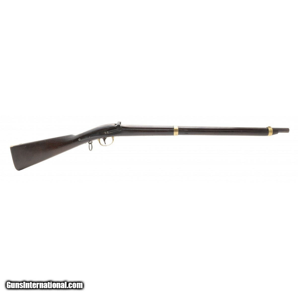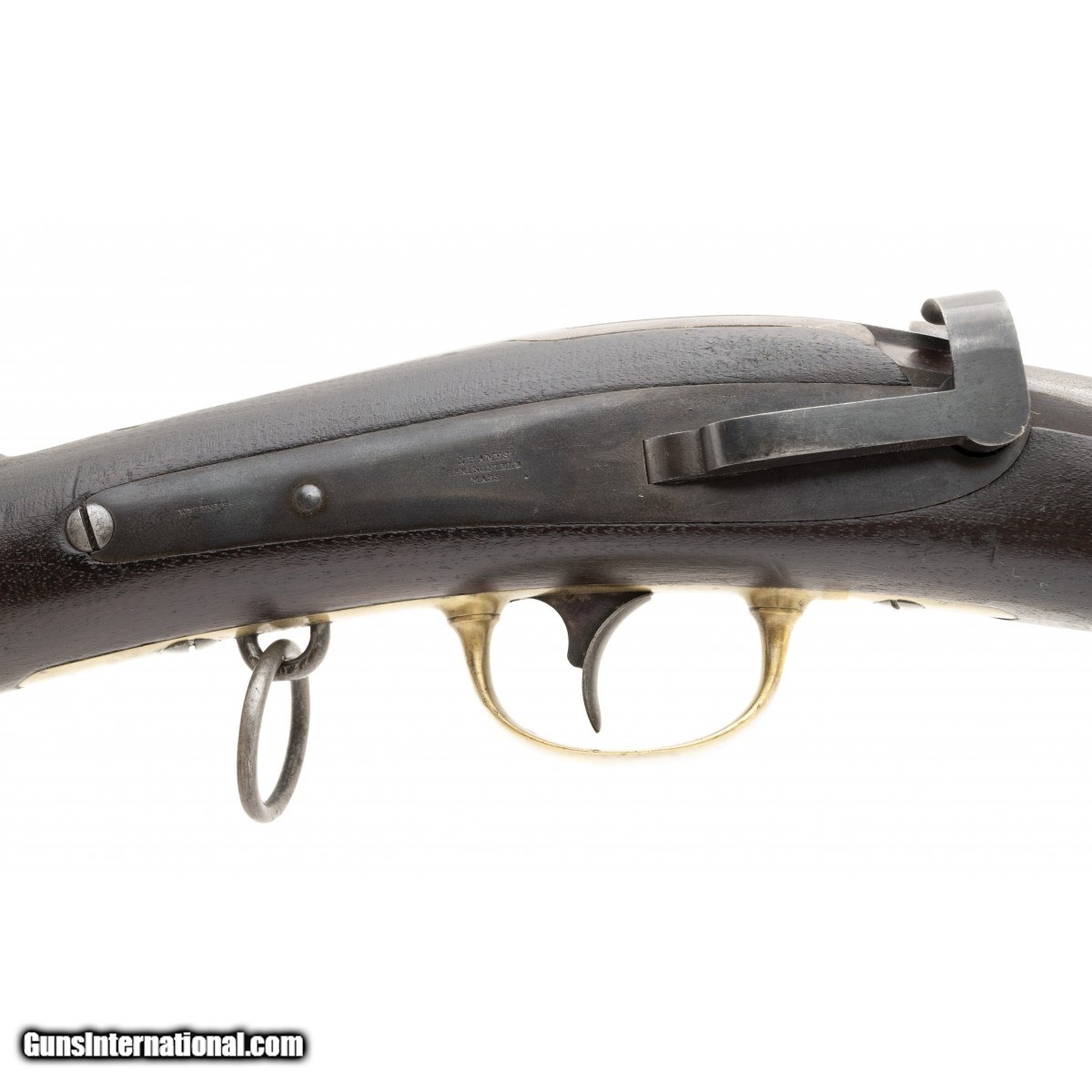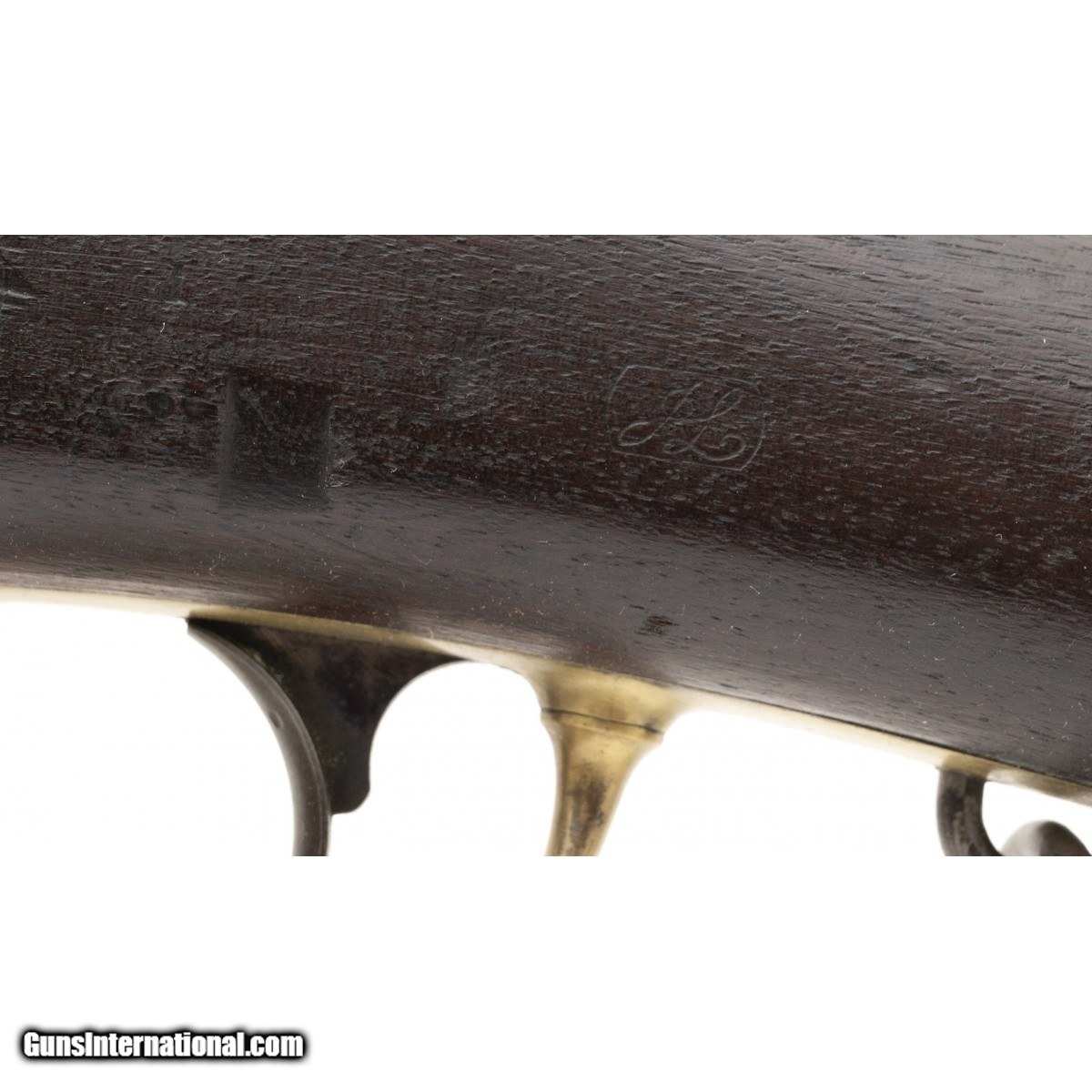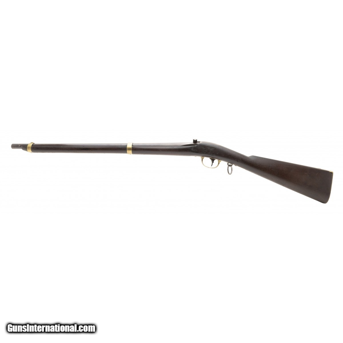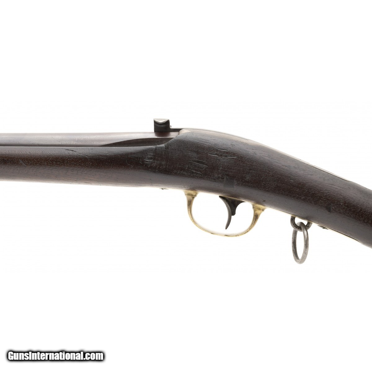 Description: " The N.P. Ames company of Springfield, MA, manufactured approx. 4,250 Jenks carbines for the U.S. Navy between 1843 and 1846. This is a standard configuration Ames-manufactured 54 caliber percussion sidehammer breechloading ""mule ear"" Jenks carbine in very fine condition. The 24.25"" round barrel has an excellent rifled bore. The barrel retains approx. 95% of its original brown finish. It is marked at the breech W. JENKS (very small letters) over USN over RP over P over 1845. The lock plate, which retains all its blue finish, is marked N.P. AMES over SPRINGFILED over MASS. The side hammer has a little edge wear to its blue. The loading lever has approx. 95% of its blue with the remainder turning plum. The brass bands, trigger guard, and butt plate are fine. The sling ring is present on the rear trigger guard tang. The stock is very good with RP (slight mar through it) and JL cartouches, no cracks or chips, a storage dent on the left above the trigger, and a scrape above that. There are no cracks or chips. The action functions correctly. This very nice Mexican and Civil War firearm is ready for a naval, Mexican War, or Civil War collection. It's a cut above most that you will see. SOLD Antique: Yes |