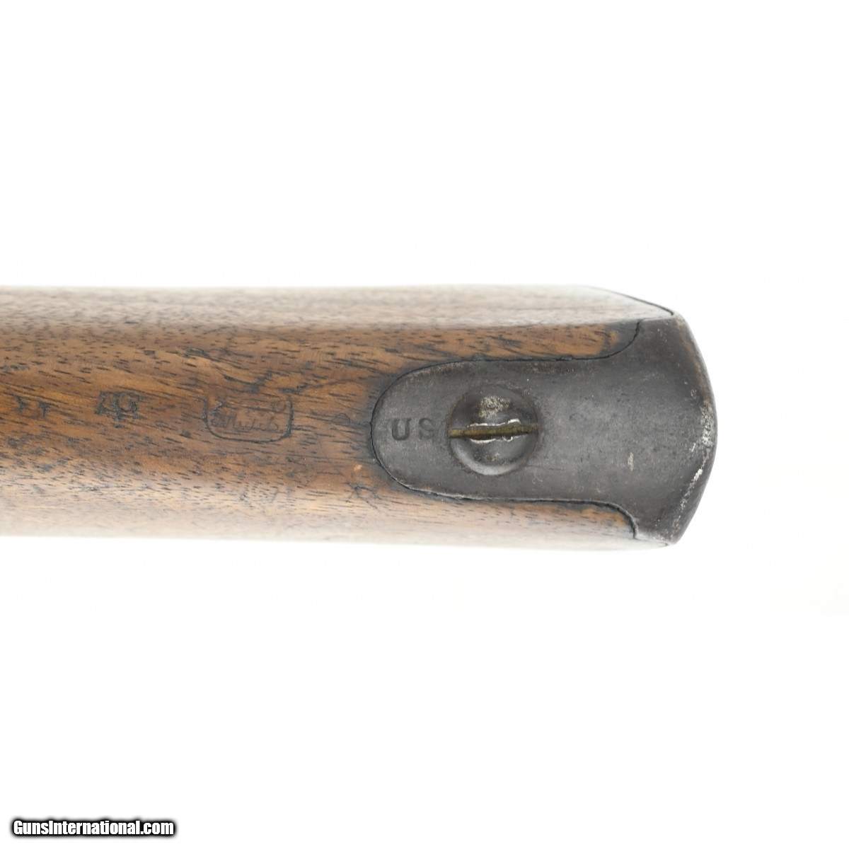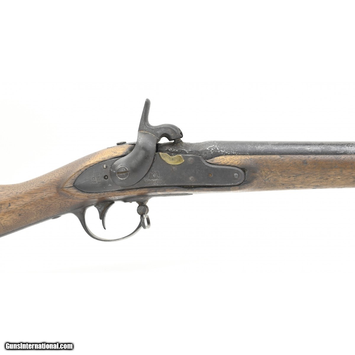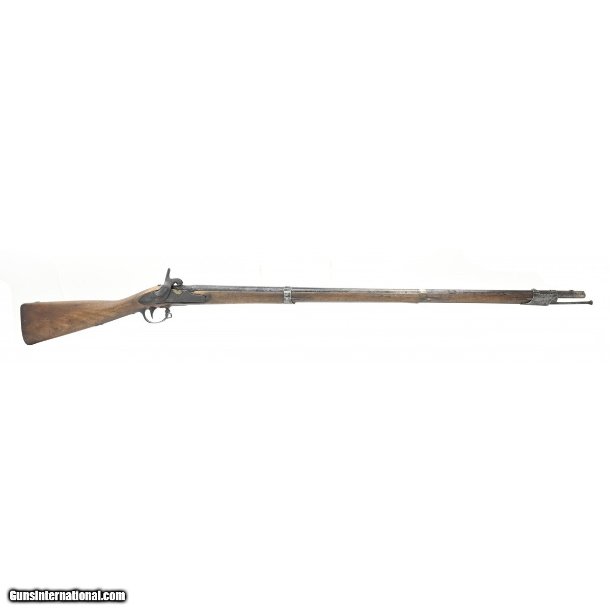 Description: "Arsenal cone in barrel (Belgian) alteration of a U.S. Model 1816 Musket to Percussion. 42" Round .69 caliber smoothbore barrel with poor bore. Musket was made by L. Pomeroy in 1838. Metal is fair overall with a smooth dark finish, loss of metal at the muzzle and an amazing amount of erosion around the nipple, to the point that some of its threads are exposed. This gun is not safe to shoot. The middle band is absent. The stock is good with wood loss to the front and rear of the nipple. The “JH" cartouche is easily seen. Acton functions correctly. This musket obviously saw extensive Civil War service. If it could only talk! This gun, because of it heavy use, could provide hours of conversation and speculation. We have never seen this much erosion on a gun, a statement to its extremely heavy use. SOLD Antique: Yes |