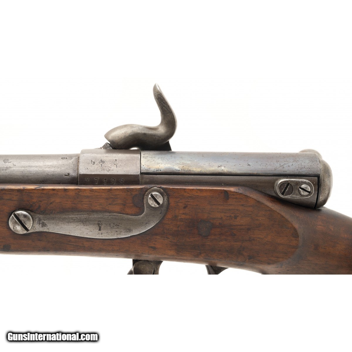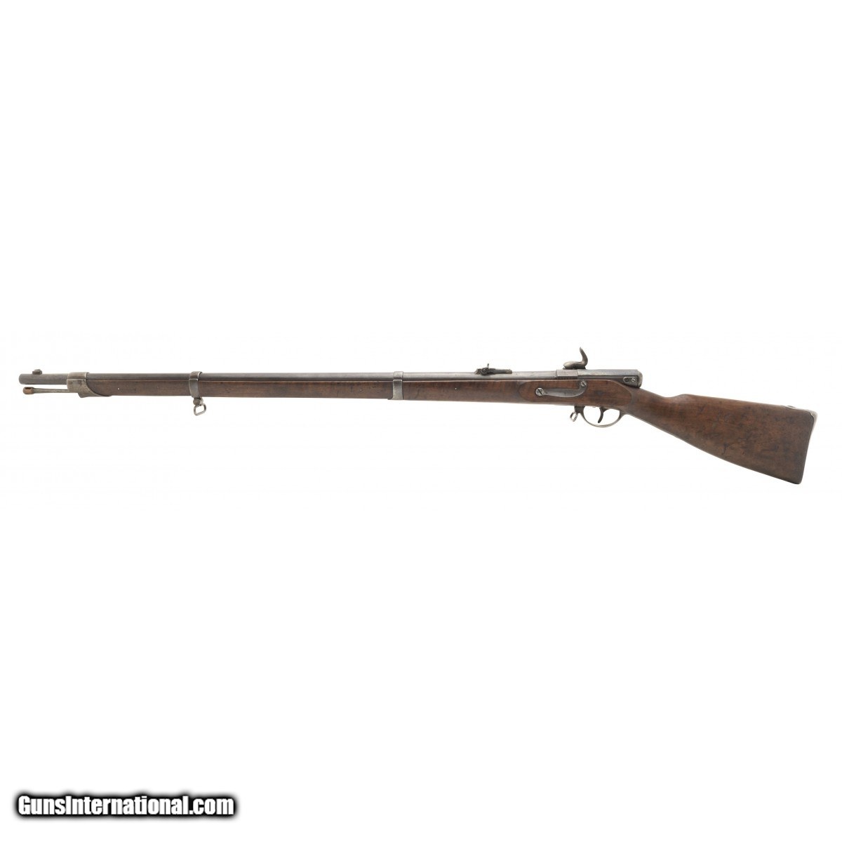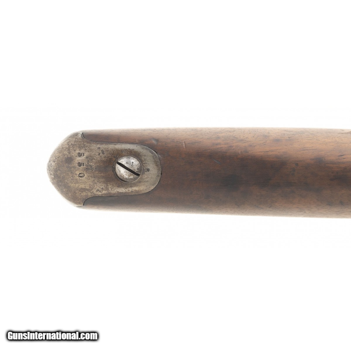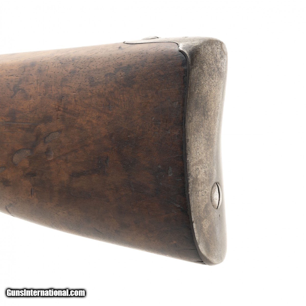 Description: " The main Bavarian rifle of the 1870 Franco-Prussian war was the 13.9mm percussion M1858/67 Podewils-Linsner rifle musket. Starting in 1869, it was being replaced by the Werder breechloader but only four regiments had the newer Werder during the war. The Podewils-Lindner started out as the percuswsion Model 1858 Podewils rifle which was altered to a percussion breech-loading bolt action using the Lindner conversion. It used a paper cartridge with a heavy lubricated base with a percussion cap. The soldier removed the cap and placed it on the nipple. The breech opened with a quarter turn of the bolt handle that was then pulled to the rear. The cartridge was loaded and the bolt was pushed forward and turned down to lock the action. When the rifle was fired the lubricated base was supposed to expand to seal the action. When the next cartridge was loaded the bullet pushed the lubed base into the bore which would scrub it with the next shot. The Podewils-Lindner was in use for only a few years as it was considered inferior to the German Dreyse and French Chassepot needle guns. The overall length si approx. 51.5"". The round approx. 36"" barrel has a very good bore with strong rifling and scattered areas of roughness. The metal has a smooth brown patina. The lock is marked AMBERG 1866 in an arc over a crown with parts being very light. The barrel and receiver have matching serial numbers. The receiver has three Bavarian inspection stamps on the left side. The stock is very good with no cracks or chips, issue dents and dings, a crown inspection staqmp on the right side of the butt and, possibly, another crown stamp on the left flat. The swivels and original ramrod are present. The action functions correctly. This is a nice example of an early bolt action rifle-musket that is rarely seen on the collector market. A good reference on the Podewils is ""Military Bolt Action Rifles 1841-1918"" by Donald B. Webster. SOLD Antique: Yes |