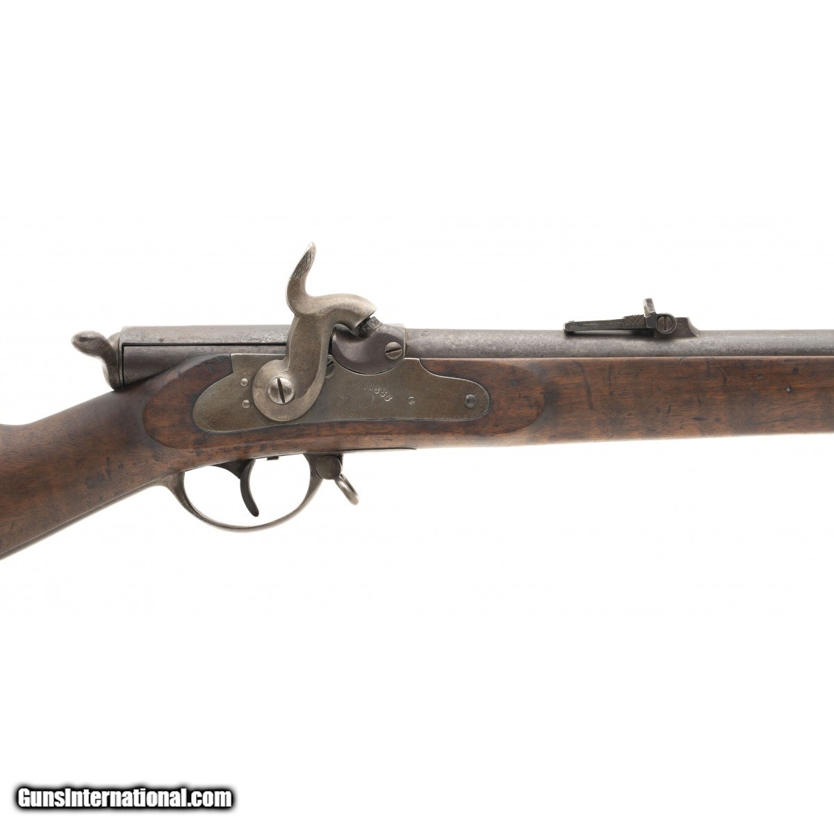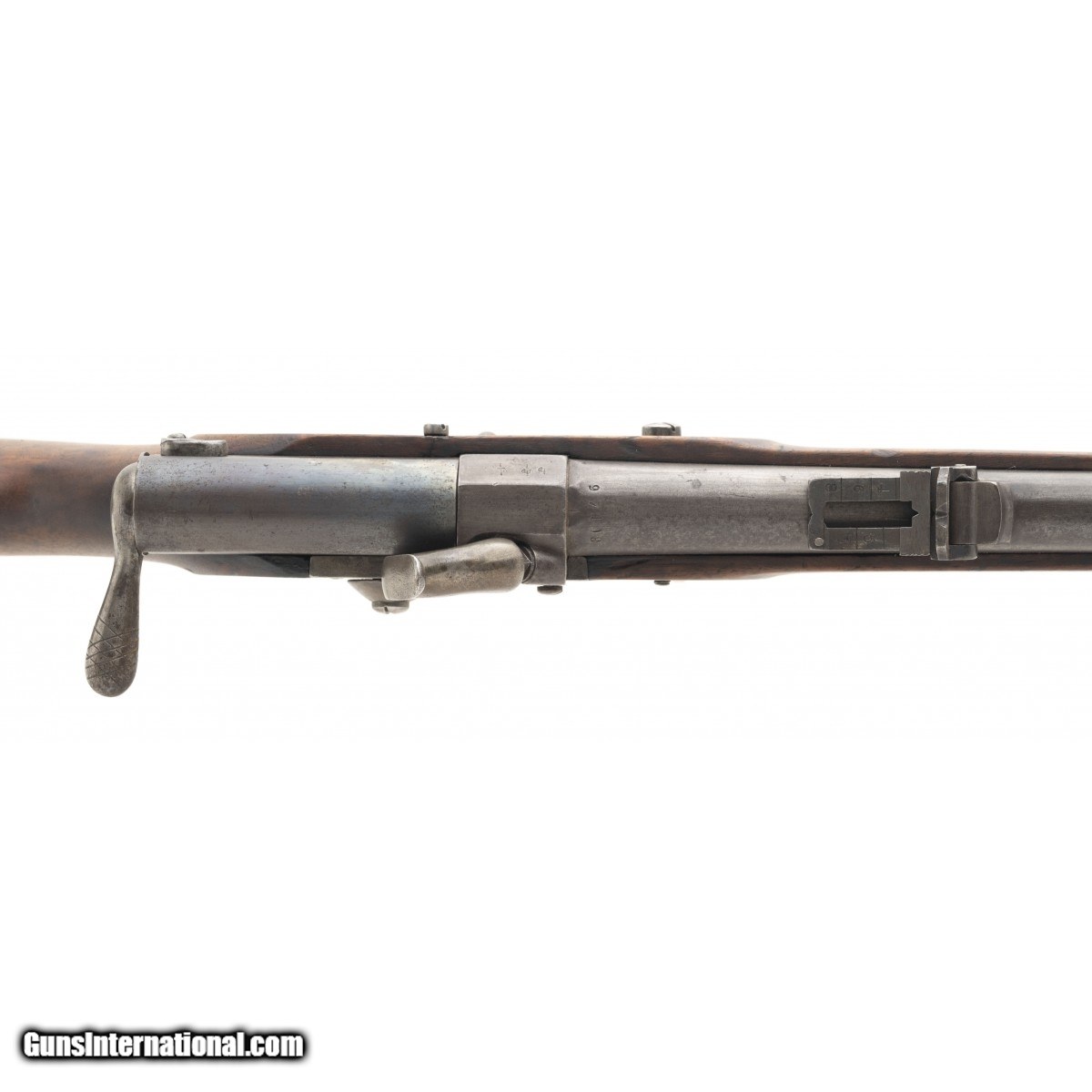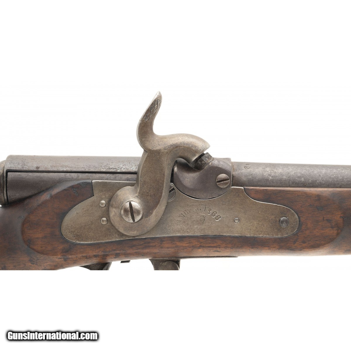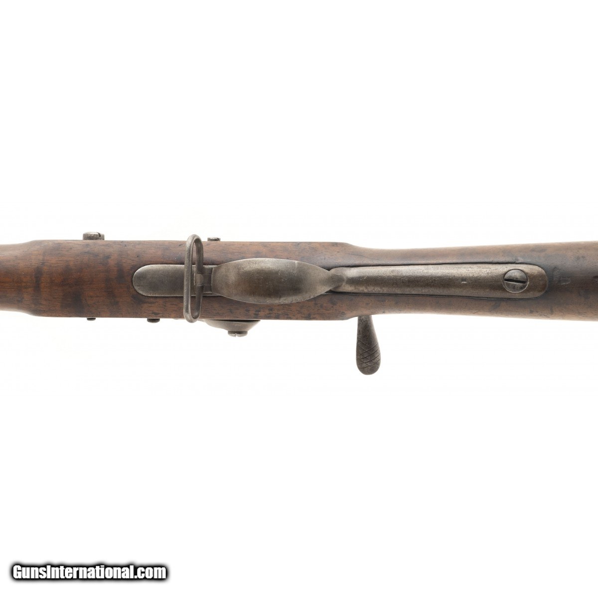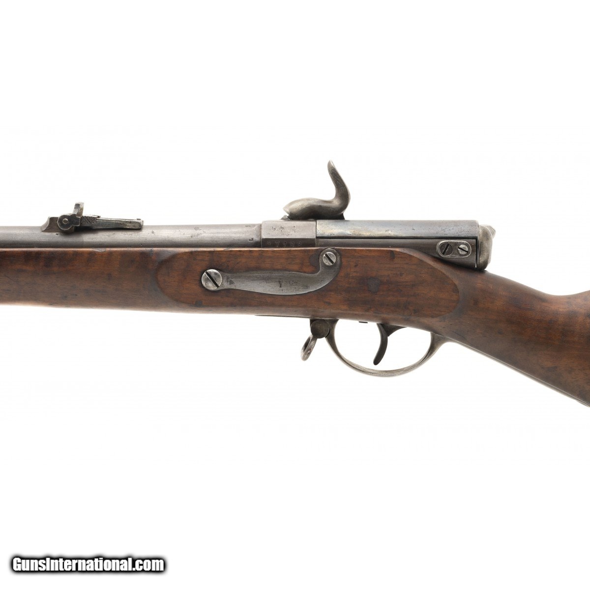 Description: " The main Bavarian rifle of the 1870 Franco-Prussian war was the 13.9mm percussion M1858/67 Podewils-Linsner rifle musket. Starting in 1869, it was being replaced by the Werder breechloader but only four regiments had the newer Werder during the war. The Podewils-Lindner started out as the percuswsion Model 1858 Podewils rifle which was altered to a percussion breech-loading bolt action using the Lindner conversion. It used a paper cartridge with a heavy lubricated base with a percussion cap. The soldier removed the cap and placed it on the nipple. The breech opened with a quarter turn of the bolt handle that was then pulled to the rear. The cartridge was loaded and the bolt was pushed forward and turned down to lock the action. When the rifle was fired the lubricated base was supposed to expand to seal the action. When the next cartridge was loaded the bullet pushed the lubed base into the bore which would scrub it with the next shot. The Podewils-Lindner was in use for only a few years as it was considered inferior to the German Dreyse and French Chassepot needle guns. The overall length si approx. 51.5"". The round approx. 36"" barrel has a very good bore with strong rifling and scattered areas of roughness. The metal has a smooth brown patina. The lock is marked AMBERG 1866 in an arc over a crown with parts being very light. The barrel and receiver have matching serial numbers. The receiver has three Bavarian inspection stamps on the left side. The stock is very good with no cracks or chips, issue dents and dings, a crown inspection staqmp on the right side of the butt and, possibly, another crown stamp on the left flat. The swivels and original ramrod are present. The action functions correctly. This is a nice example of an early bolt action rifle-musket that is rarely seen on the collector market. A good reference on the Podewils is ""Military Bolt Action Rifles 1841-1918"" by Donald B. Webster. SOLD Antique: Yes |