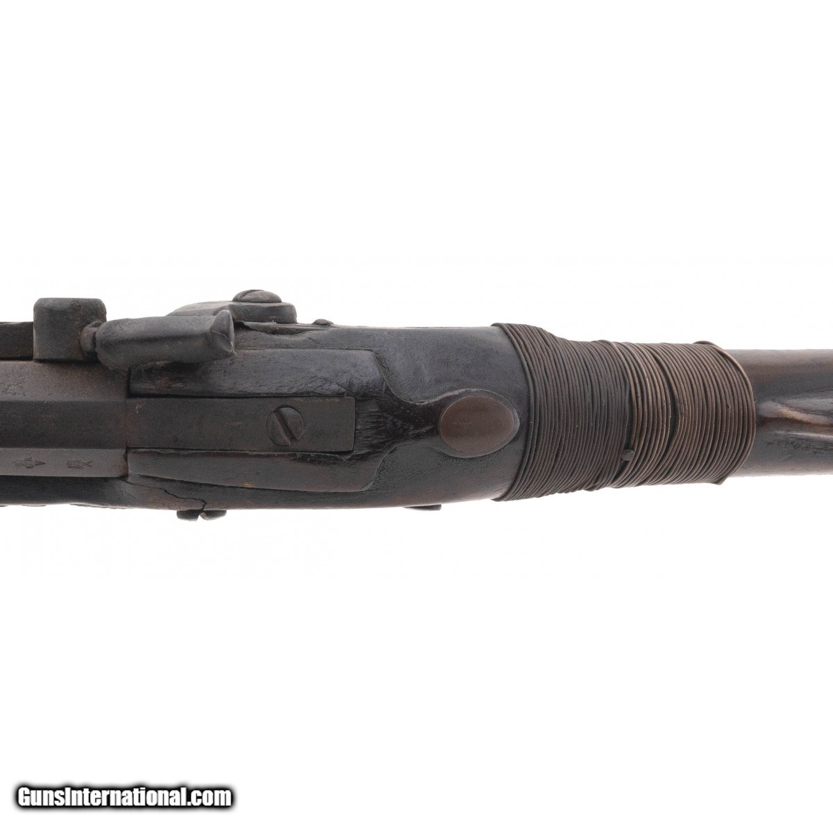 .60 caliber 36.75"" octagonal to round barrel Board of Ordnance altered Trade Gun by Galton. Metal is a dark brown patina with scattered surface oxidation noted, drum bolster shows minor pitting. Wood is good with handling and usage wear noted. Stock is marked with C/I Broad Arrow/D this most likely is attributed to the Canadian Indian Department. Wrist is wrapped in wire, Action functions correctly. Galton is one of the rare contract guns made for the War of 1812. A scarce Native trade gun!