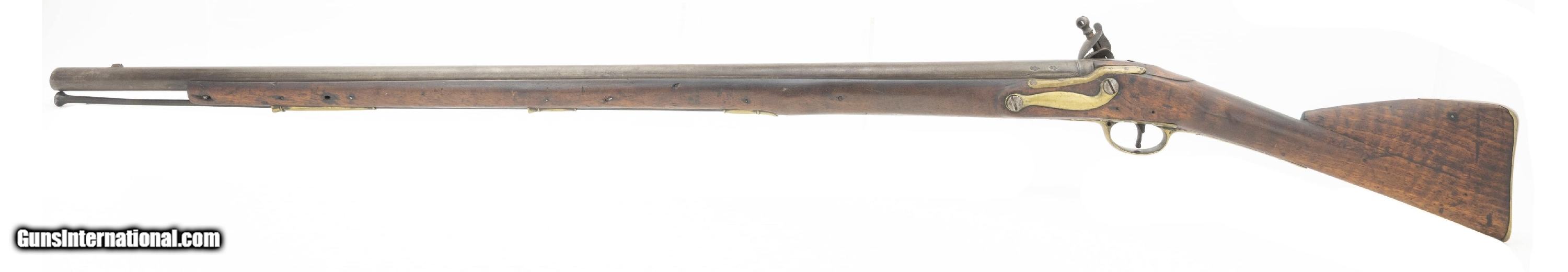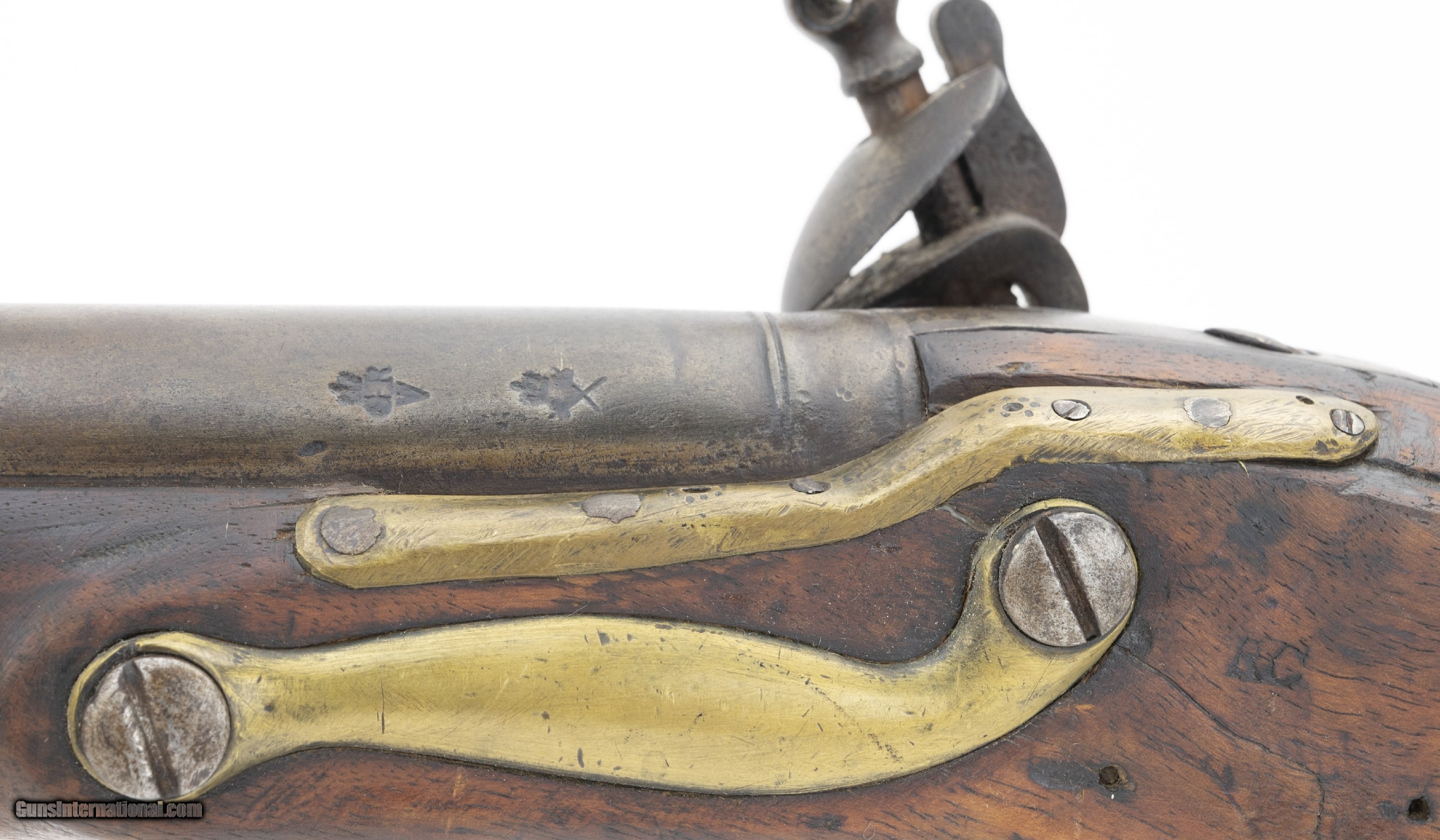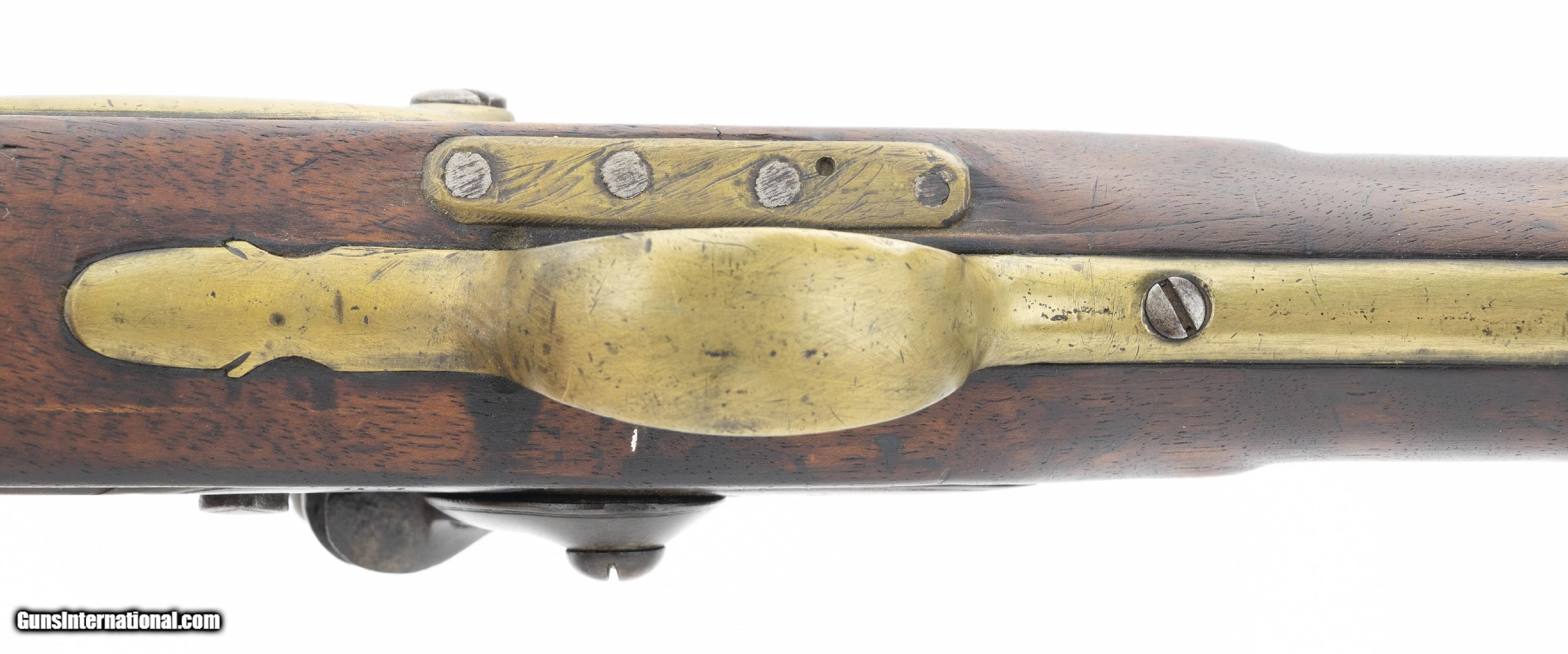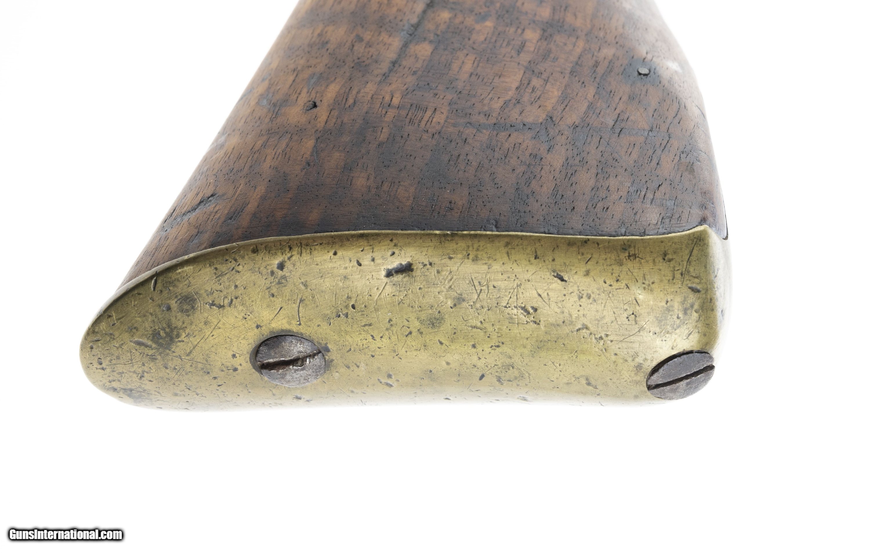 Description: "NSN, circa 1800's, .75 caliber, 39"" round smooth bore barrel. This alteration uses the original cock which would have held a metal striker in the jams to strike the percussion cap. Barrel has a good bore. Metal is a smooth brown patina. The lock is marked “Tower" with crown/ “GR" in the center and crown/ broad arrow to the right. Below that, it is marked “R.&R.S." The barrel has the usual military proofs. The stock is good with “RC" on the left flat and a period repaired crack on the left from the trigger to the breech. This repair brass reinforcements at the top and bottom. The forend appears to have been slightly shortened. Action functions correctly. (DALLAS LOCATION) Antique: Yes Price: $1,695.00 Contact Seller |