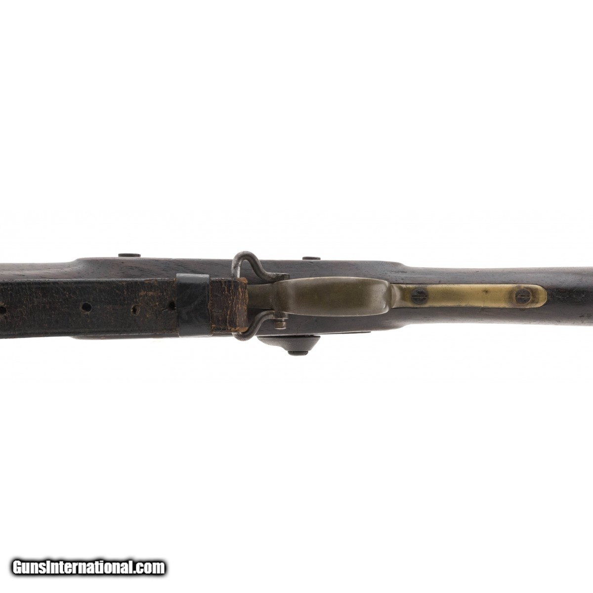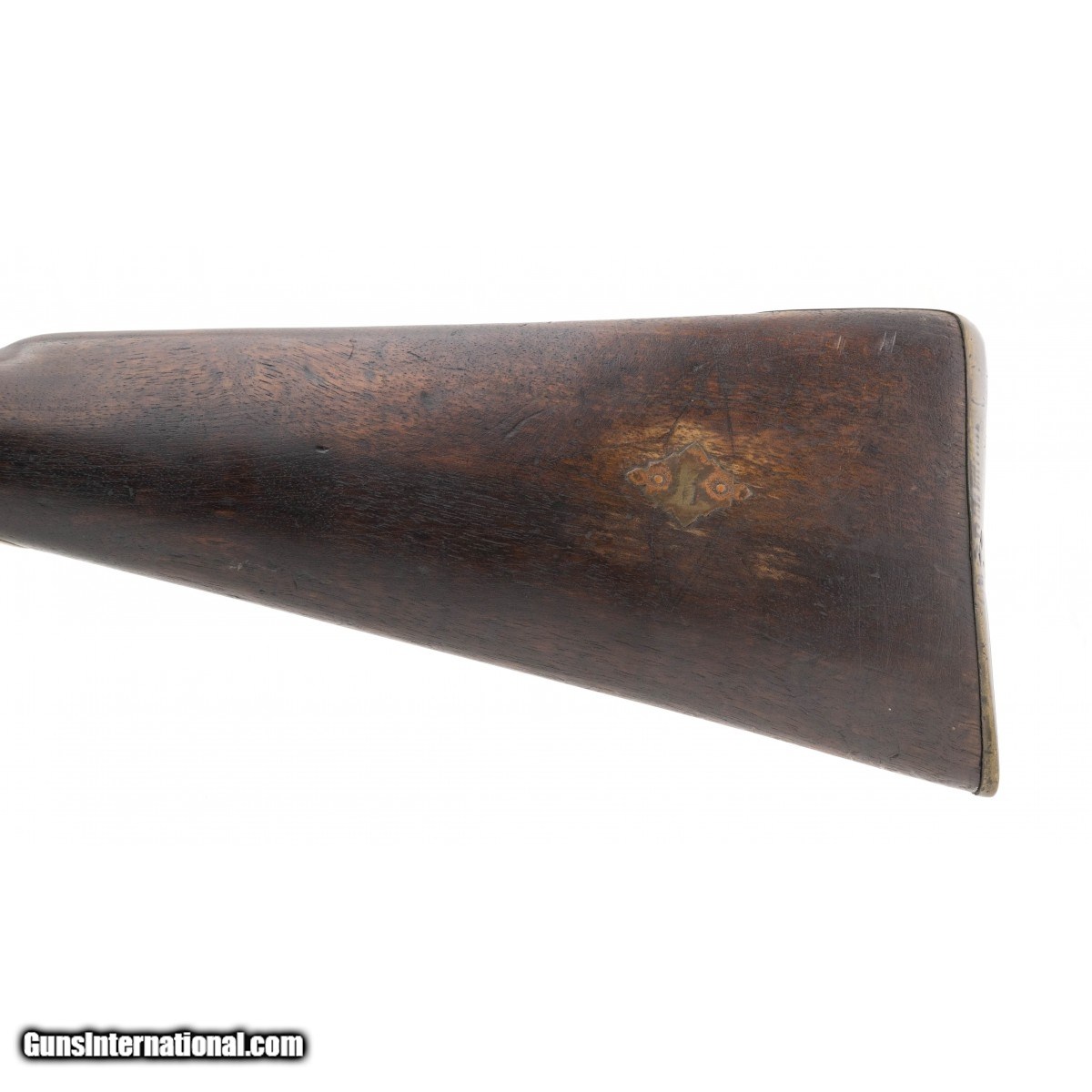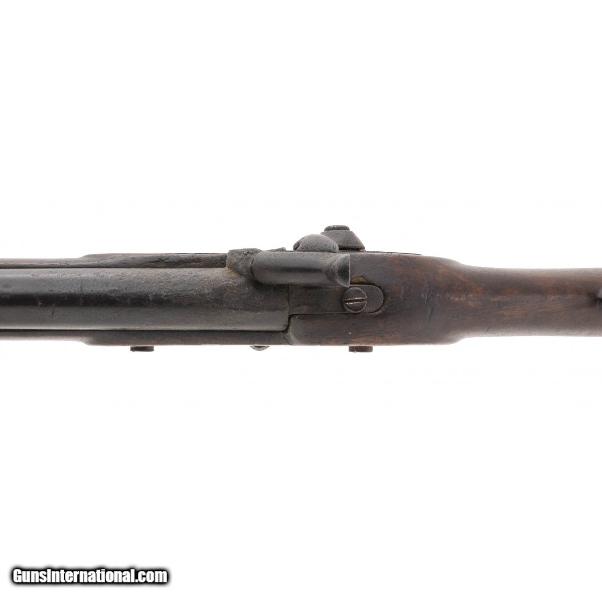 British Pattern 1853 Enfield musket with that Civil War look to it. Metal has a dark aged patina. Wood shows usage and wear with some loss by the nipple. This is expected from a musket with heavy use. Faint traces of rifling remain.