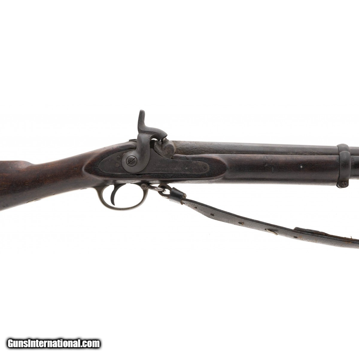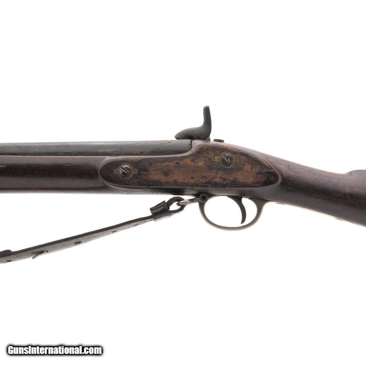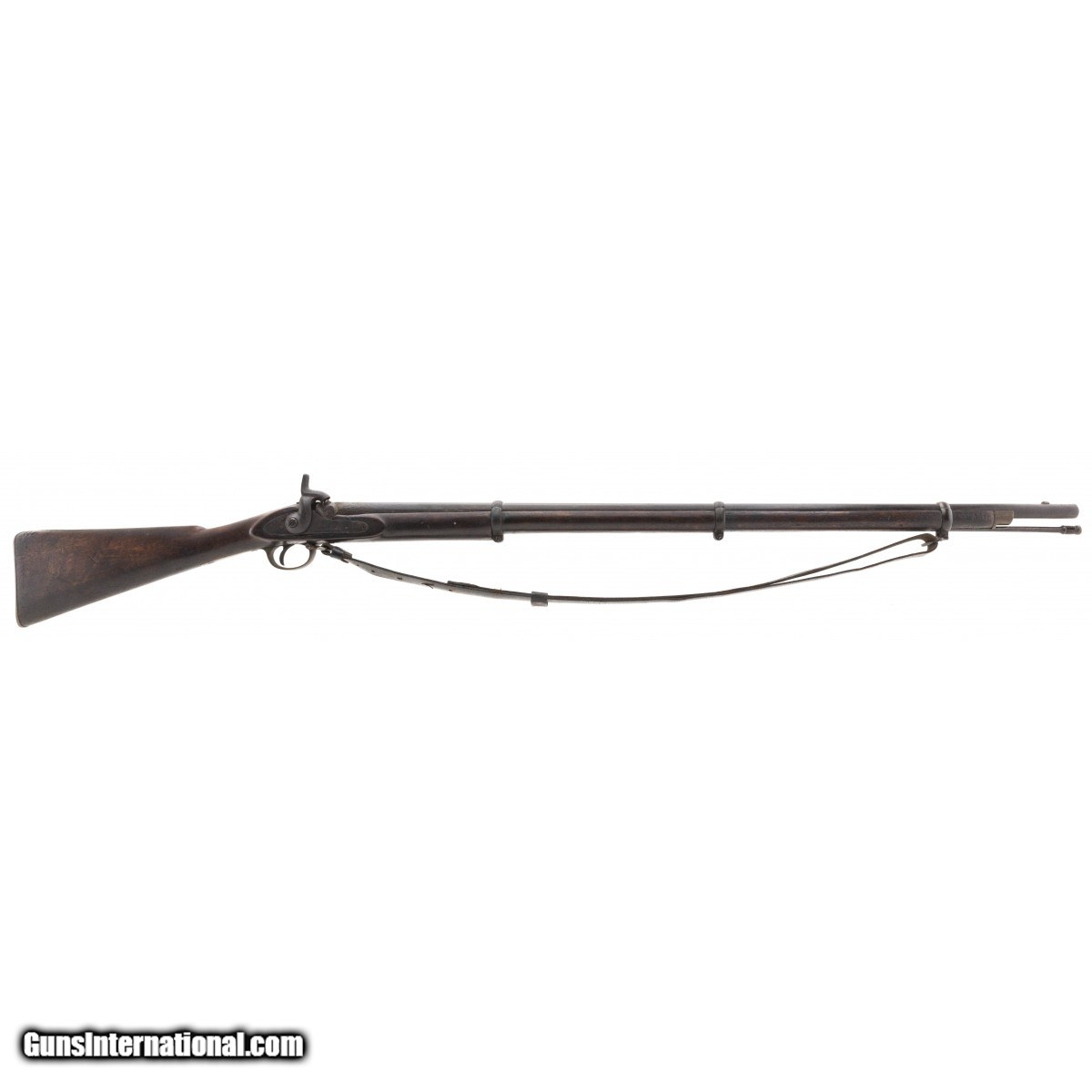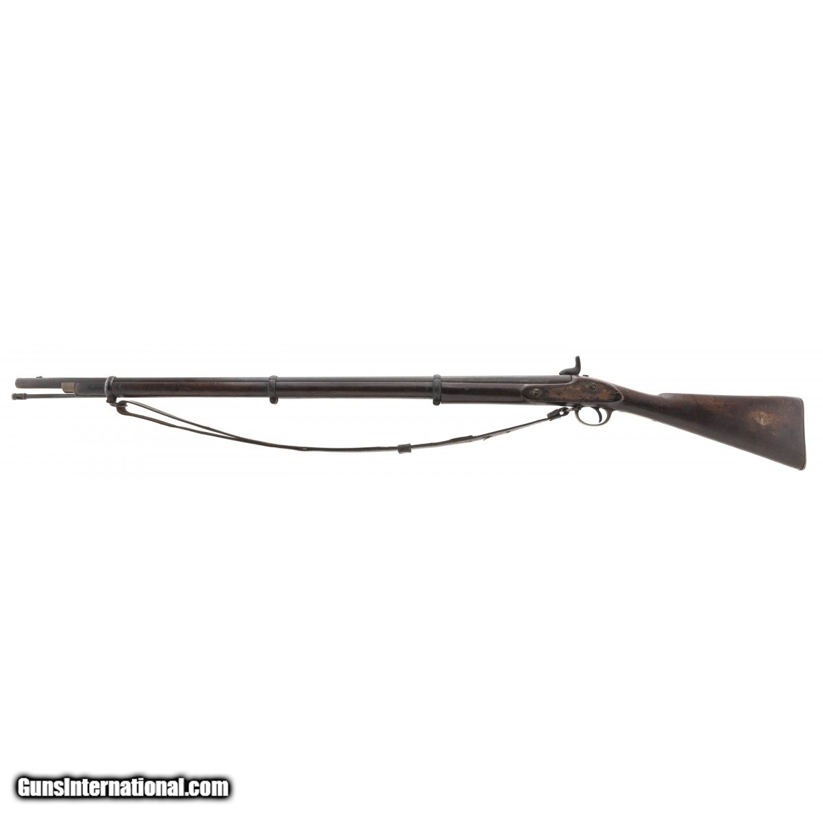 Description: " British Pattern 1853 Enfield musket with that Civil War look to it. Metal has a dark aged patina. Wood shows usage and wear with some loss by the nipple. This is expected from a musket with heavy use. Faint traces of rifling remain. SOLD Antique: Yes |