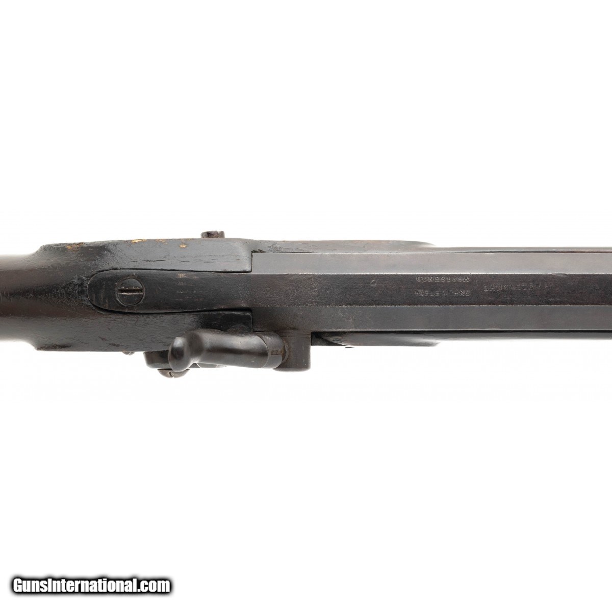 Description: "Made circa 1860s-1870s. 50 caliber with a 37" barrel. This is a very sharp gun and well above average condition. Both the Conestoga Rifle Works markings are visible and legible on both the top of the barrel and the lock. The barrel is nice and sharp with a dark brown barrel. The wood is very good. The Conestoga Rifle Works was a 2nd label by Henry Leman. Very nice Conestoga Rifle Works Plains Rifle! SOLD Antique: Yes |