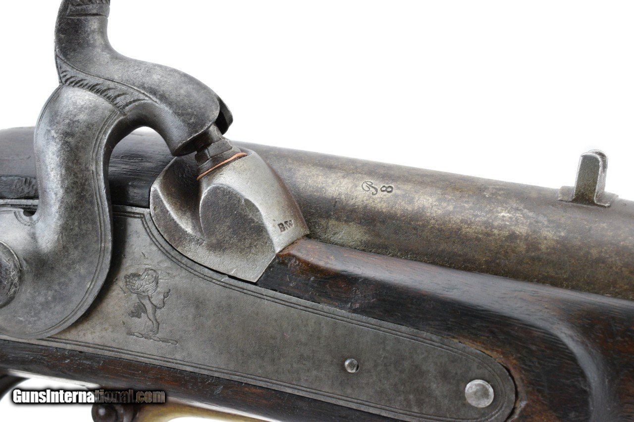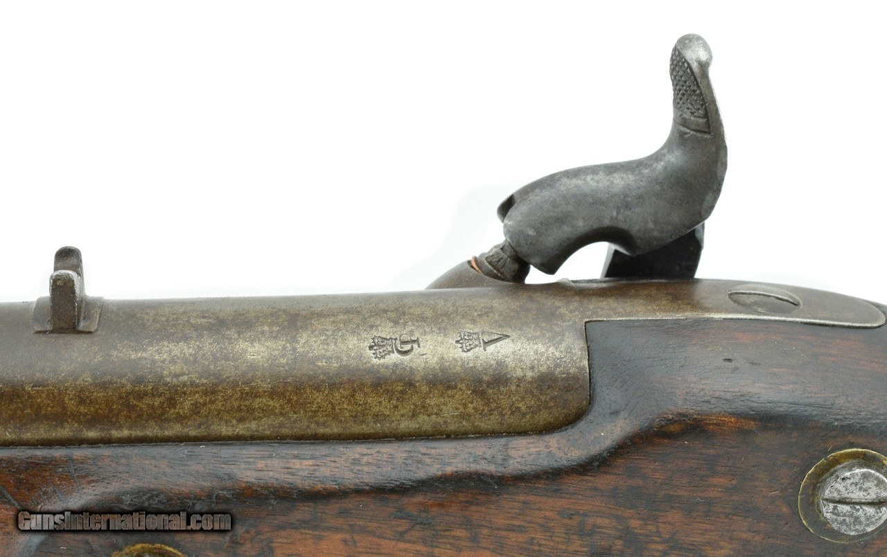 Description: "NSN, circa 1840-1850's, .75 caliber 39"" round smooth bore barrel. Bore has oxidation visible throughout. Barrel and lock plate have turned to a brown/grey patina. Arsenal markings remain sharp. Lock plate is marked with lion forward of the hammer. Stock has expected nicks. dings and scratches present. Action holds at half and full cock. (DALLAS LOCATION) Antique: Yes Price: $1,695.00 Contact Seller |