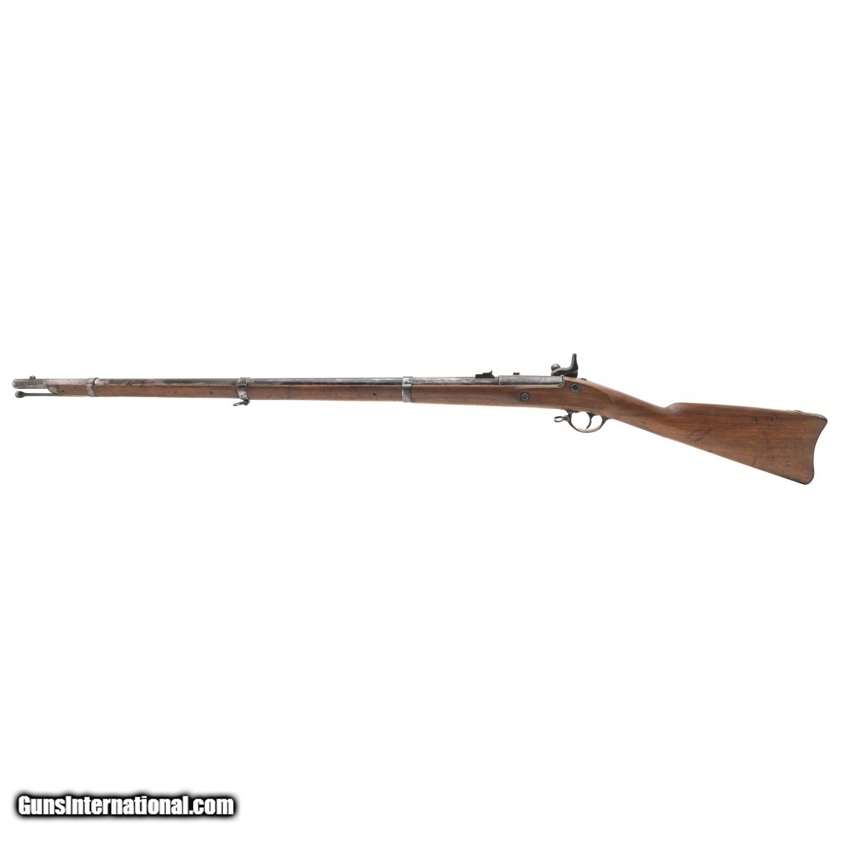 NSN, made in 1864, converted circa 1869, .58CF, 36 5/8"" round rifled barrel. Musket was converted in Trenton, NJ and used by the Fenian Brotherhood who was an Irish-American secret society who wanted to invade Canada in 1870. Metal and iron parts are a dark patina with scattered mottled surface oxidation visible. Stock has been lightly cleaned at some point with a small crack visible forward of breech. Bore is good with frosting noted in the grooves. A ""V"" cut splice under mid band. This is a clear indication of the Fenian Brotherhood.