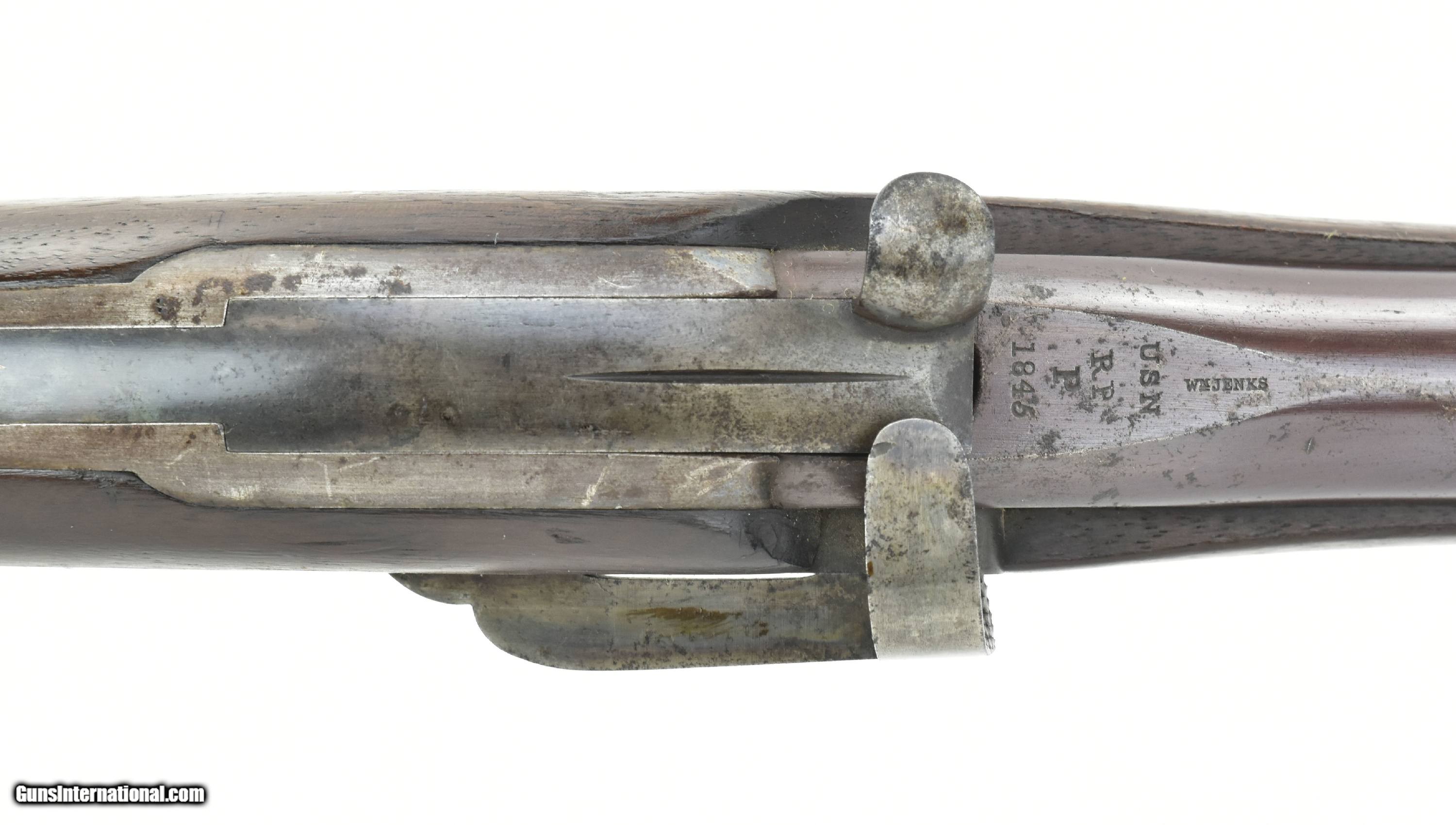 Description: "Jenks “Mule Ear" saddle ring carbine. Excellent condition with most of the factory arsenal brown on the barrel. Wood is very fine with visible cartouches. Lock has traces of the case colors, but is mostly gray. Antique: Yes Price: $4,500.00 Contact Seller |