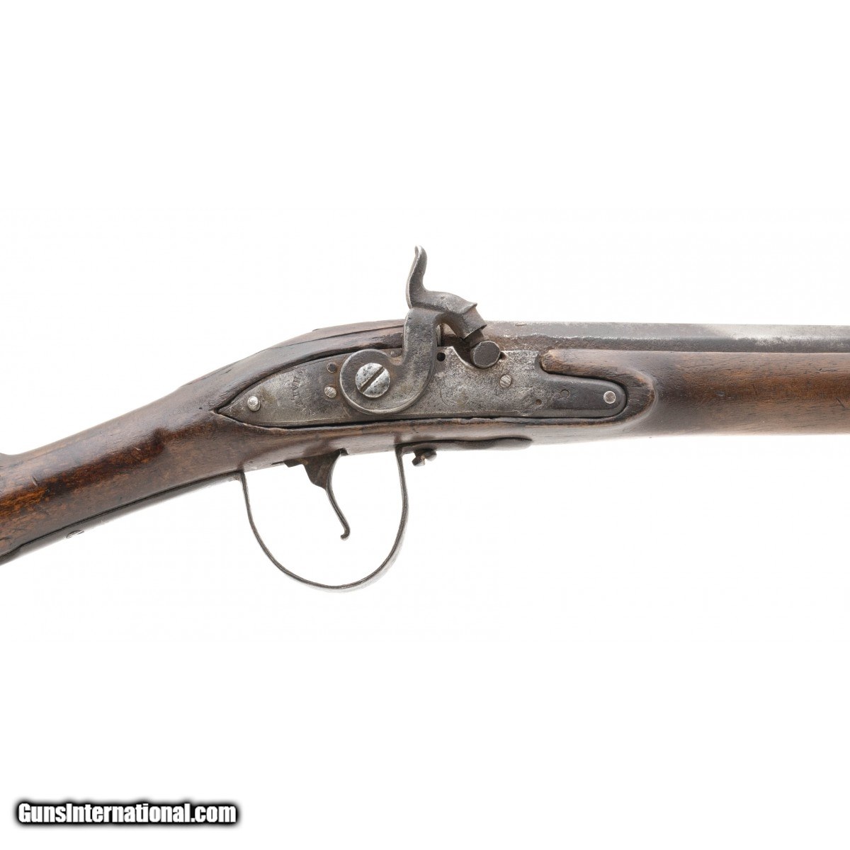 Description: " .55 caliber 35"" octagon to round barrel percussion altered trade gun by Whately, overall good condition the metal is a brown/grey patina with circle fox and London on the barrels surface. Wood is good with handling and usage wear noted. Action function correctly but spring is becoming weak. This gun is one of the 1580 guns contract to supply Britain's Native allies for the War of 1812. SOLD Antique: Yes |
