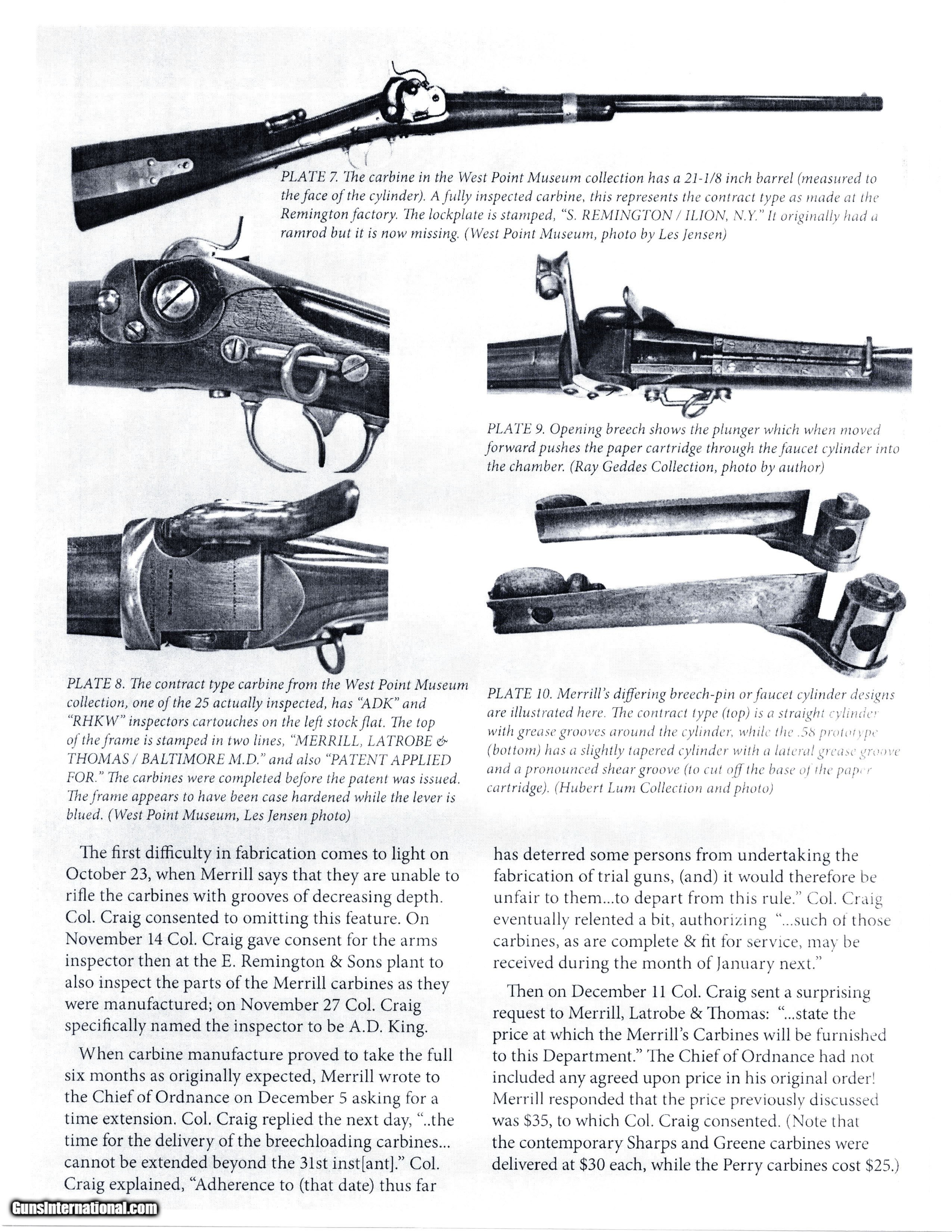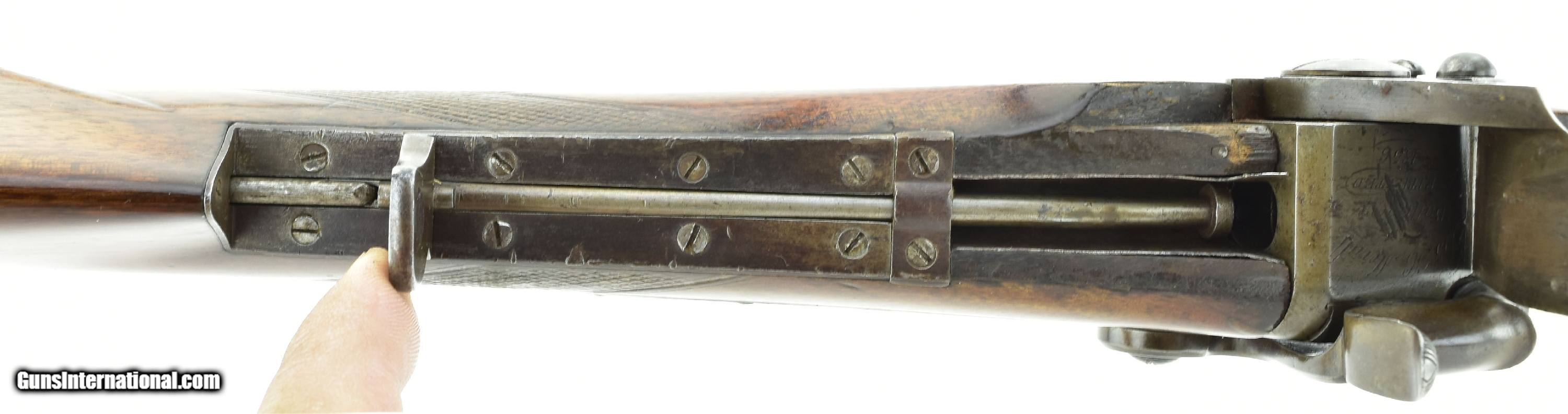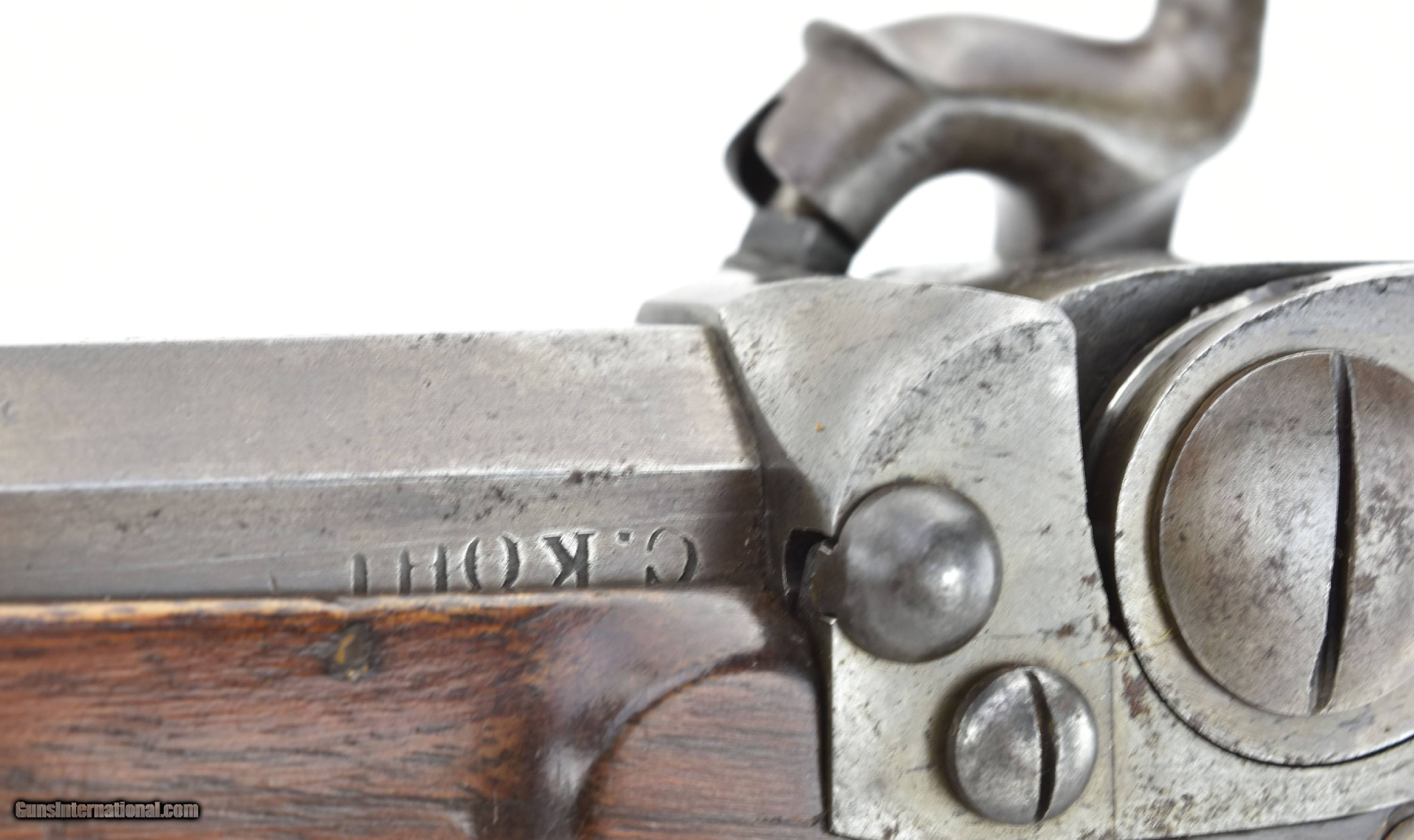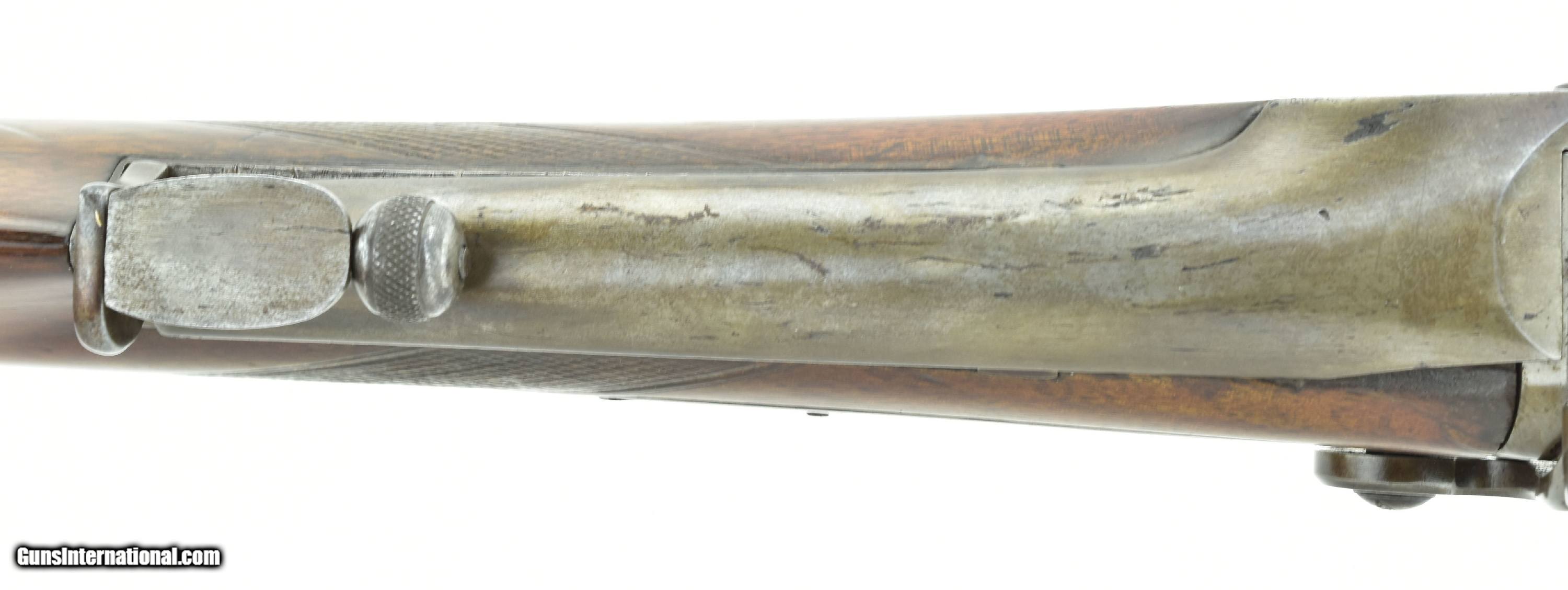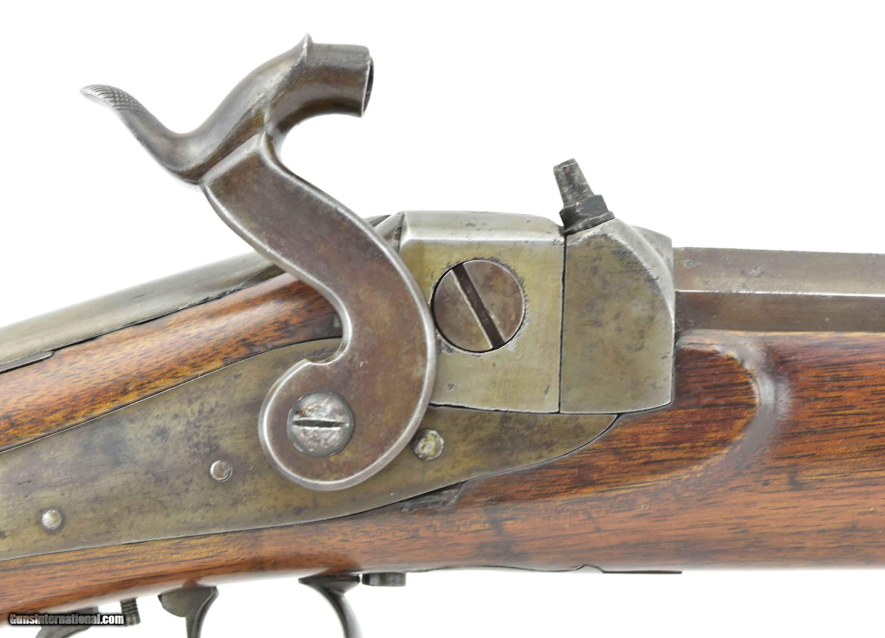 Description: "NSN, circa 1850's-1860's, .40 caliber, 29 1/2"" octagonal barrel. Bore is good with light pitting visible in the grooves, rifling remains strong. Very Rare Merrill, Latrobe, Thomas Sporting Rifle. Very rare rifle with faucet breech. Top of breech marked “Jas. H. Merrill, Baltimore Patented 1856". Rifle features the Merrill patent faucet breech and loading lever with charging apparatus under the lever. The rifle is very good plus to excellent overall. Rifle has adjustable double set triggers. Checkering in stock is excellent. (DALLAS LOCATION) Antique: Yes Price: $7,500.00 Contact Seller |